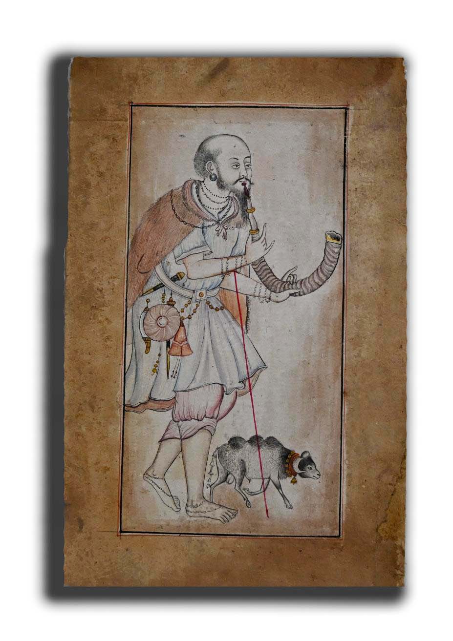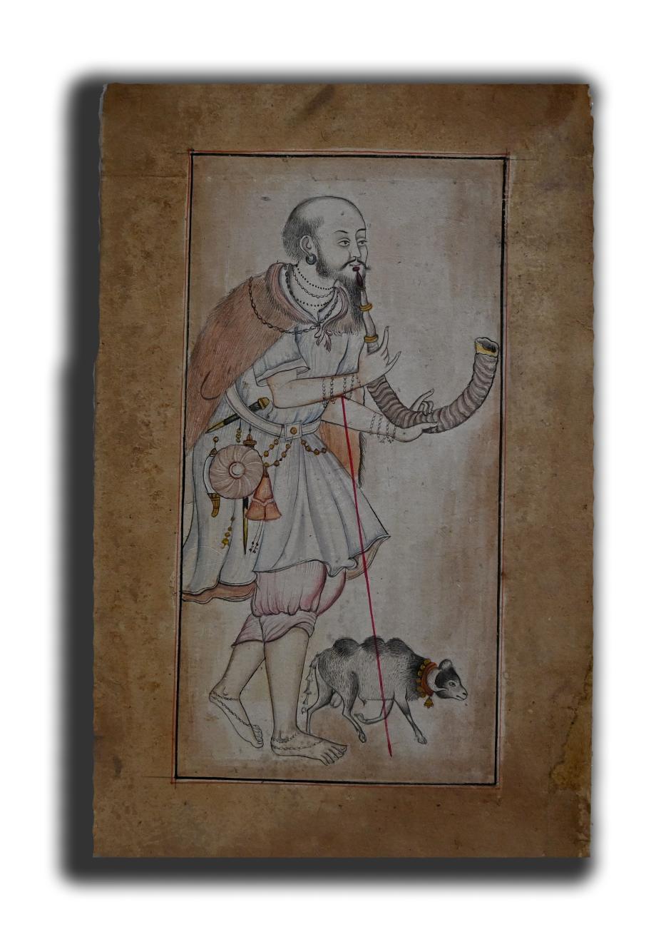 A qalandar of the Qalandari sect with his pet sheep Handmade Miniature Painting