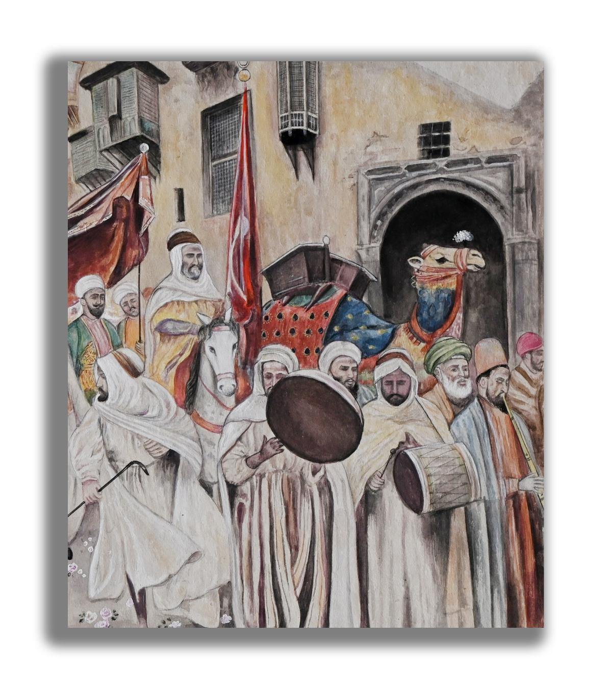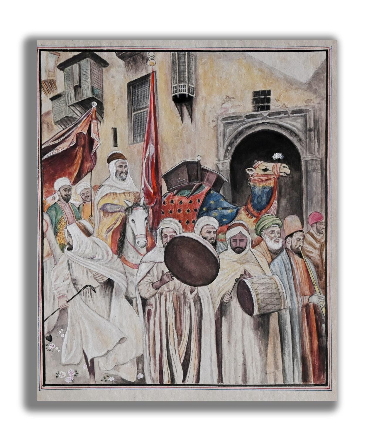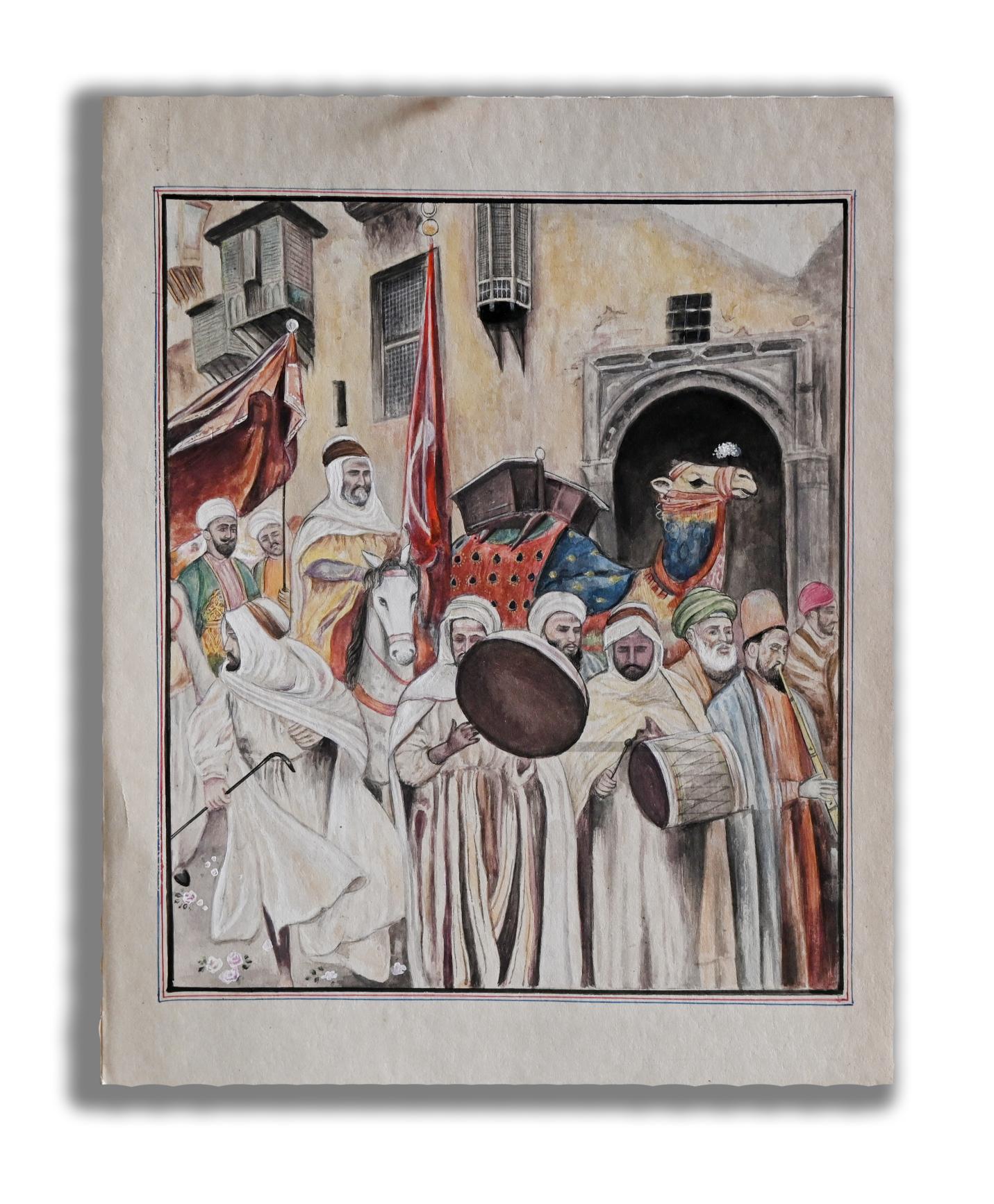 A Wedding Procession in Ottoman Cairo-Egypt Handmade Miniature Painting