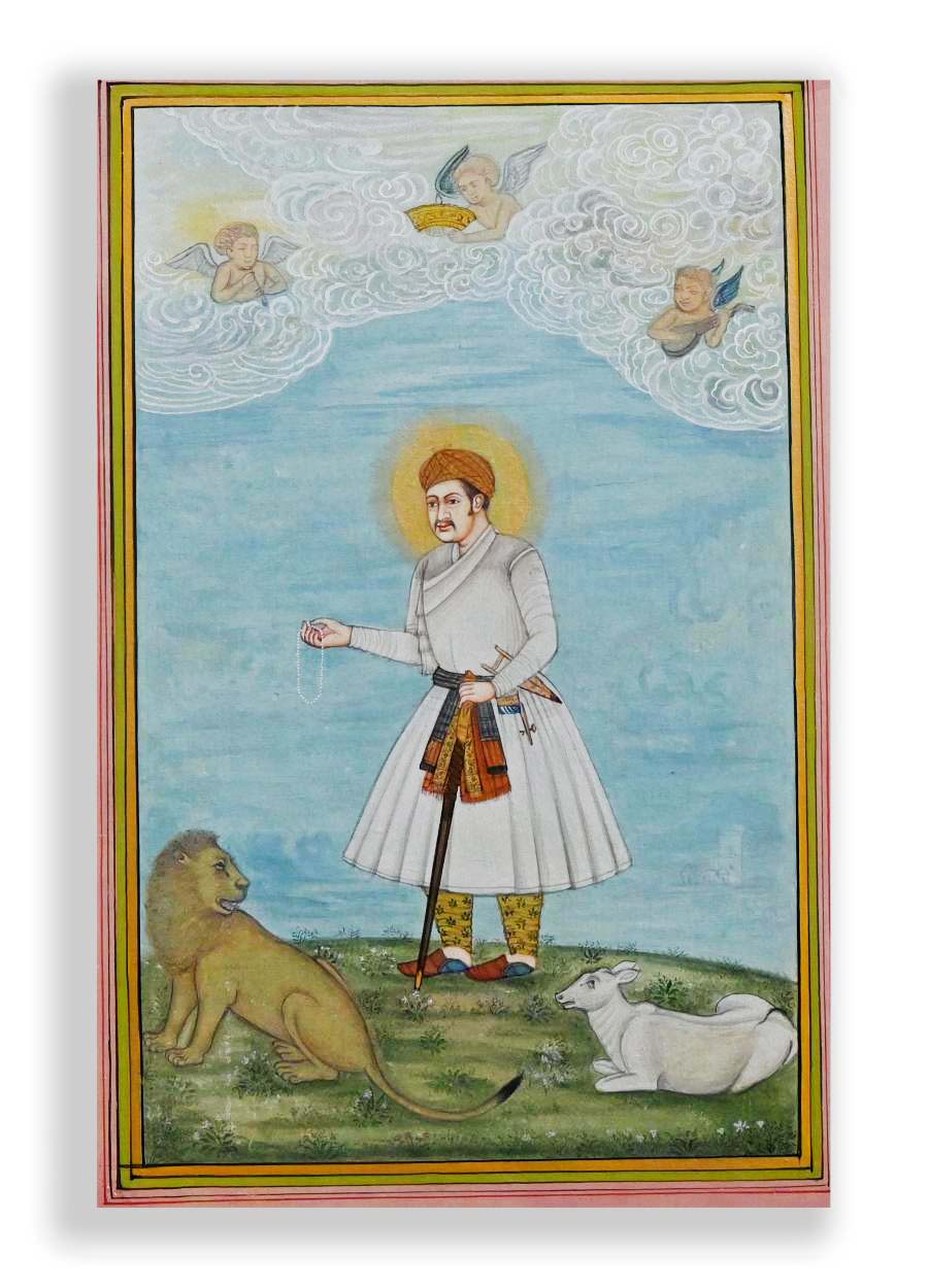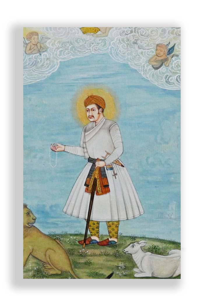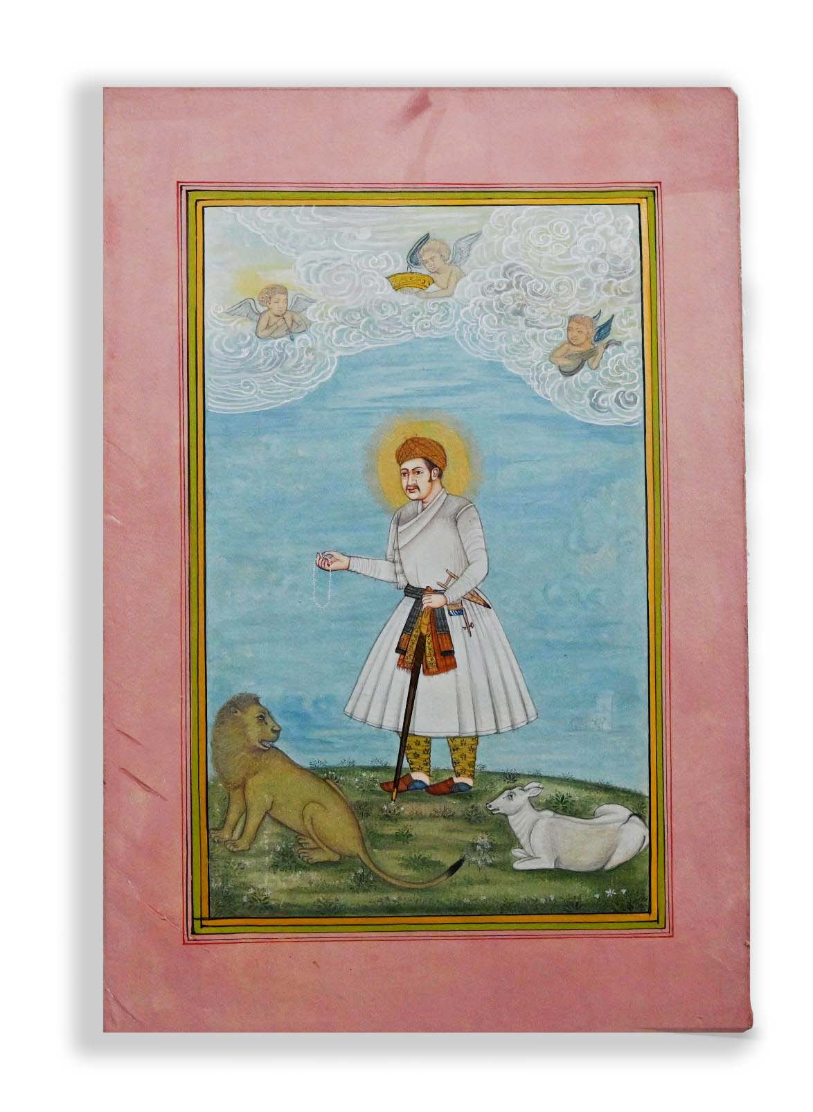 Akbar With Lion and Calf Painting Handmade Miniature Beautiful ArtworkSubject: Mughal Miniature Painting Paint Material :Water color Presenting you the Mughal Badshah Akbar beautiful fine portrait painting with lion & calf. |