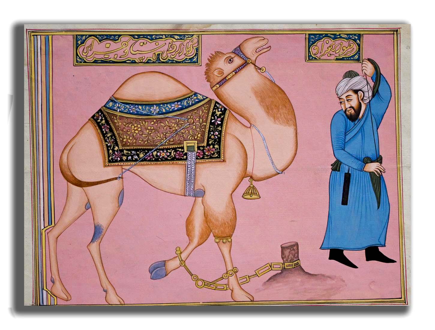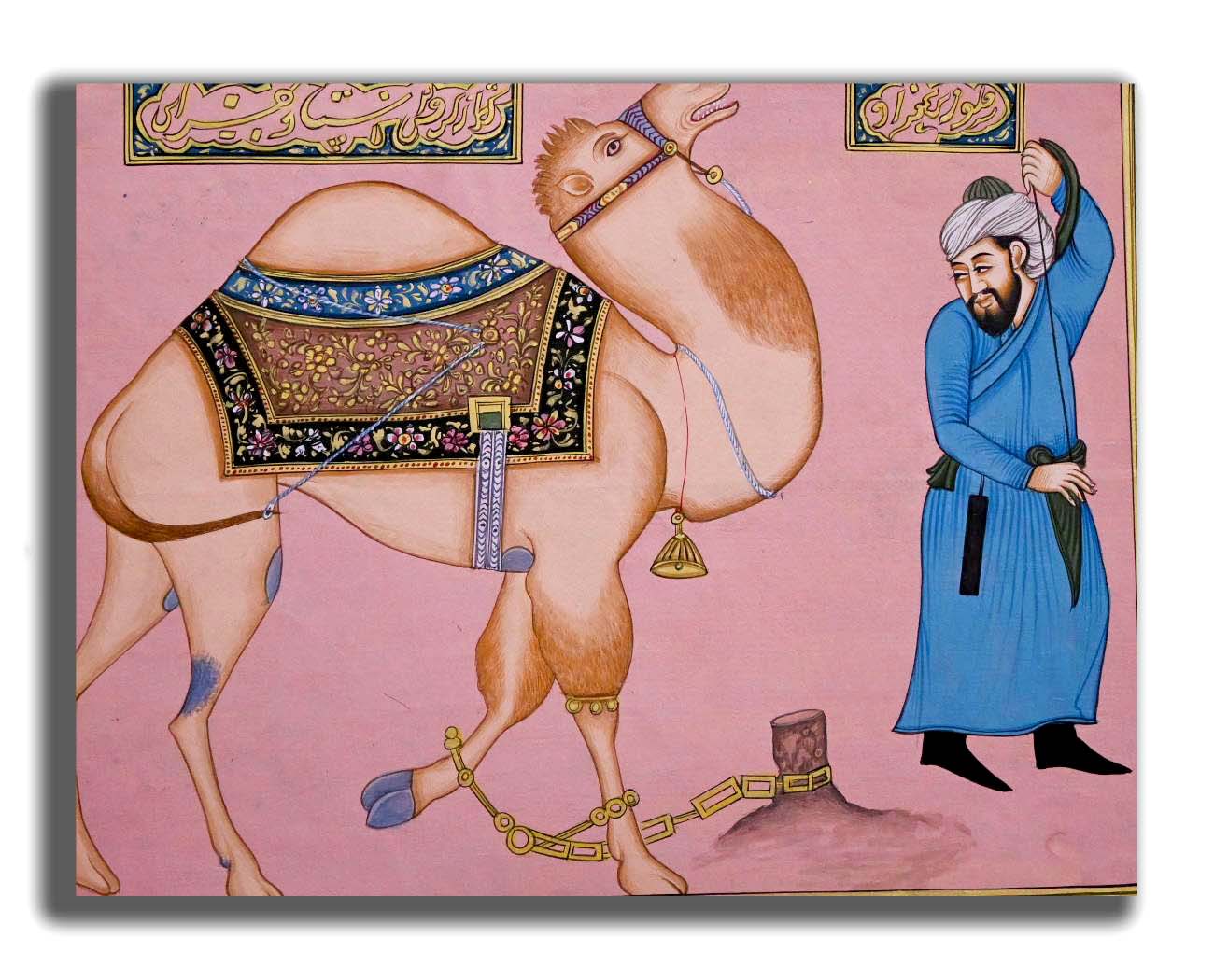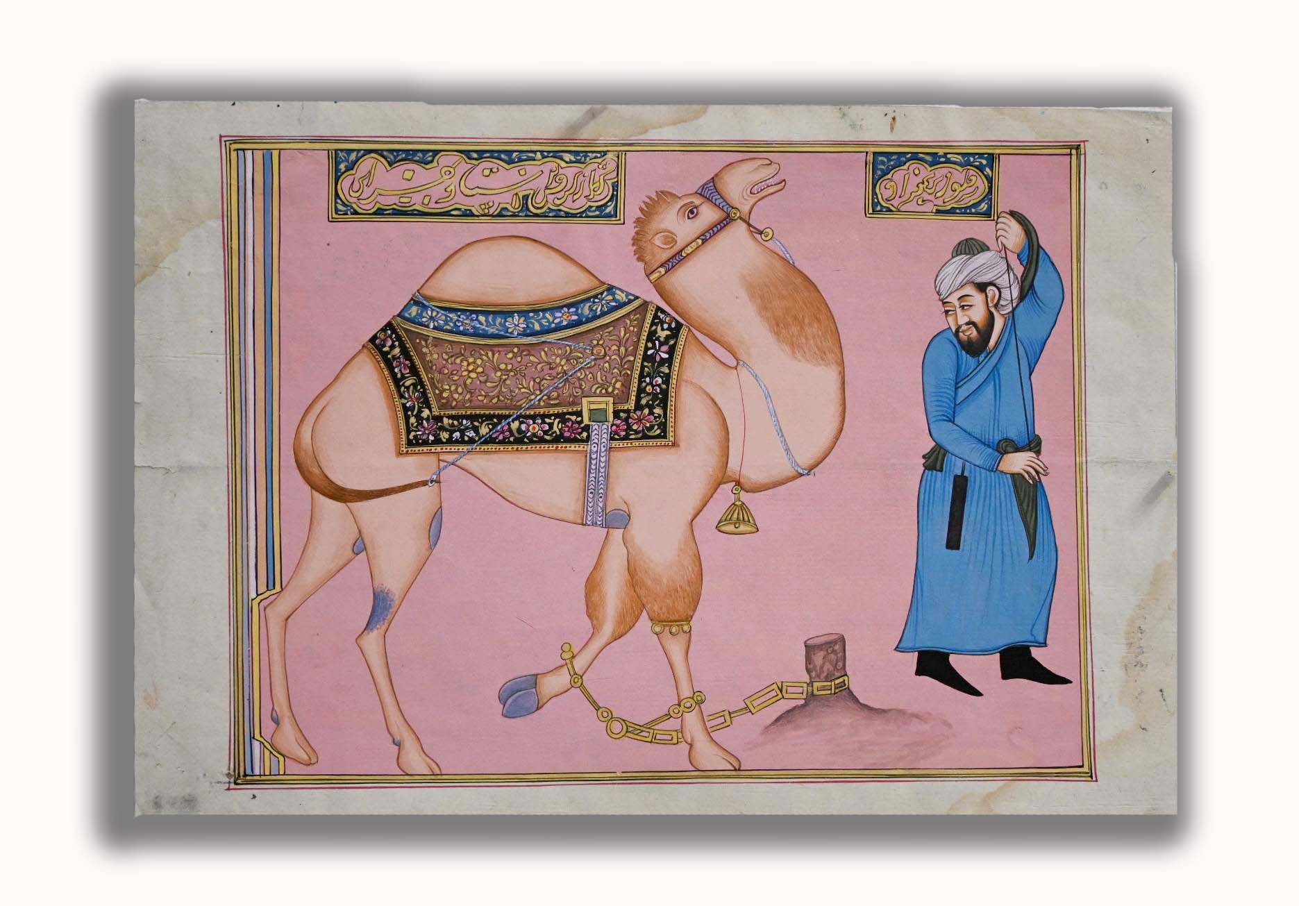 Camel With His Guardian Persian Handmade Miniature Painting On Paper