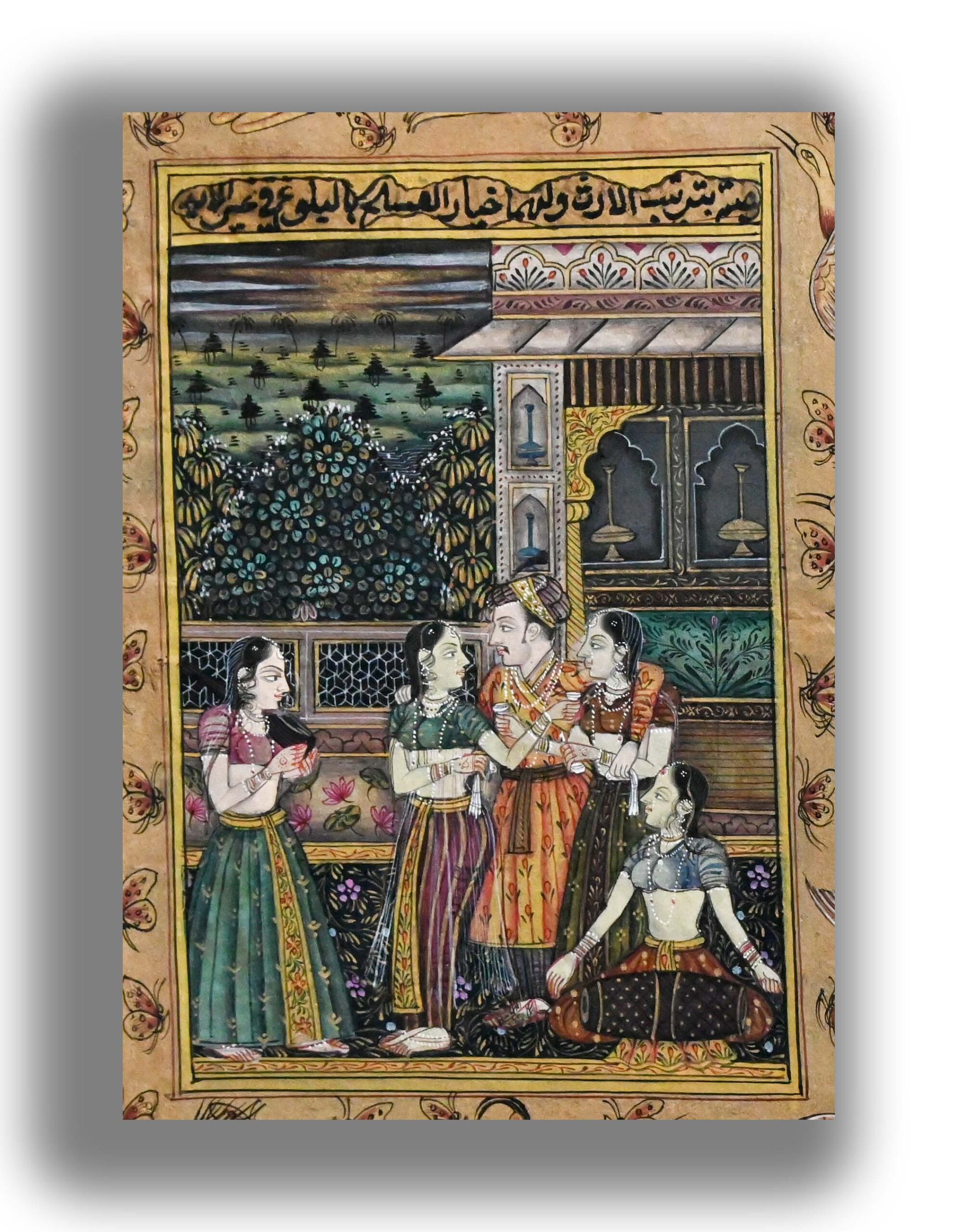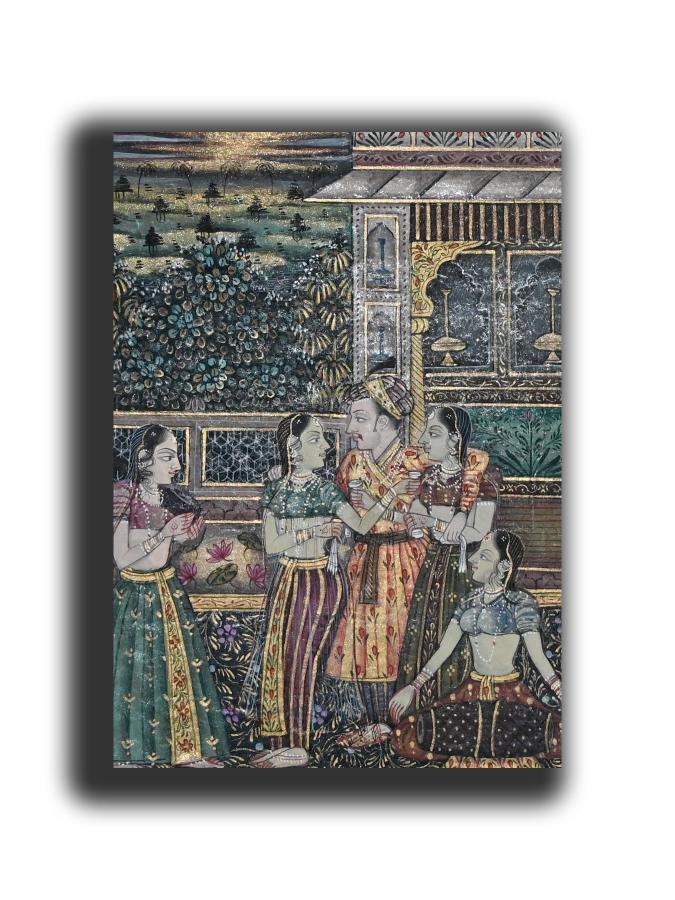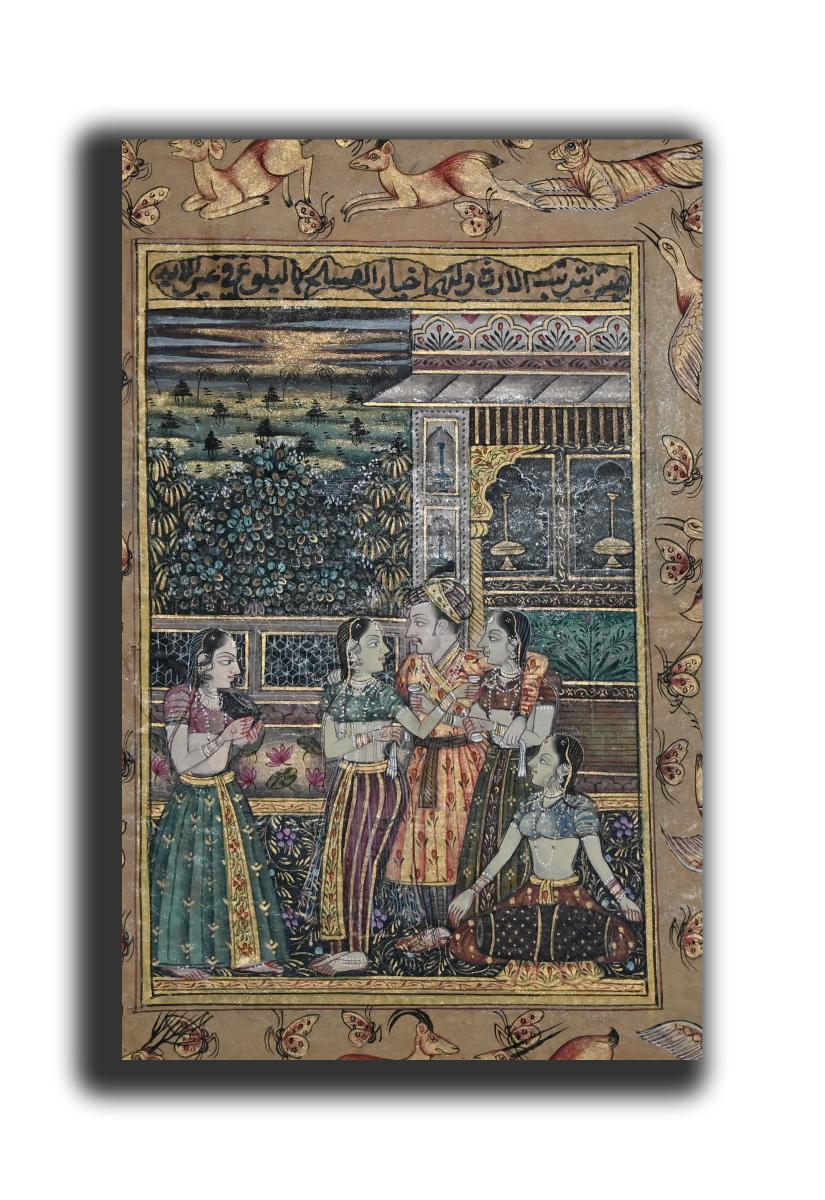 Badshah Jahangir Doing Harem Miniature Painting On Old Handwritten Manuscript