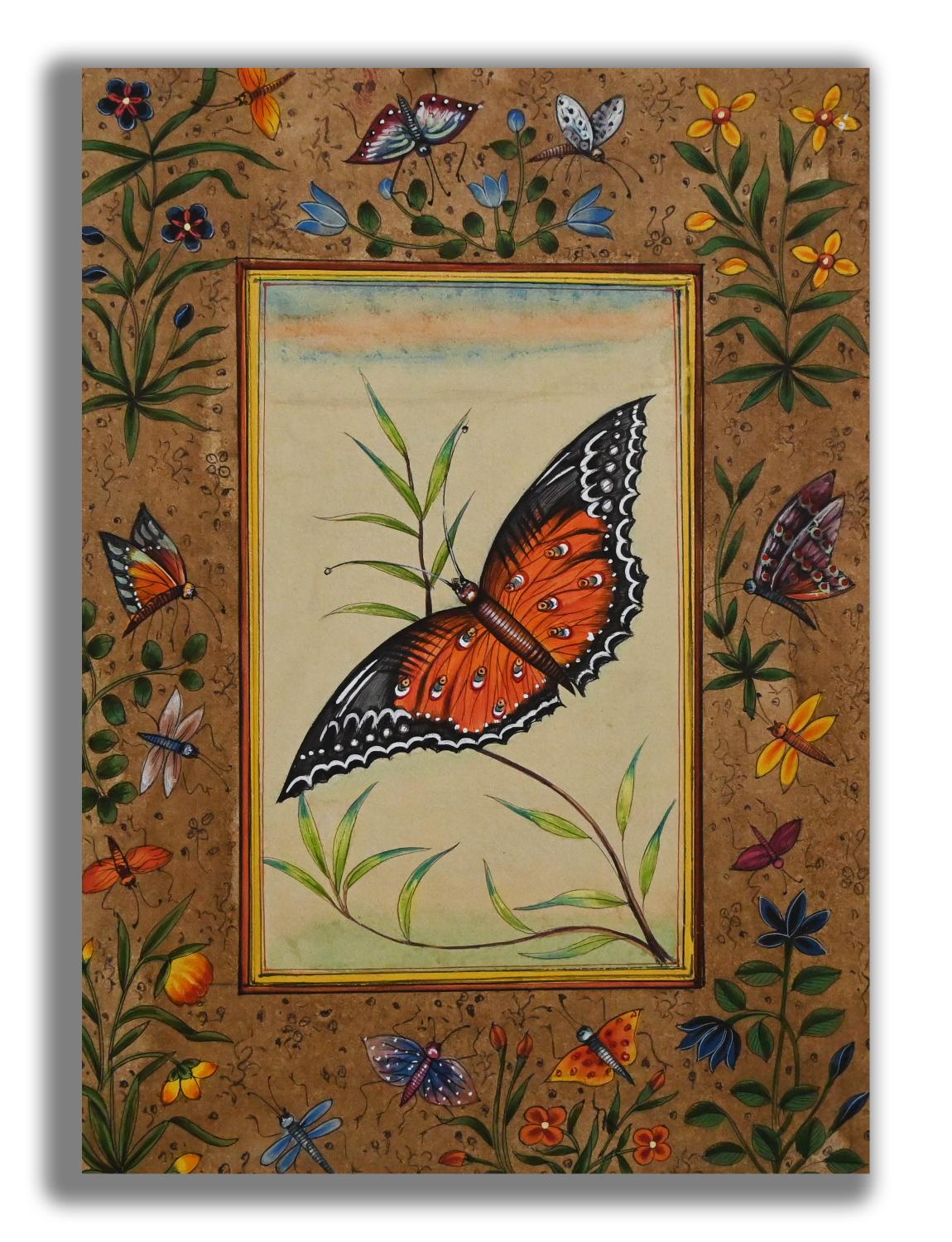 Beautiful Butterfly Handmade Miniature Painting Artwork with Butterfly Border