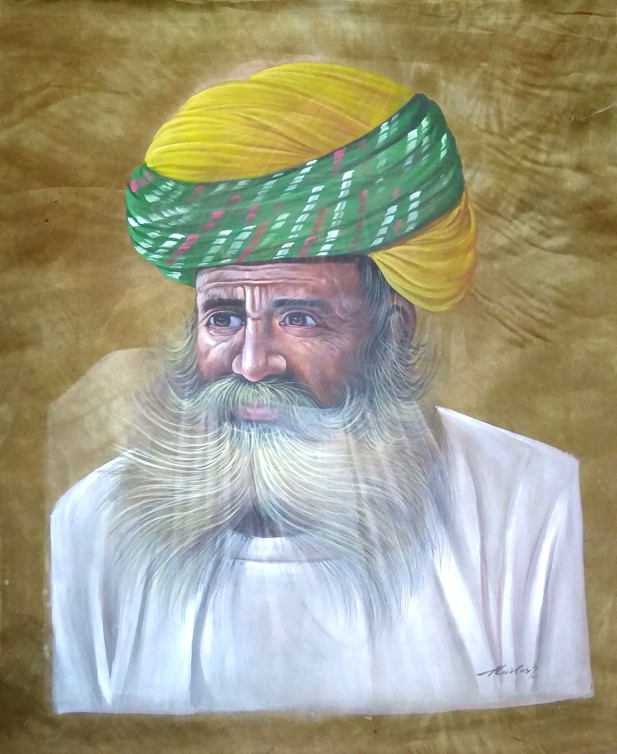Best Indian Villager Portrait Painting With Signature of Artist -KAILASH On Silk