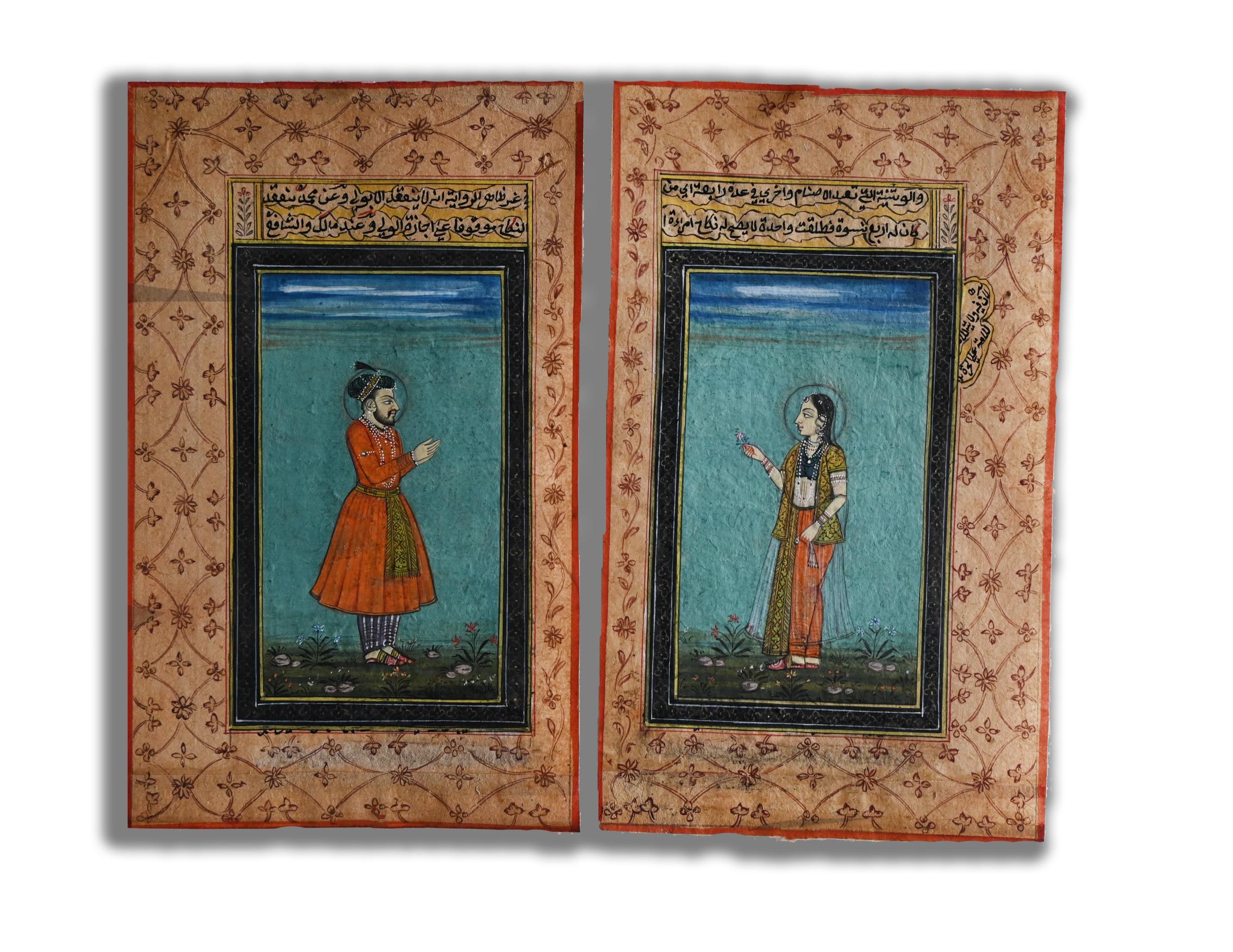 Early Ancient Moghul Emperor Jahangir & Nur Jahan Handmade Portrait Painting