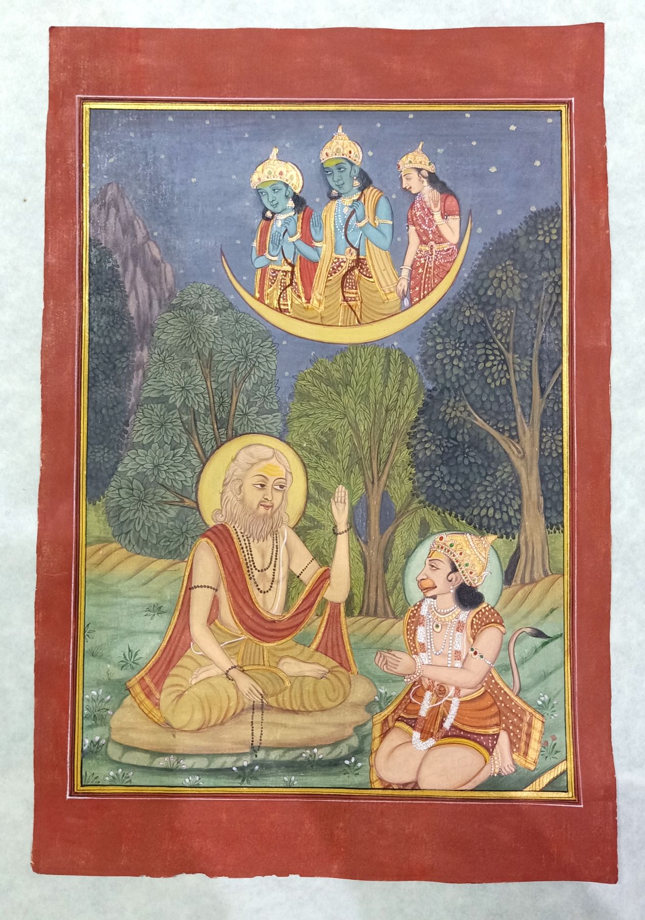 Hanuman ji Respecting Guru Lord Surya Handmade Miniature Old Religious Painting