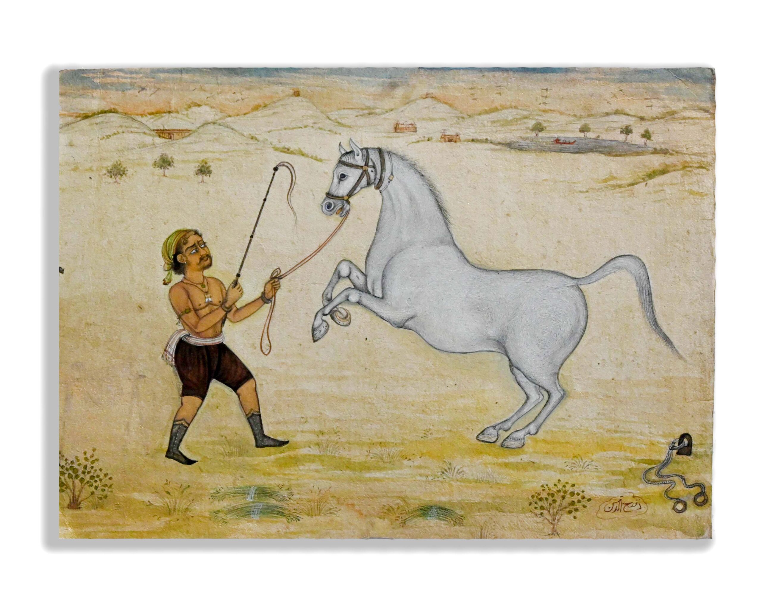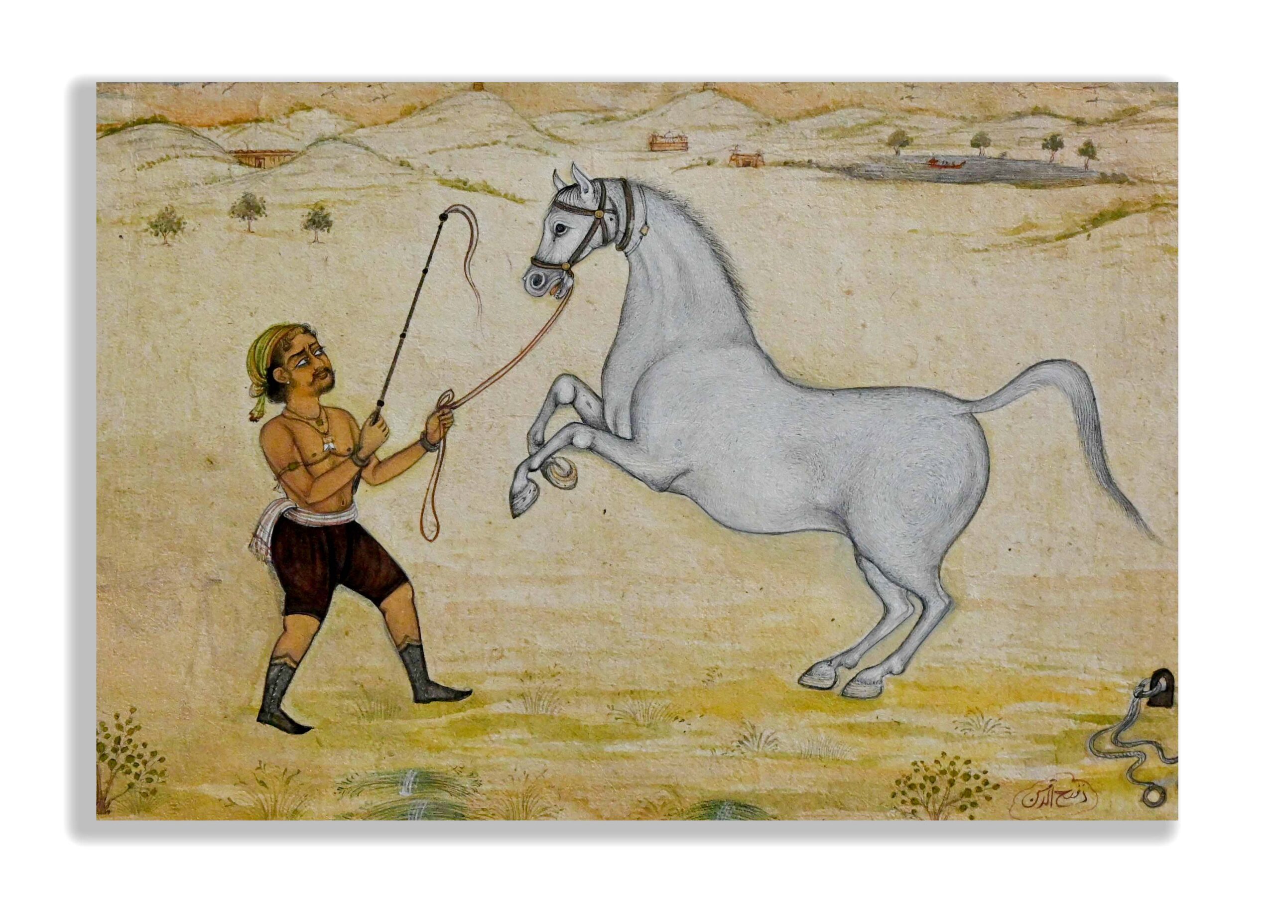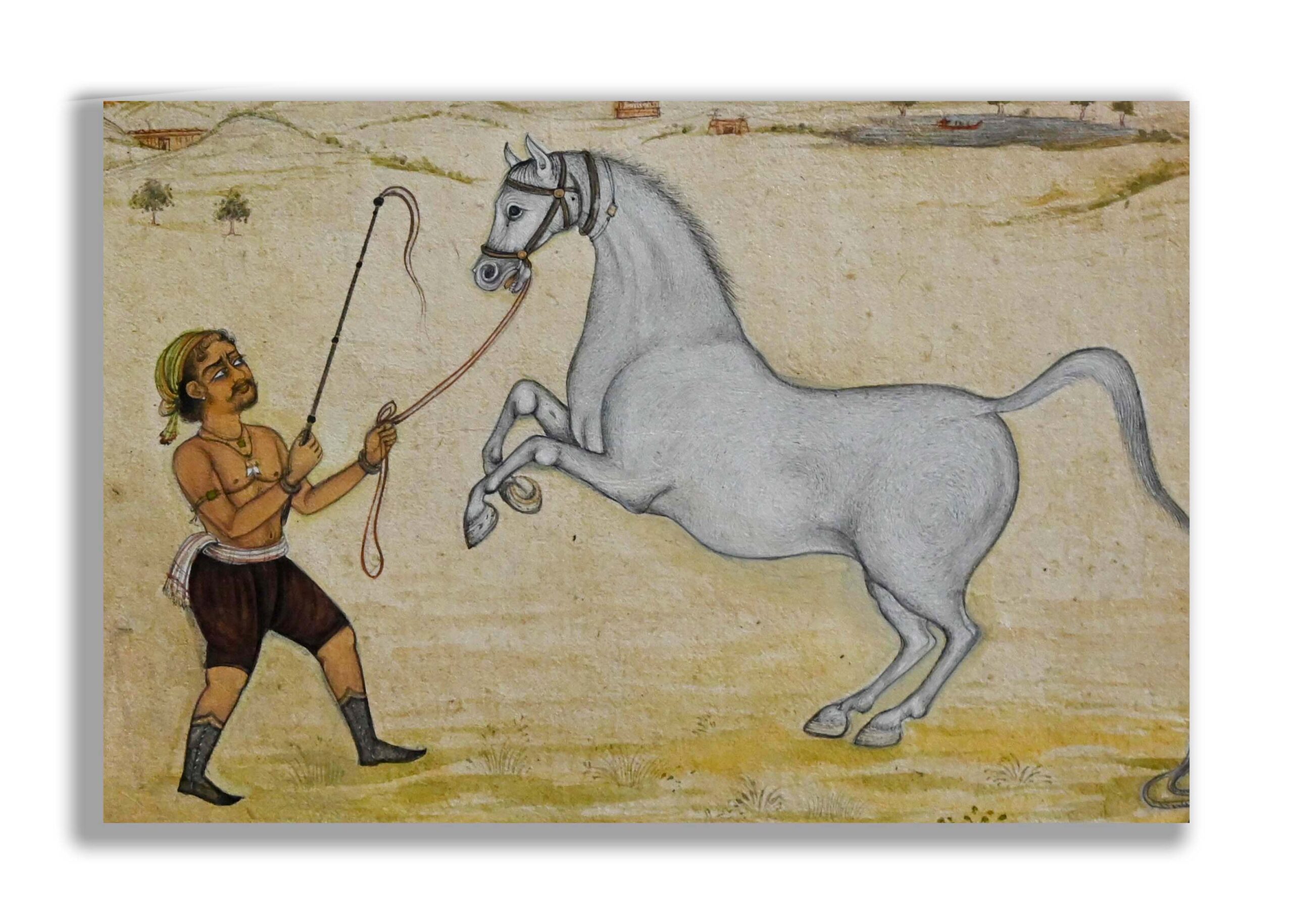Horse Trained by Trainer Handmade Miniature Painting Jaipur-School Painting
