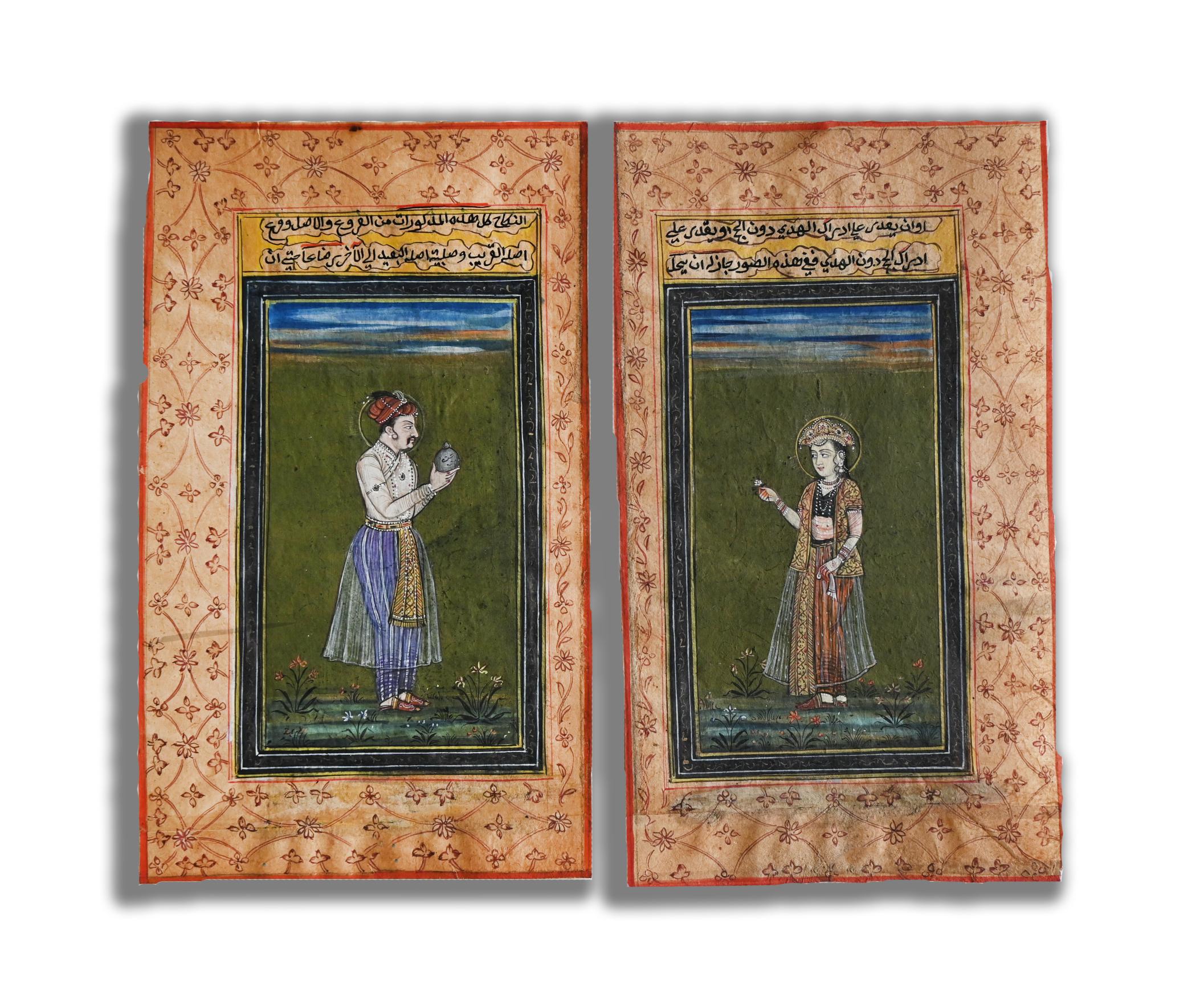 Indian Ancient Moghul Emperor Jahangir & Nur Jahan Handmade Portrait Painting