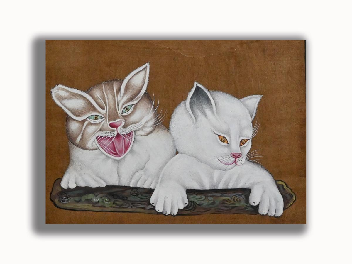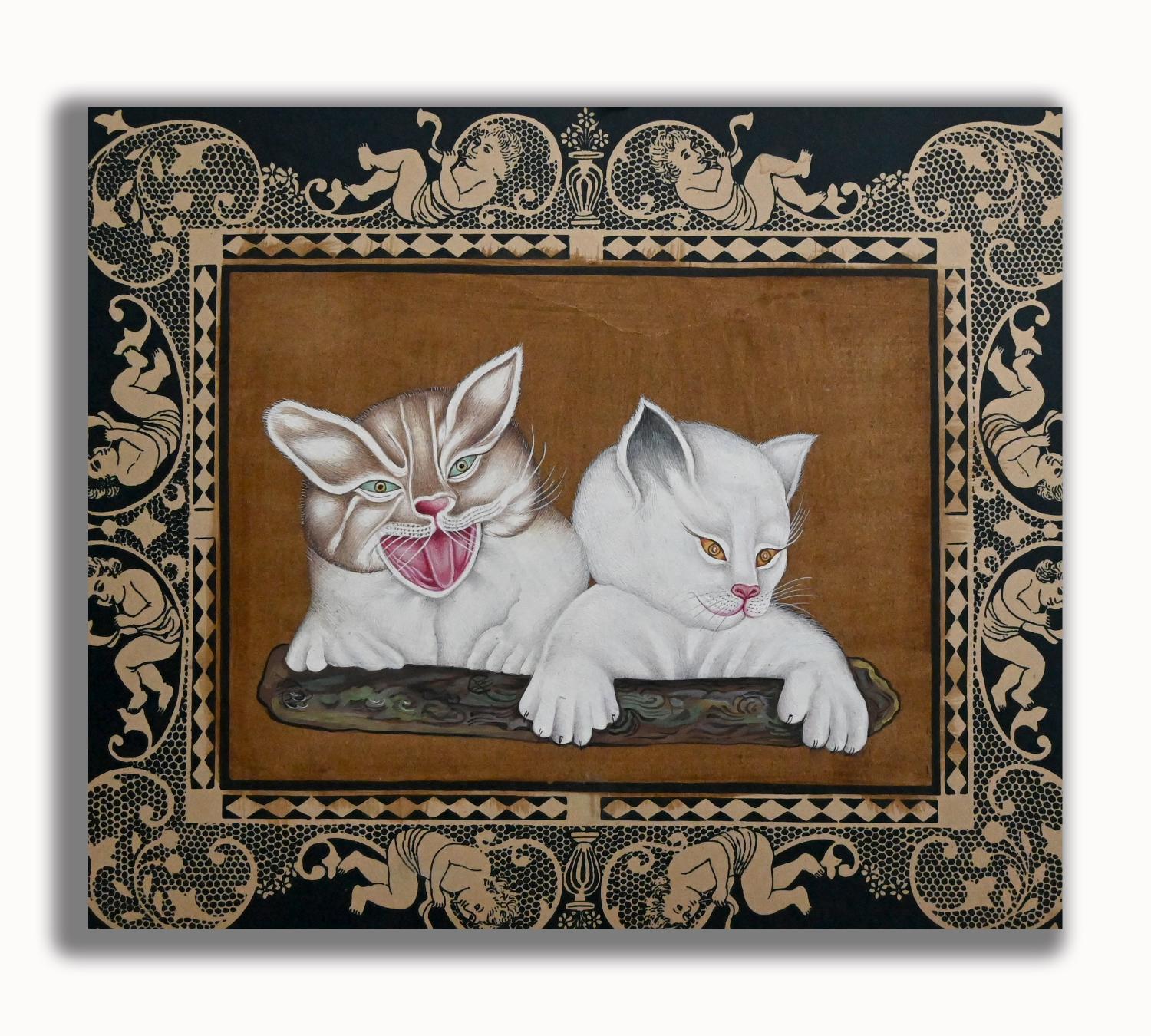 Indian Miniature Animal Pussy Cat Painting Wall Decor Art