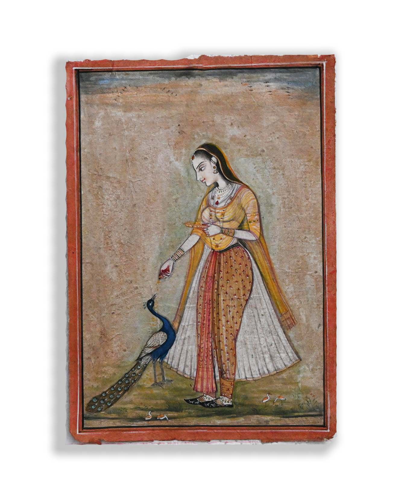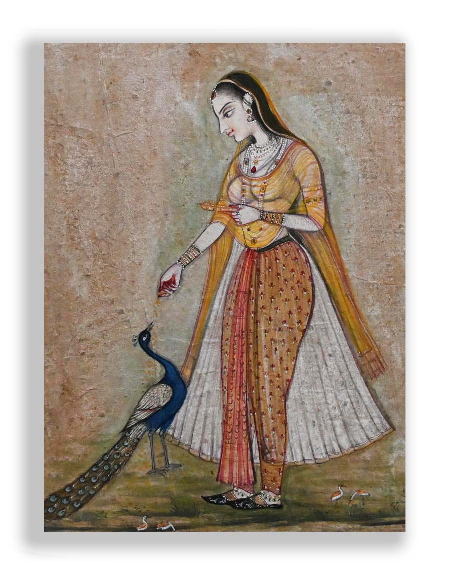 Jaipur-School Ragni with Peacock Handmade Miniature Painting