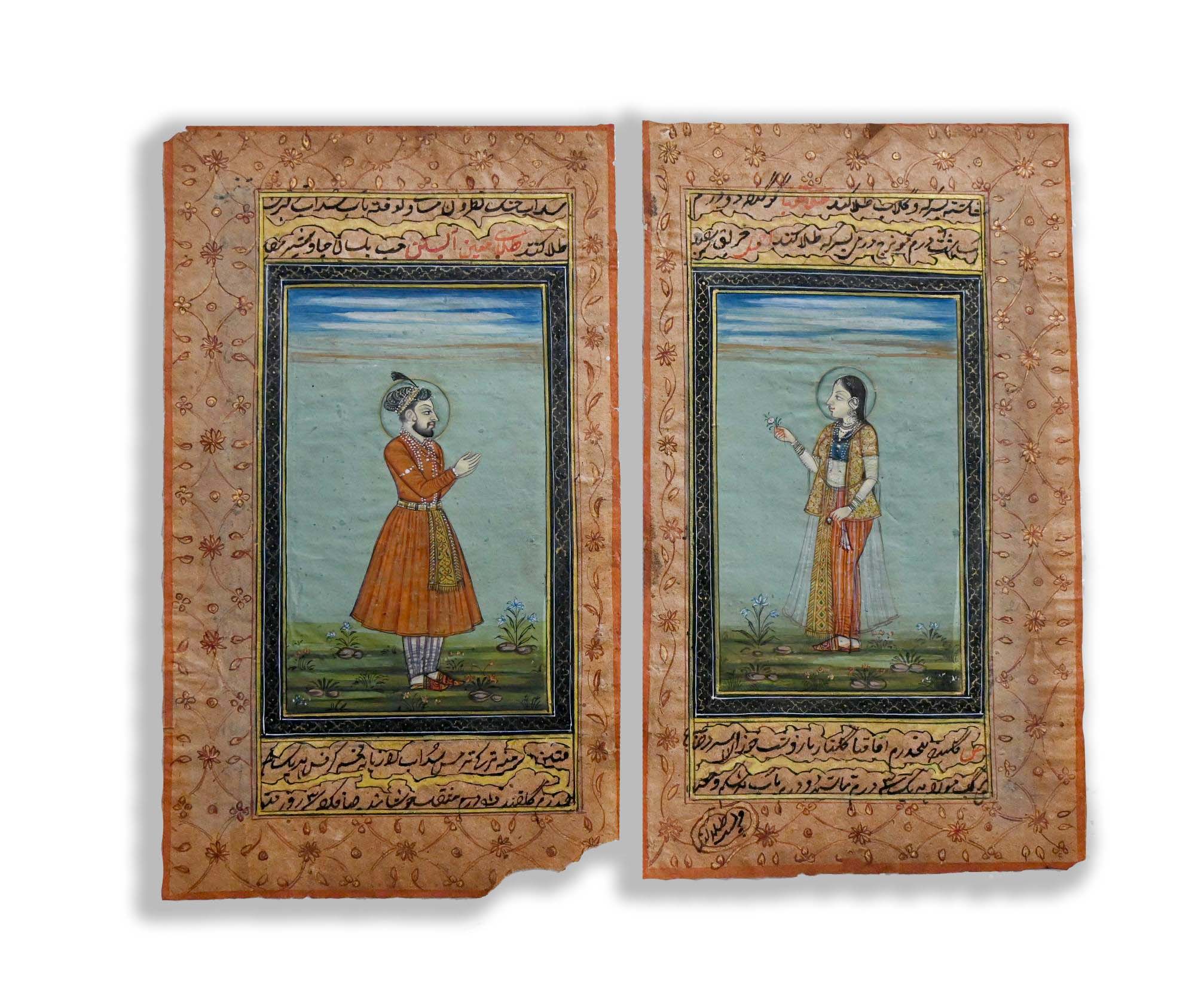 Indian Moghul Emperor Jahangir & Nur Jahan Handmade Portrait Painting