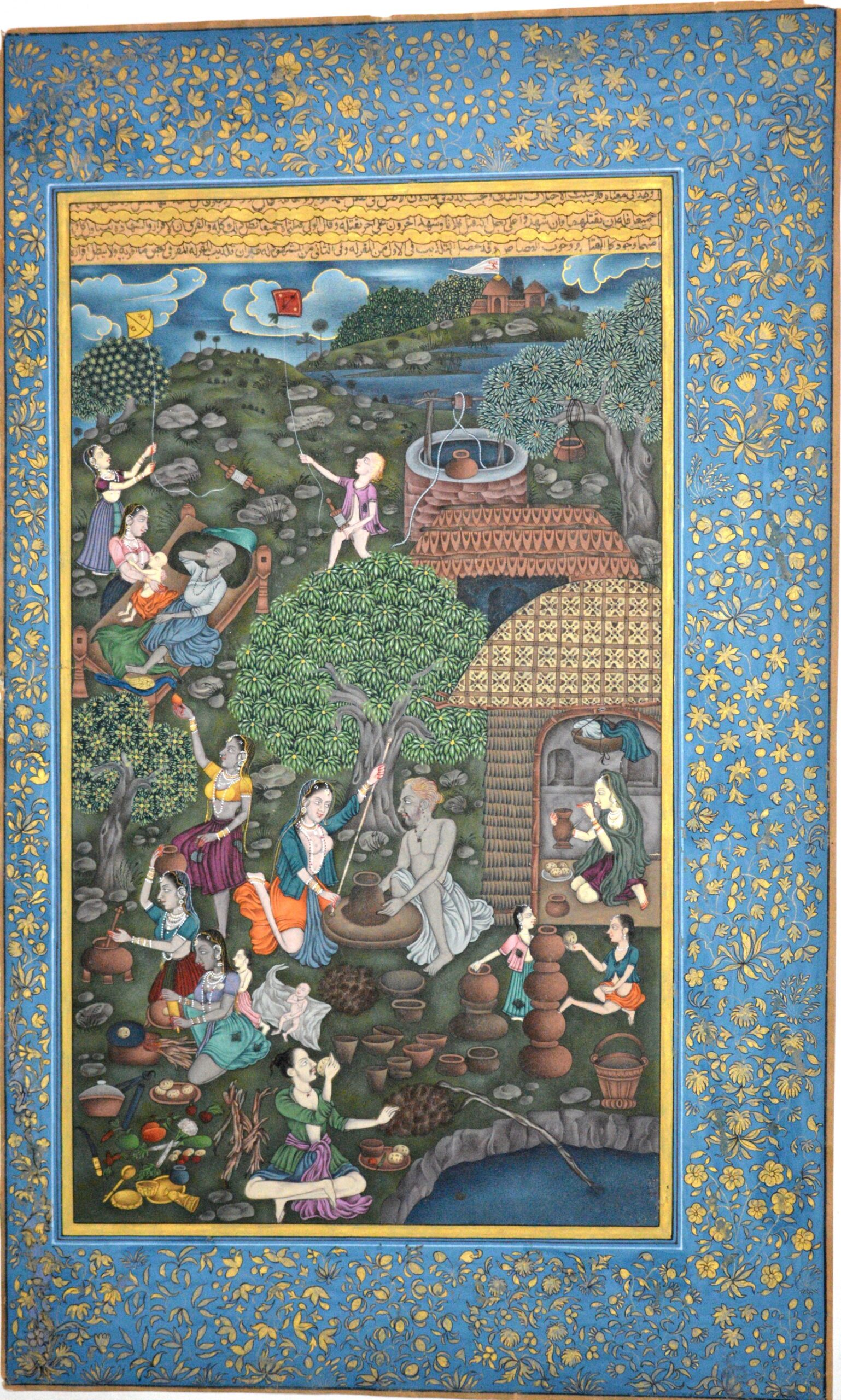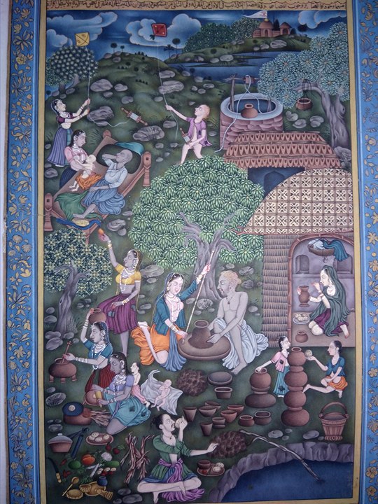 Indian Village Scene Painting Handmade Miniature Beautiful Artwork On Old Paper