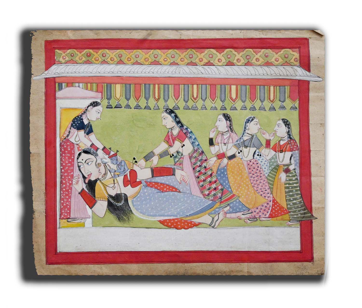 Goddess Durga as Jaya Religious Miniature Painting on Old Paper