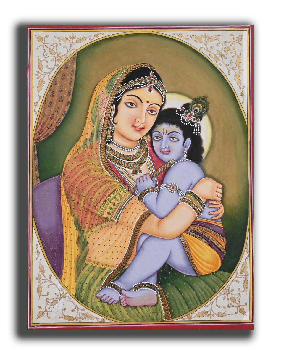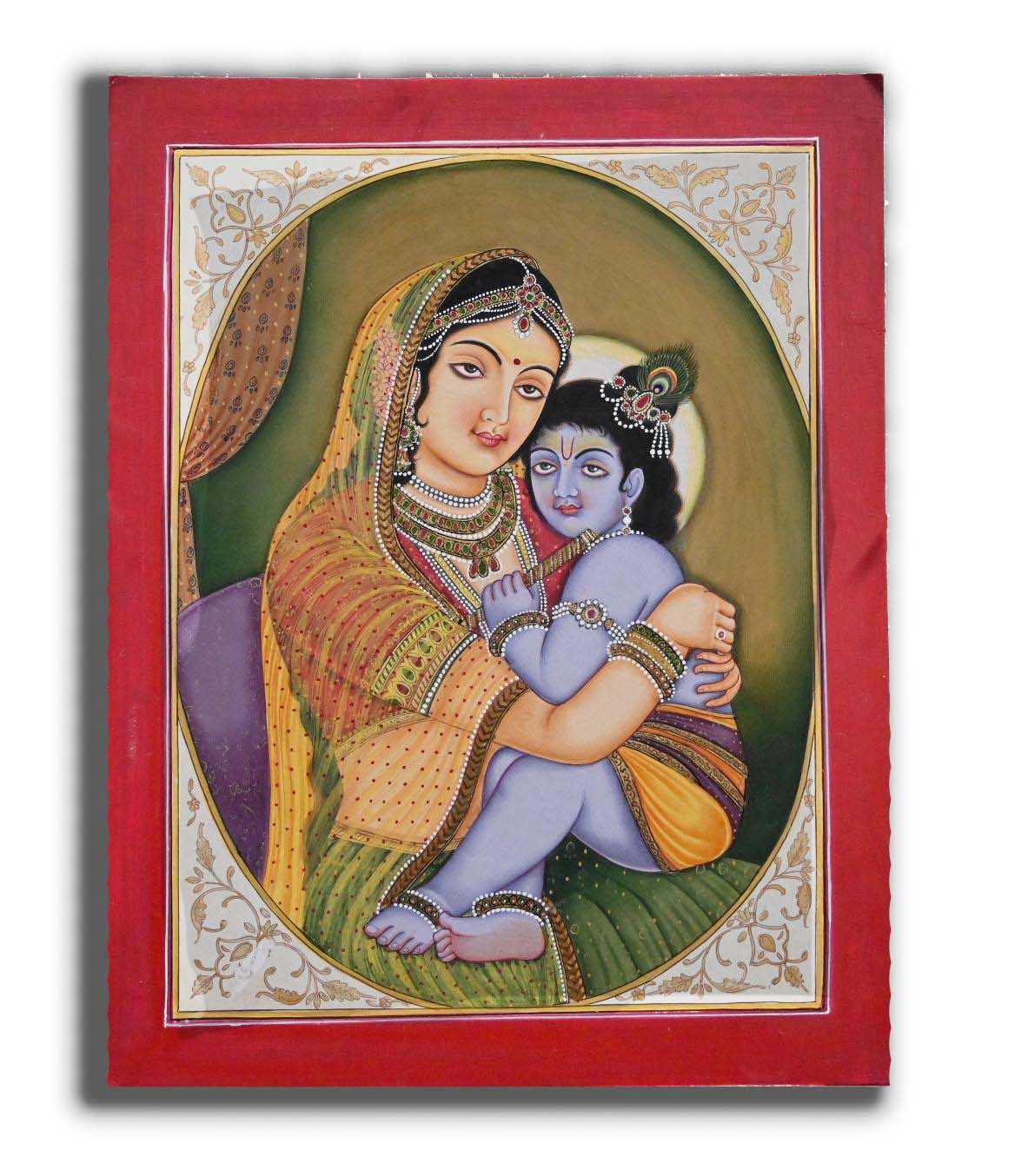 Lord Krishna Gopala with Mother Yashoda Handmade Miniature Painting on Paper