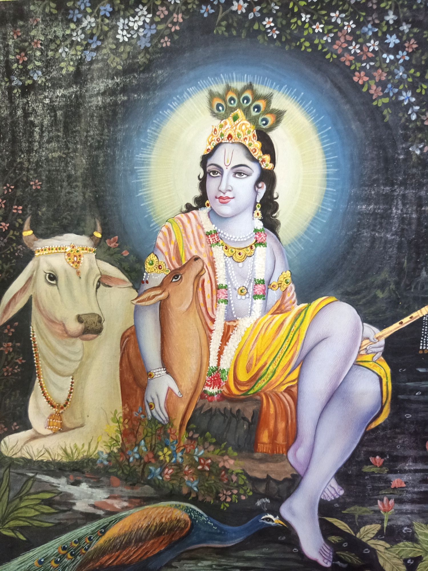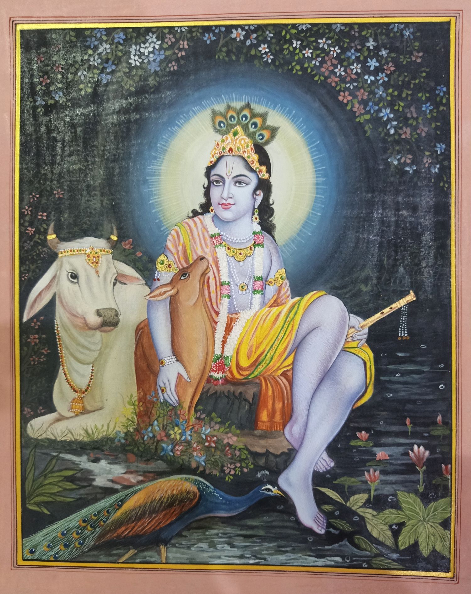 Lord Krishna with Cow Beautiful Fine Handmade Miniature Painting ISKON