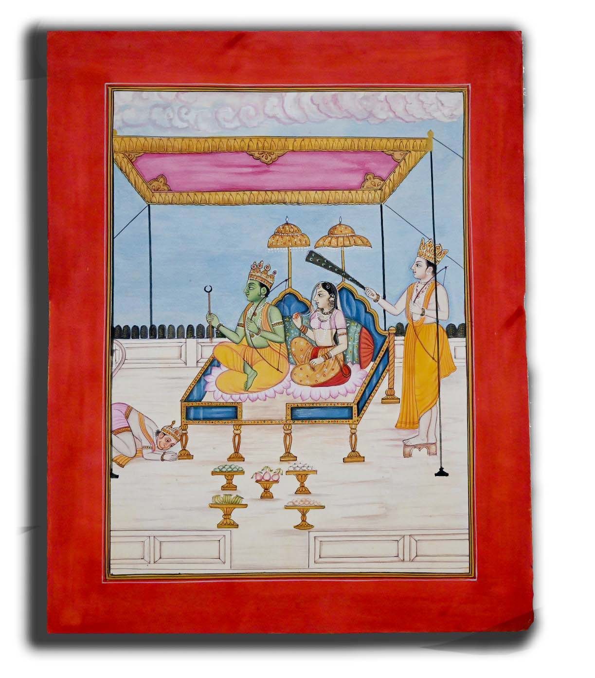 Lord Ram Darbar with Seeta Handmade Miniature Painting on Old Paper