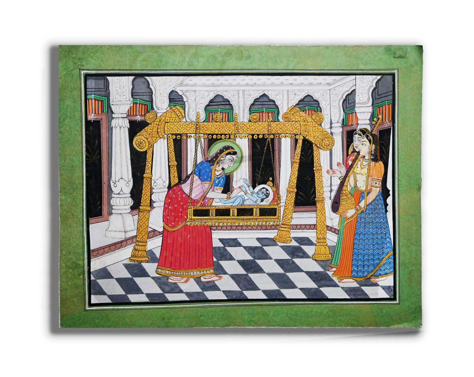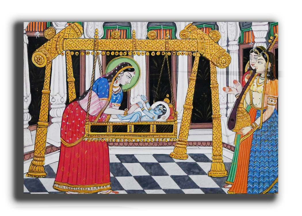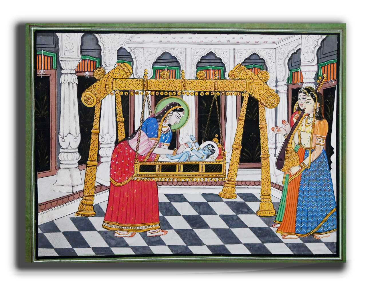 Maa Yashoda Playing with Lord Krishna at Children Swing Handmade Painting