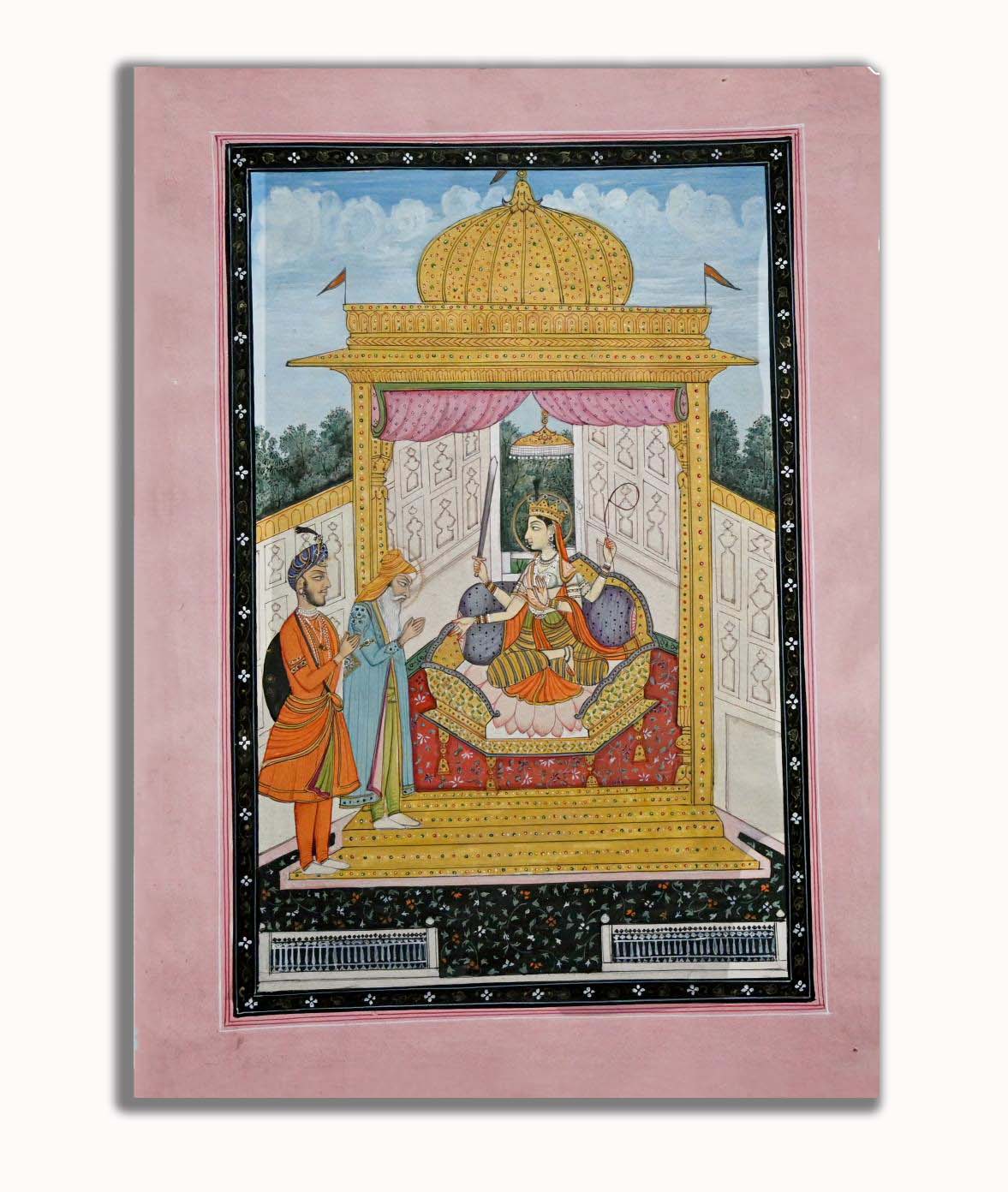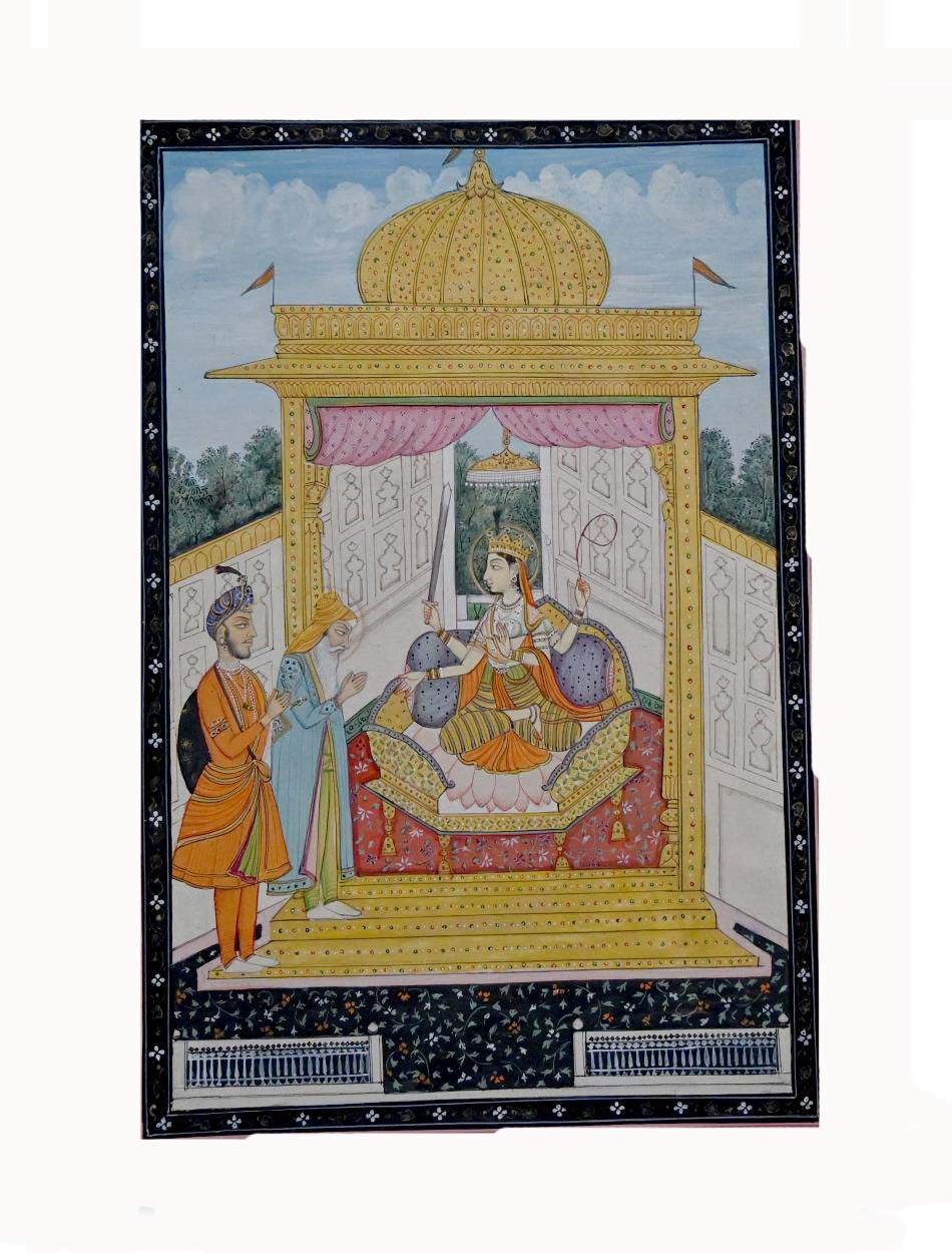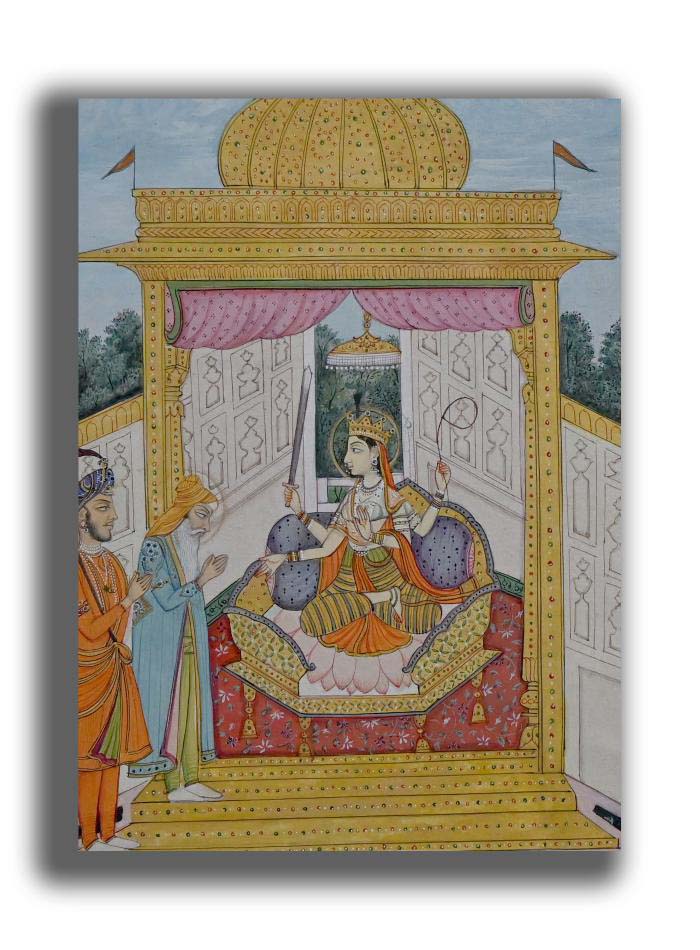Maharaja Ranjit Singh Worshipping Devi Handmade Religious Miniature Painting On Paper