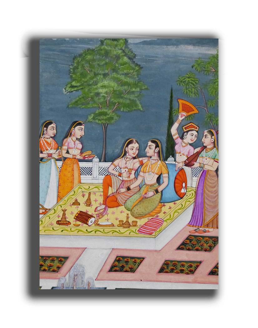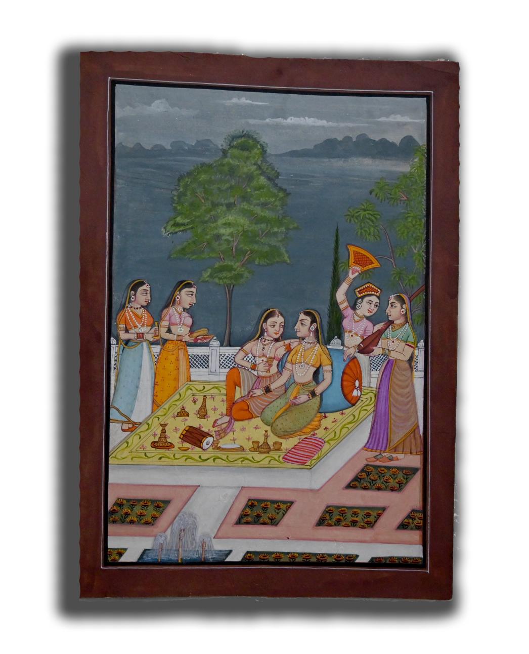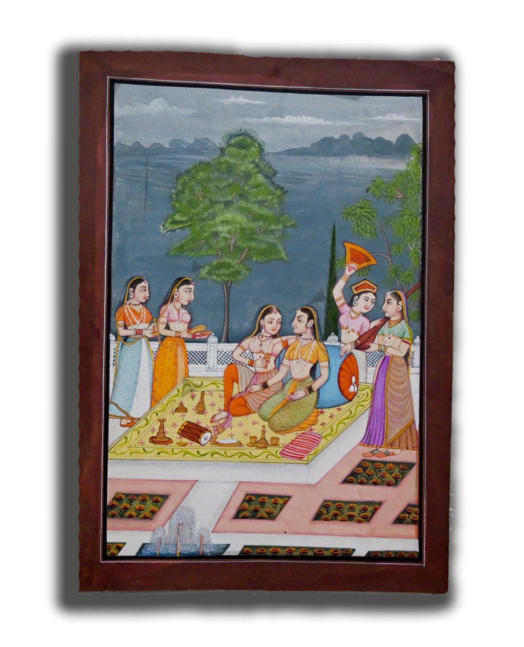 Maharani Enjoying Music & Drink with Her Damsels Handmade Ladies Painting