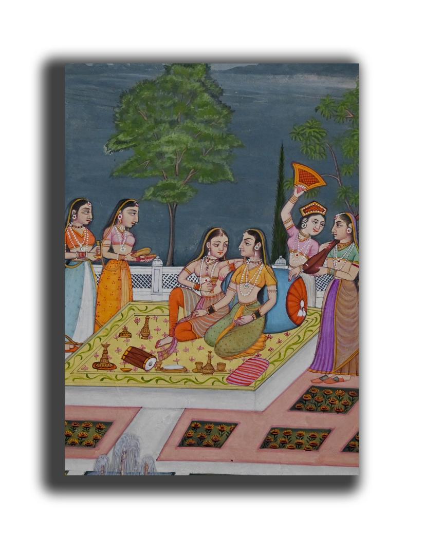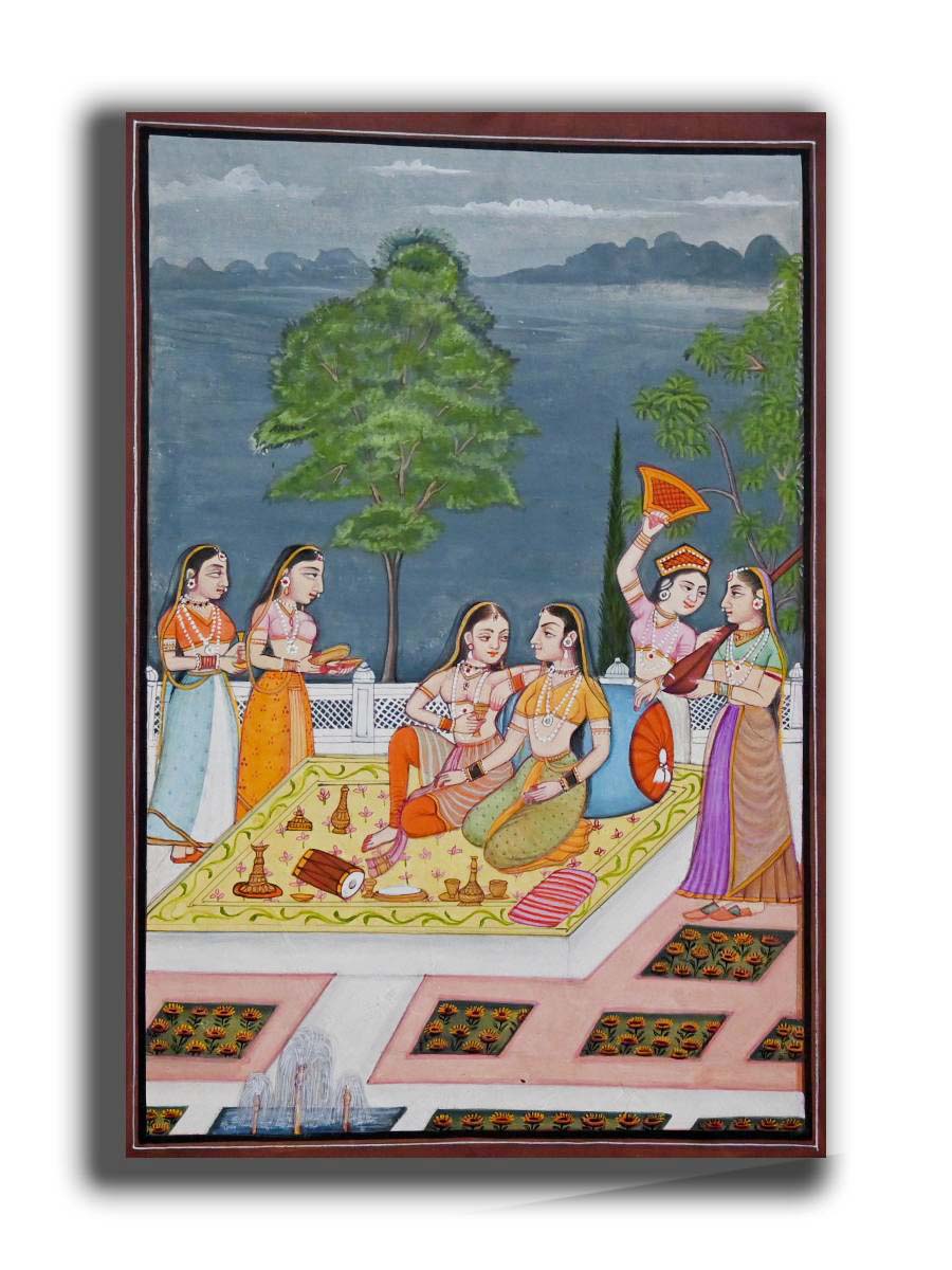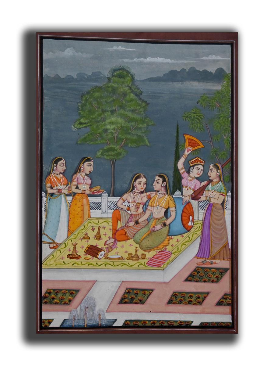 Maharani Enjoying Music & Drink with Her Damsels Handmade Ladies Painting