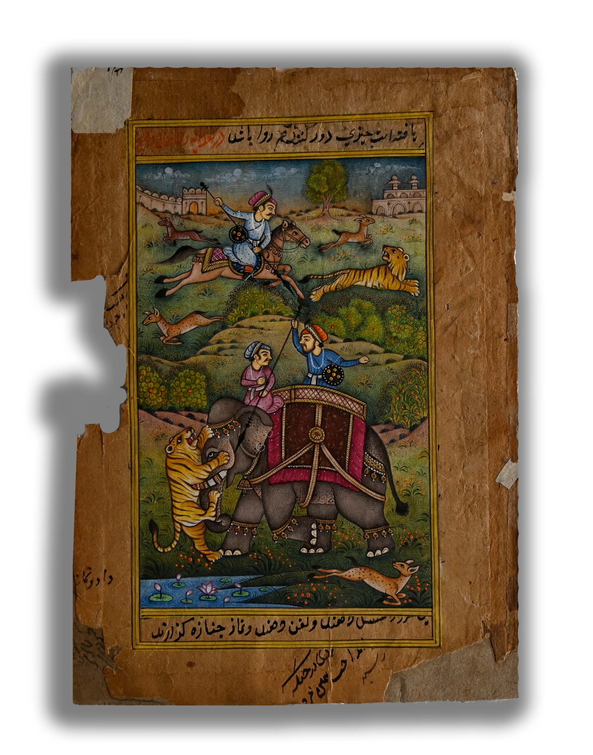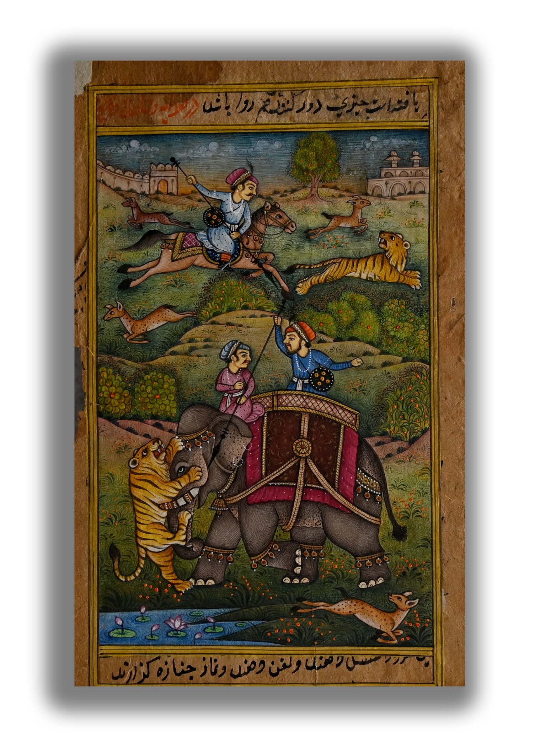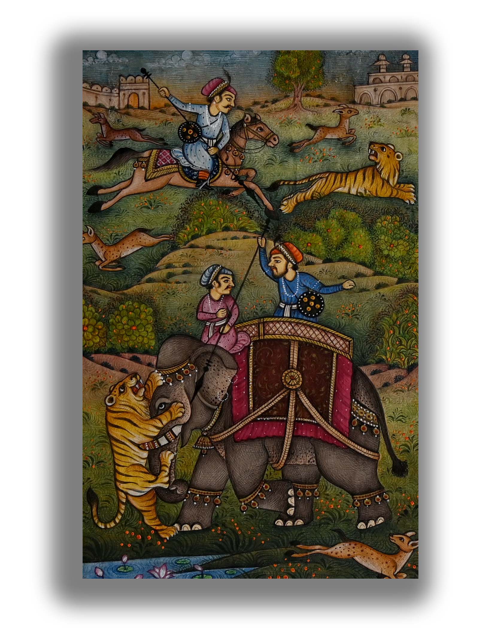Moghul Padshah Tiger Animal Hunt Dotted Work Handmade Fine Miniature Painting