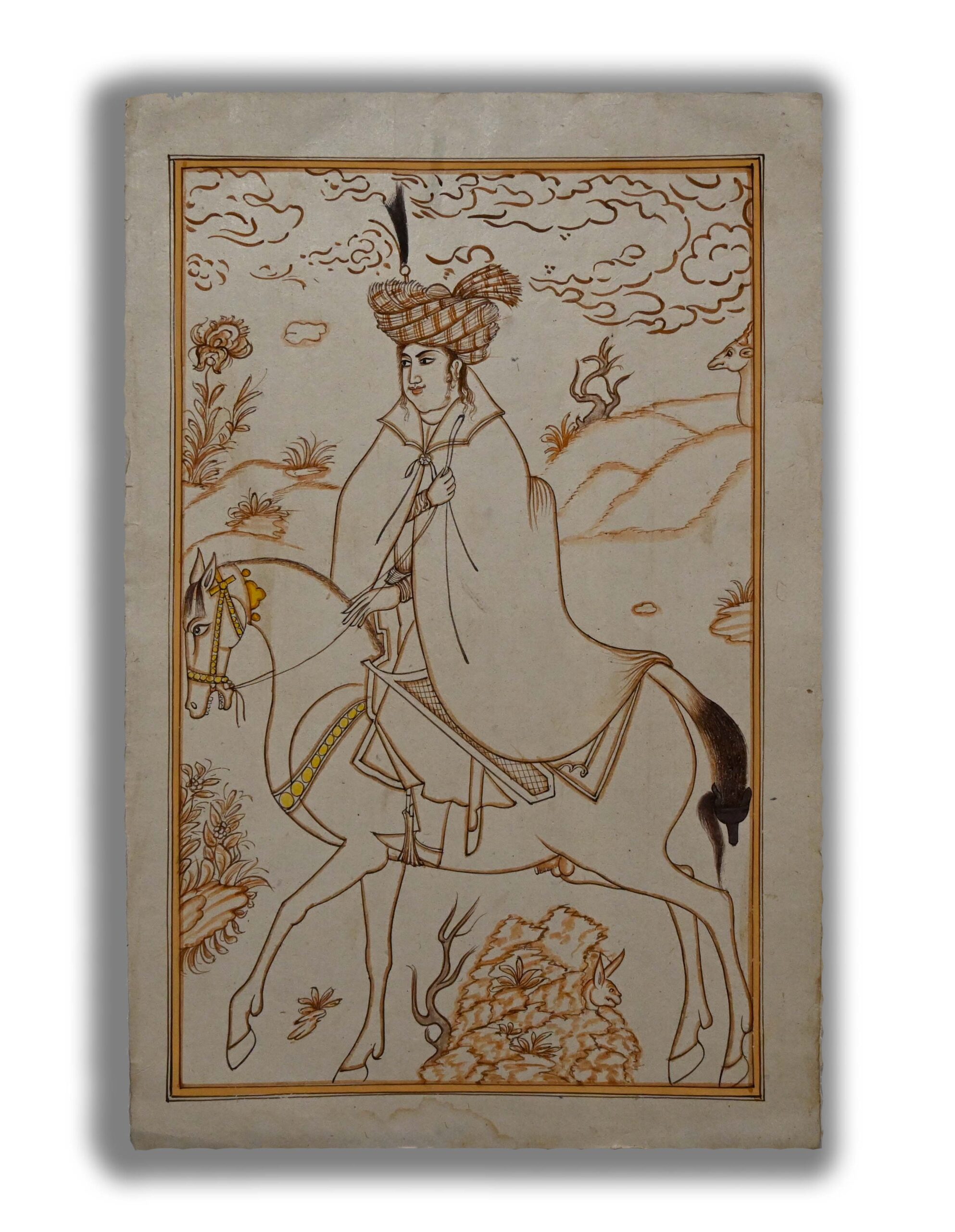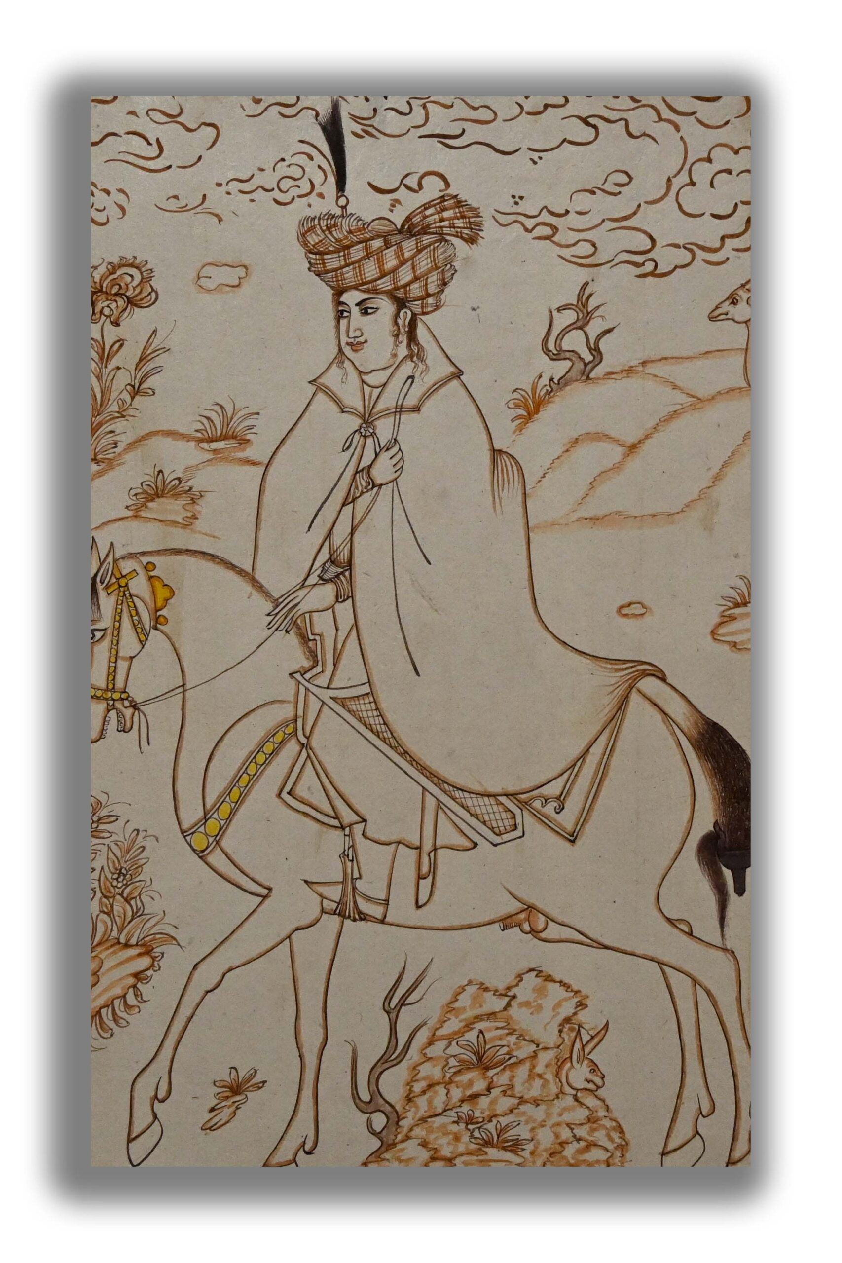 Free Shipping Worldwide & No hassle returnMounted Hunter Attributable to Reza-i Abbasi Handmade Persia Miniature Painting