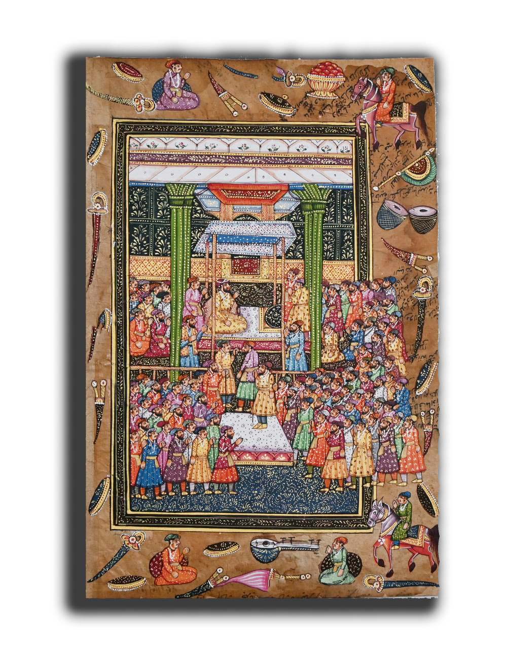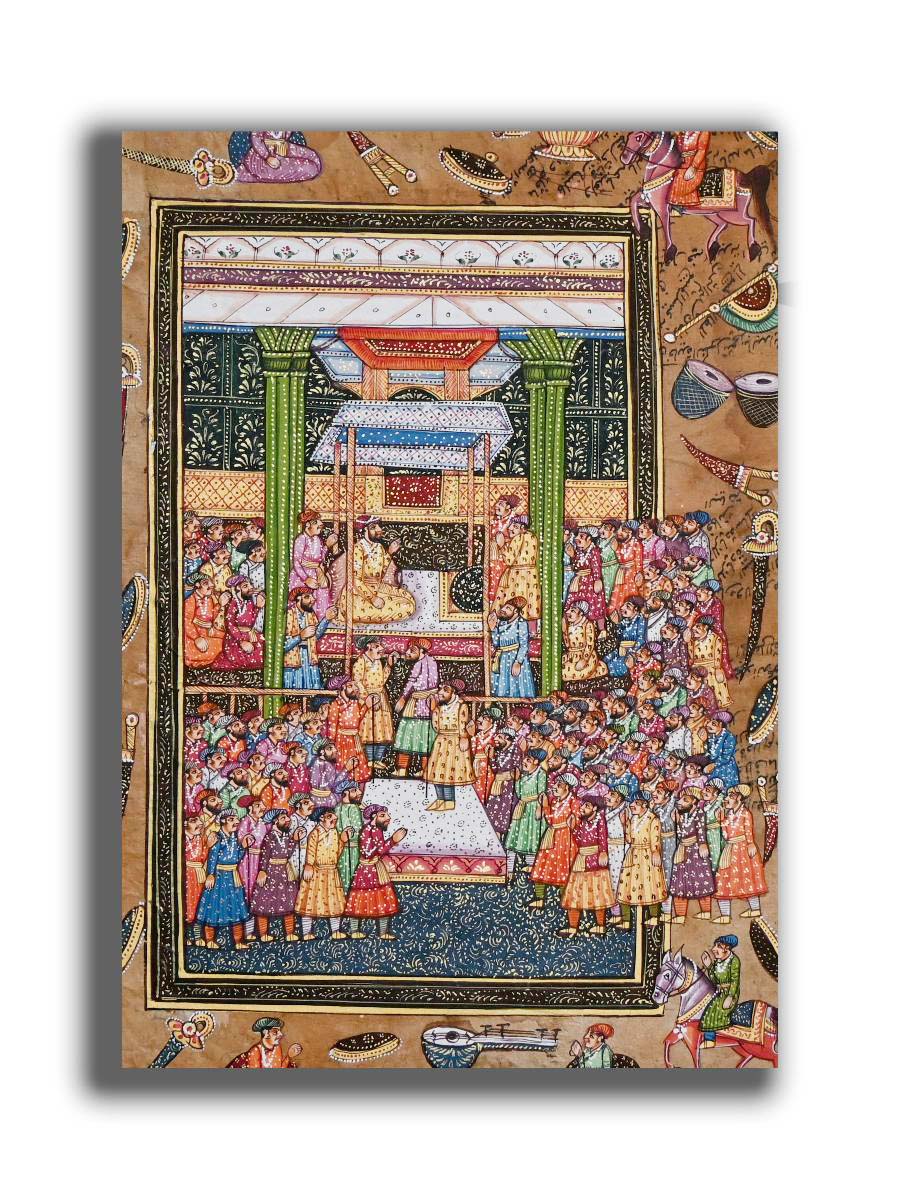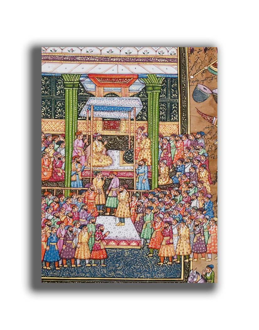 Mughal Badshah Akbar Court Seen Handmade Miniature Painting On old Paper