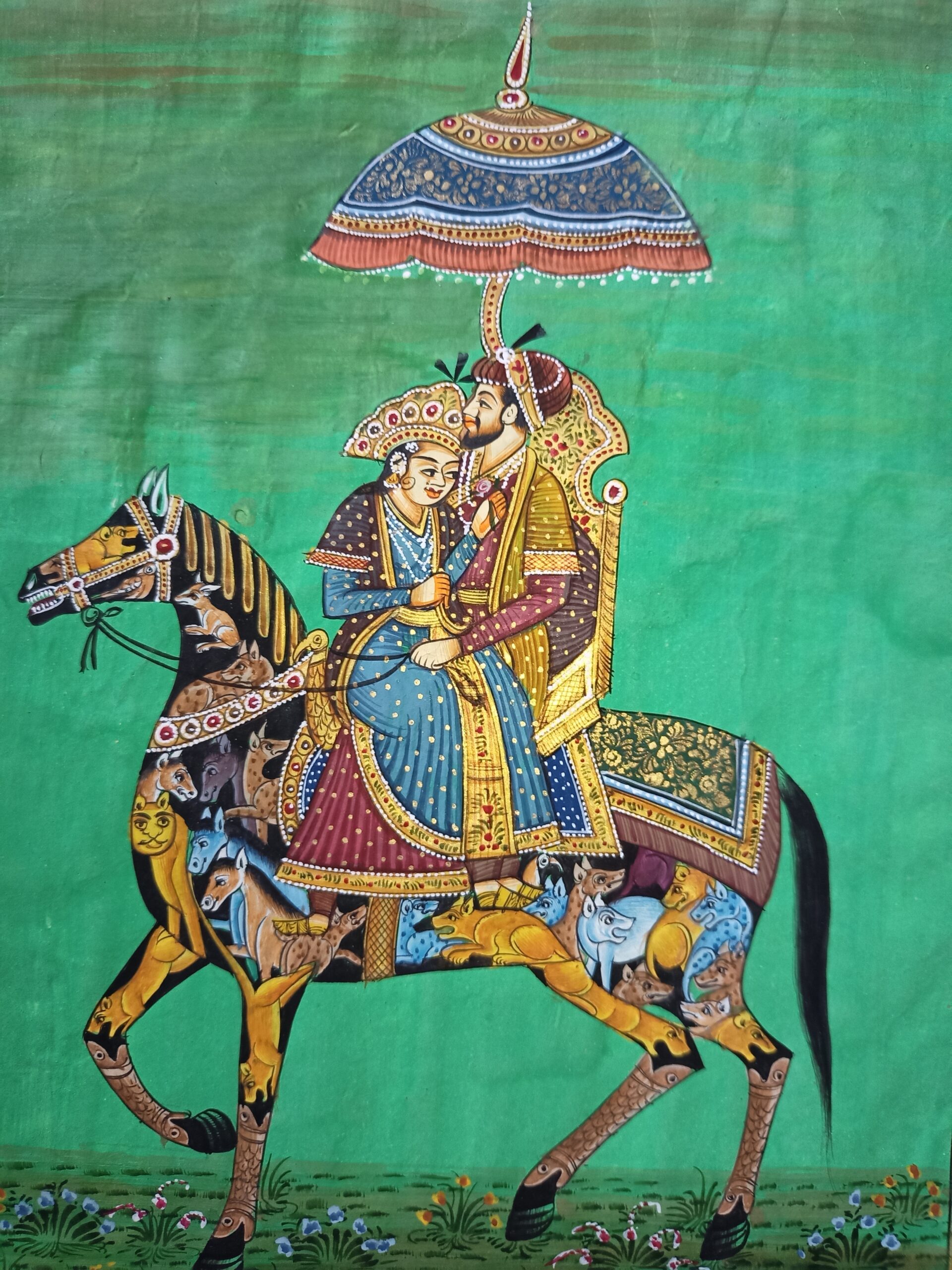 Mughal Badshah & Begum Riding Composite Horse Animal Painting Wall Art PN9040