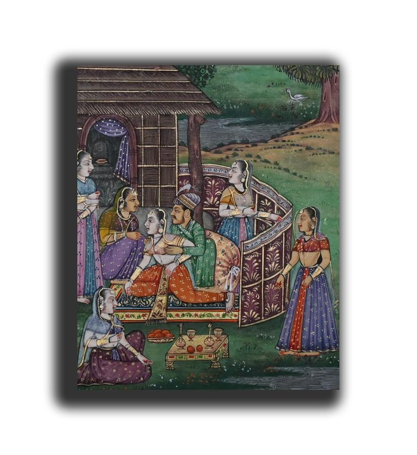 Mughal Badshah Doing Sex at Forest Painting Handmade Miniature Art PN9263
