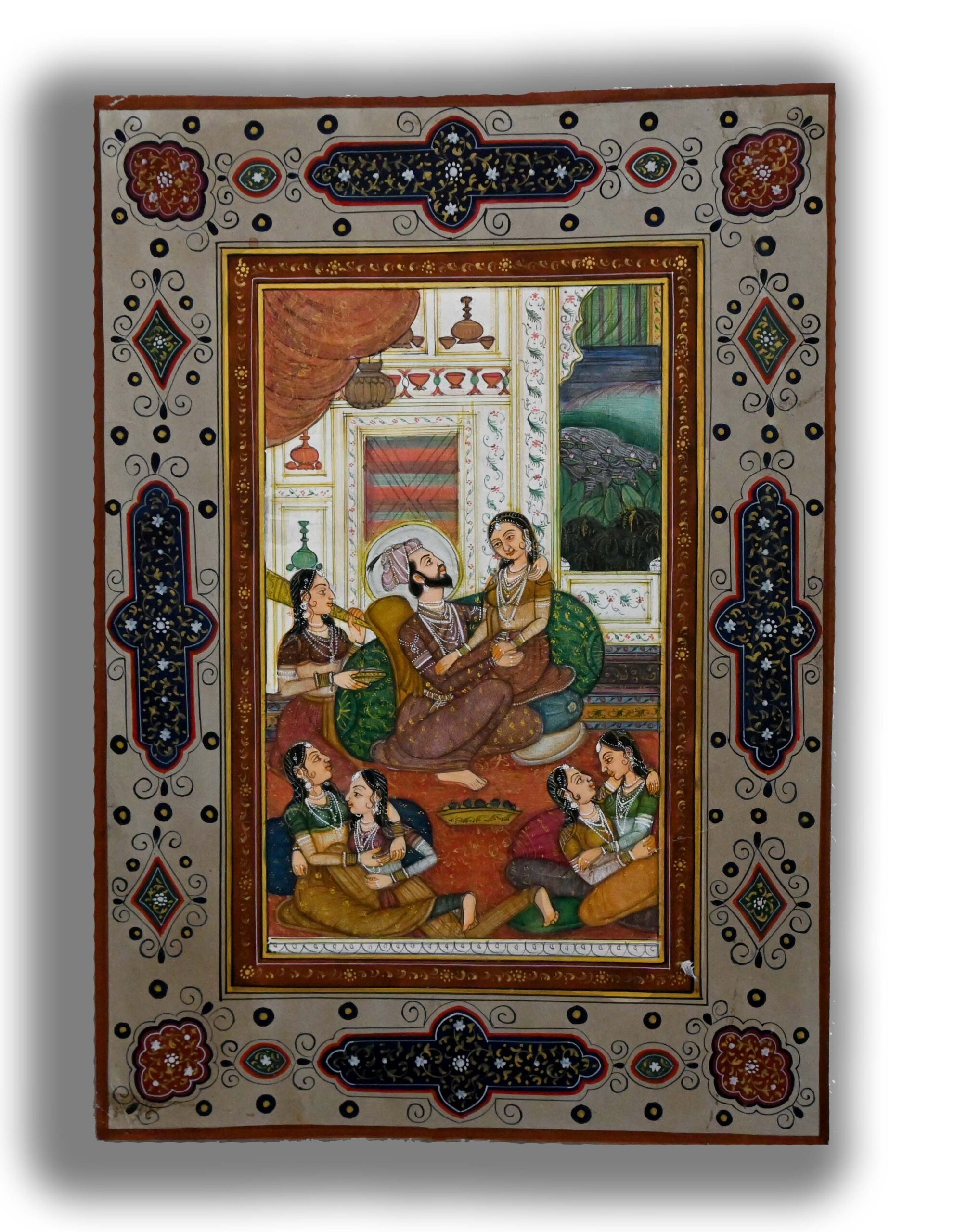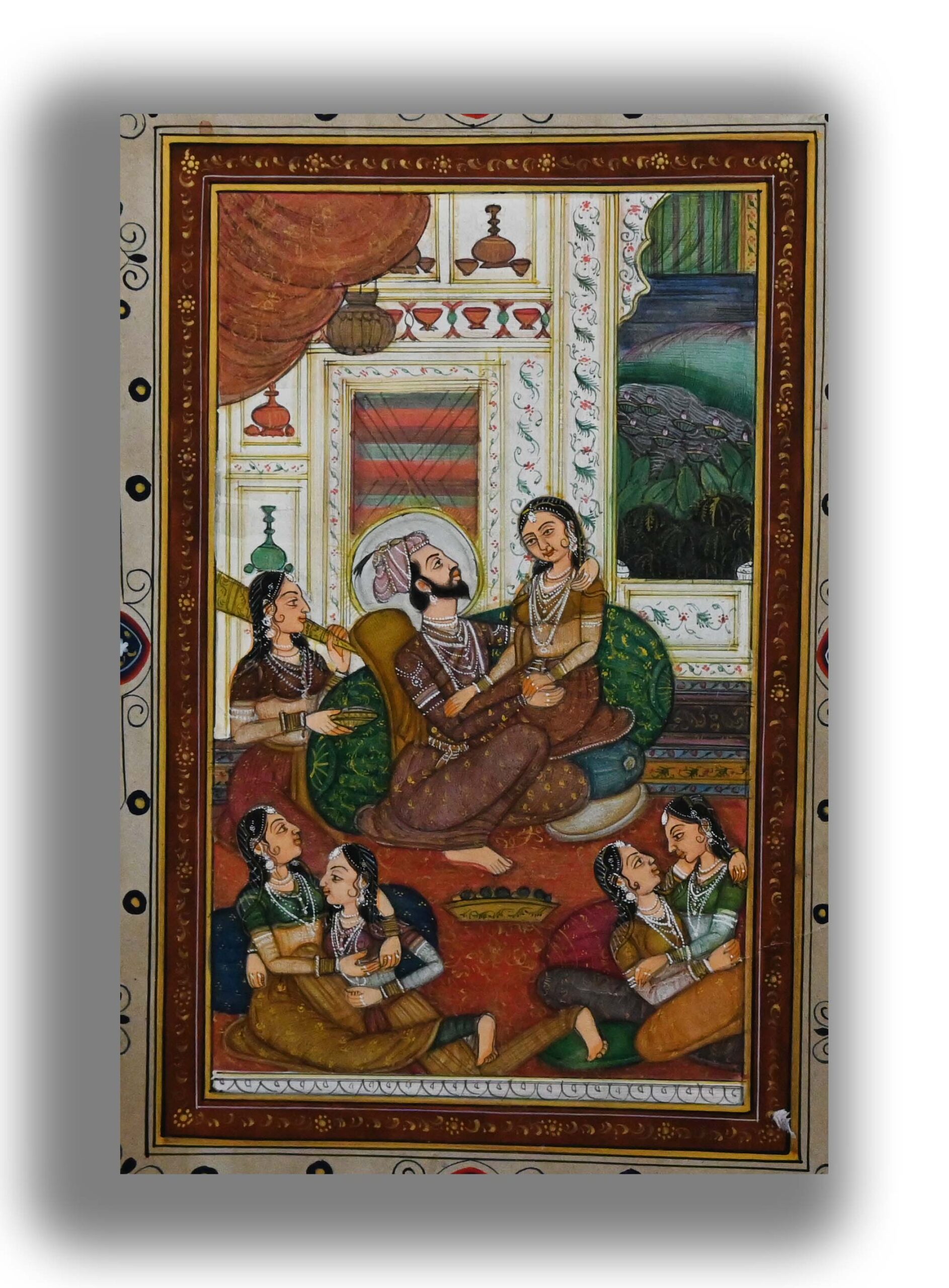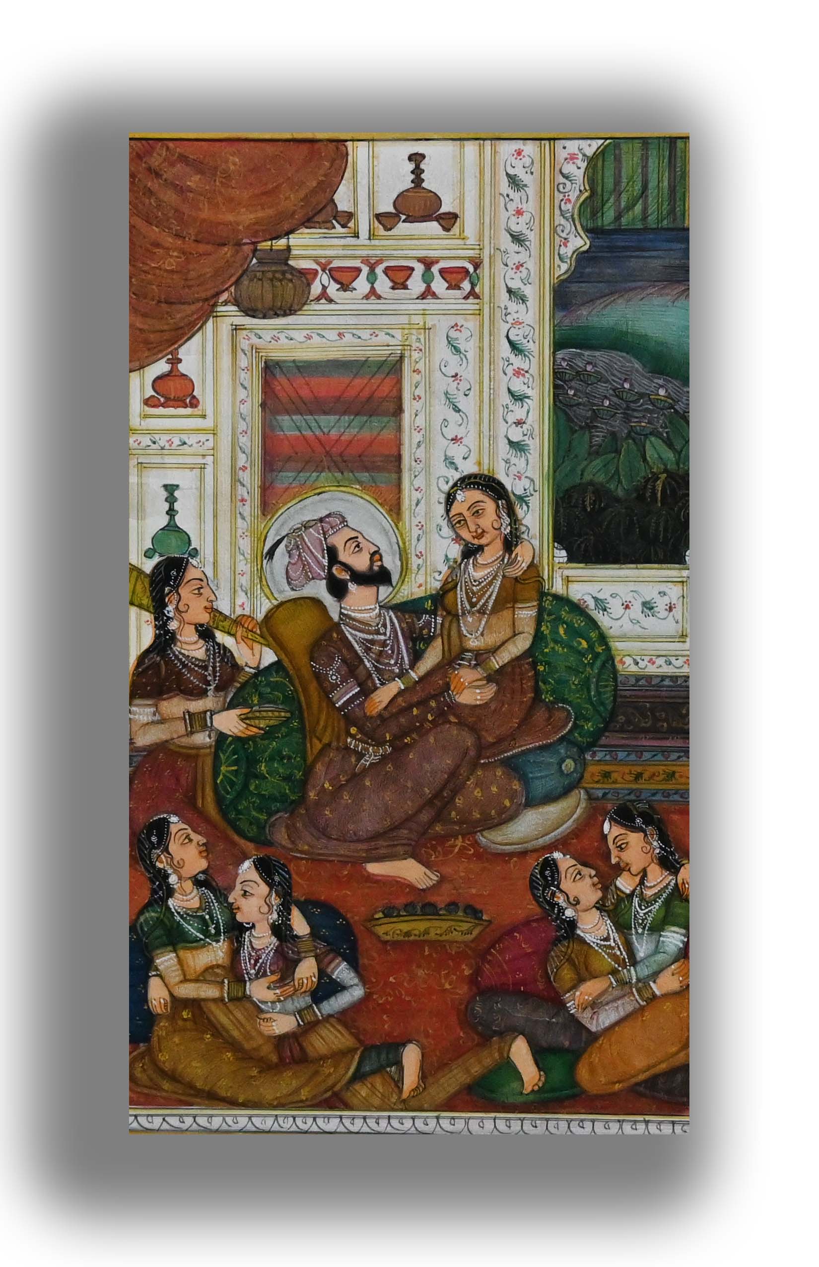 Mughal Badshah Massive Court Harem Miniature Mughal Romance Painting