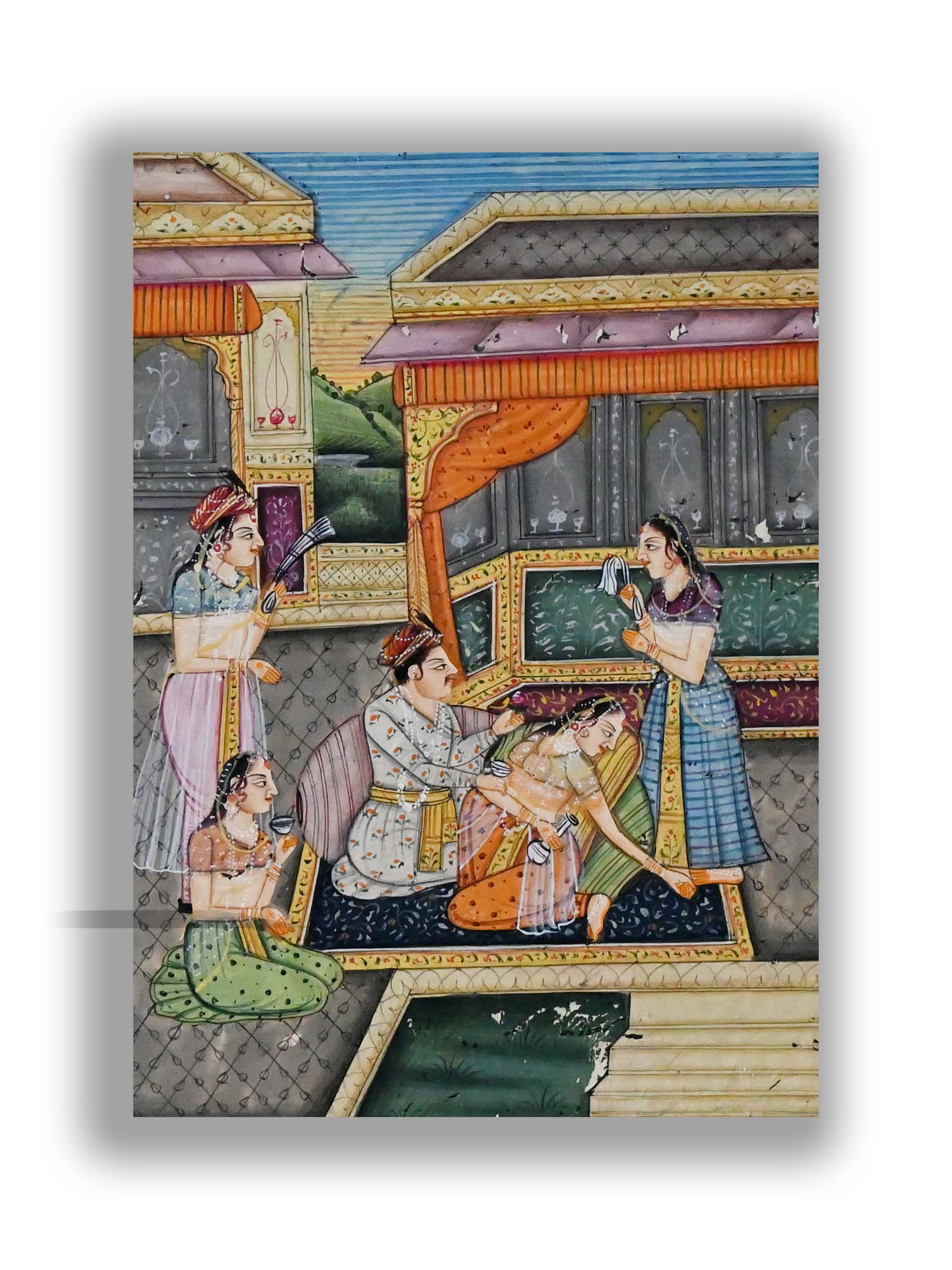 Mughal Badshah Massive Harem Asking For Sex at Forest Handmade Painting #8768