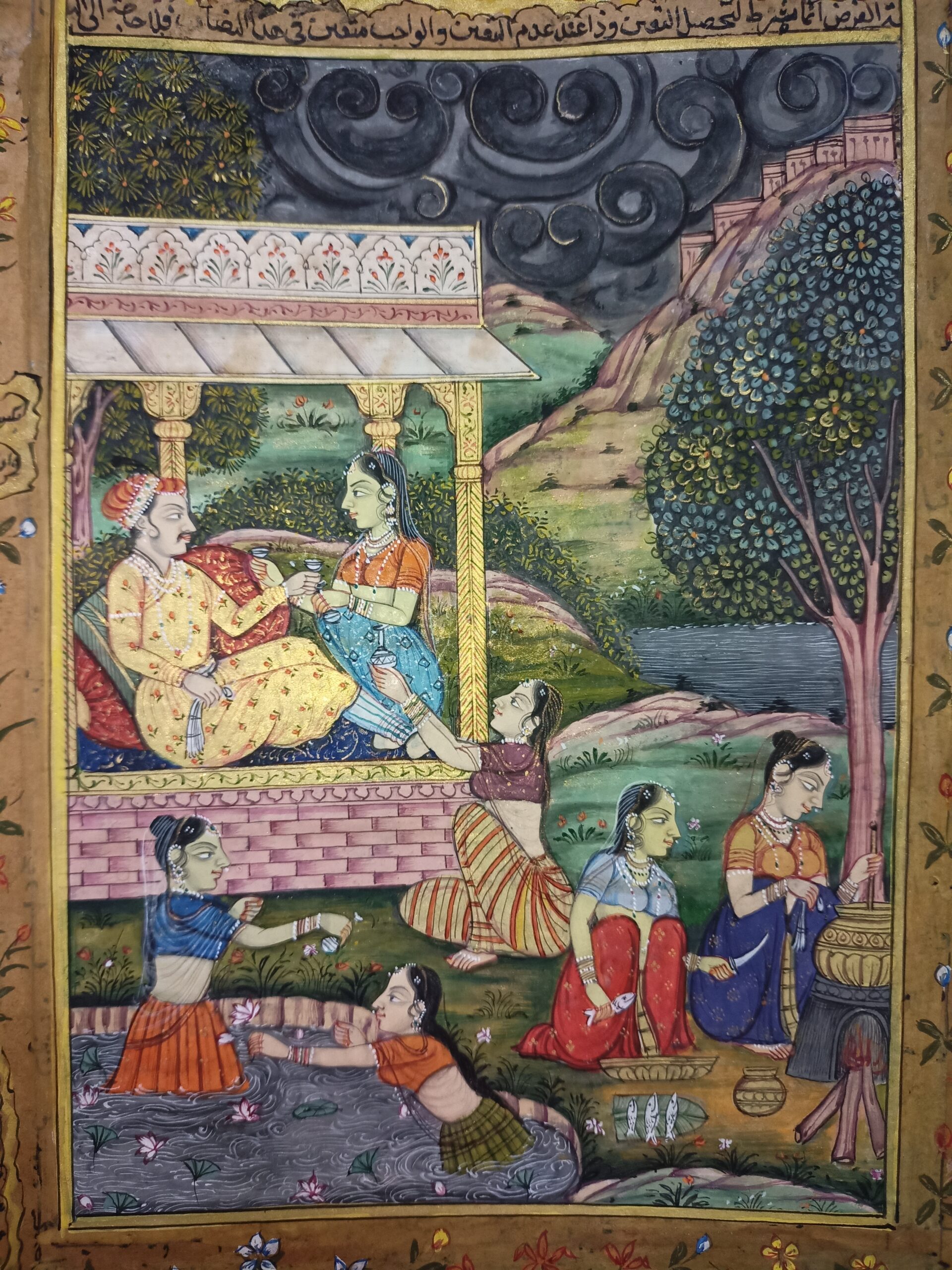 Mughal Badshah Massive Harem at Pool Damsels Painting