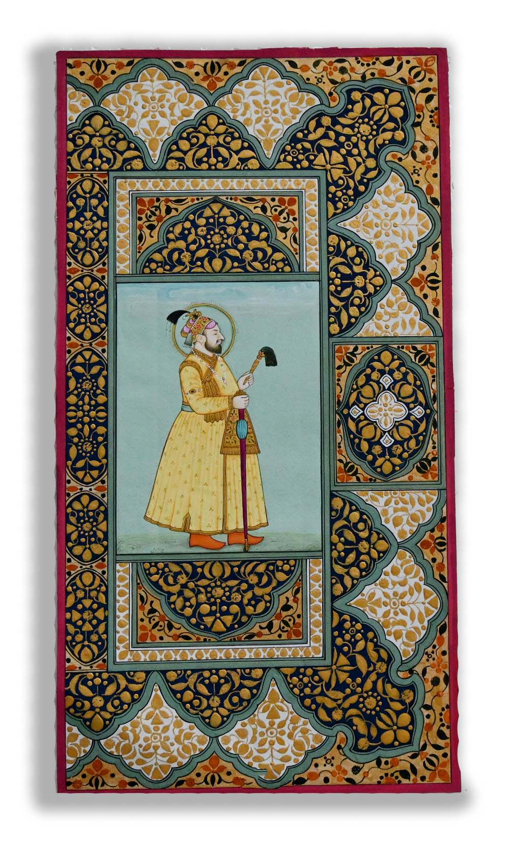 Mughal Emperor Akbar King Jahangir & King Shah-Jahan Portrait with Gold Painting