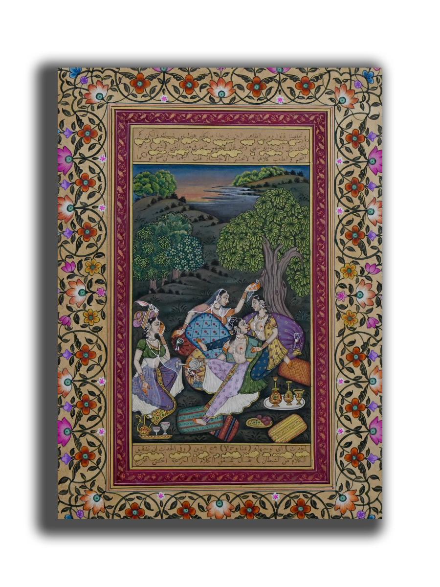 Mughal Emperor Begum Harem Preparing for Sex Handmade Miniature PaintingSubject: Mughal Miniature Painting Paint Material:Water color Base Material: Paper Age: Modern handmade art Country of origin: India |