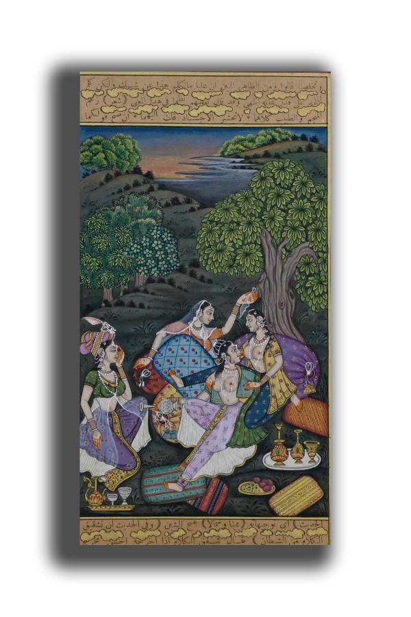 Presenting the auspicious rare painting of mughal begum harem preparing for sex.
