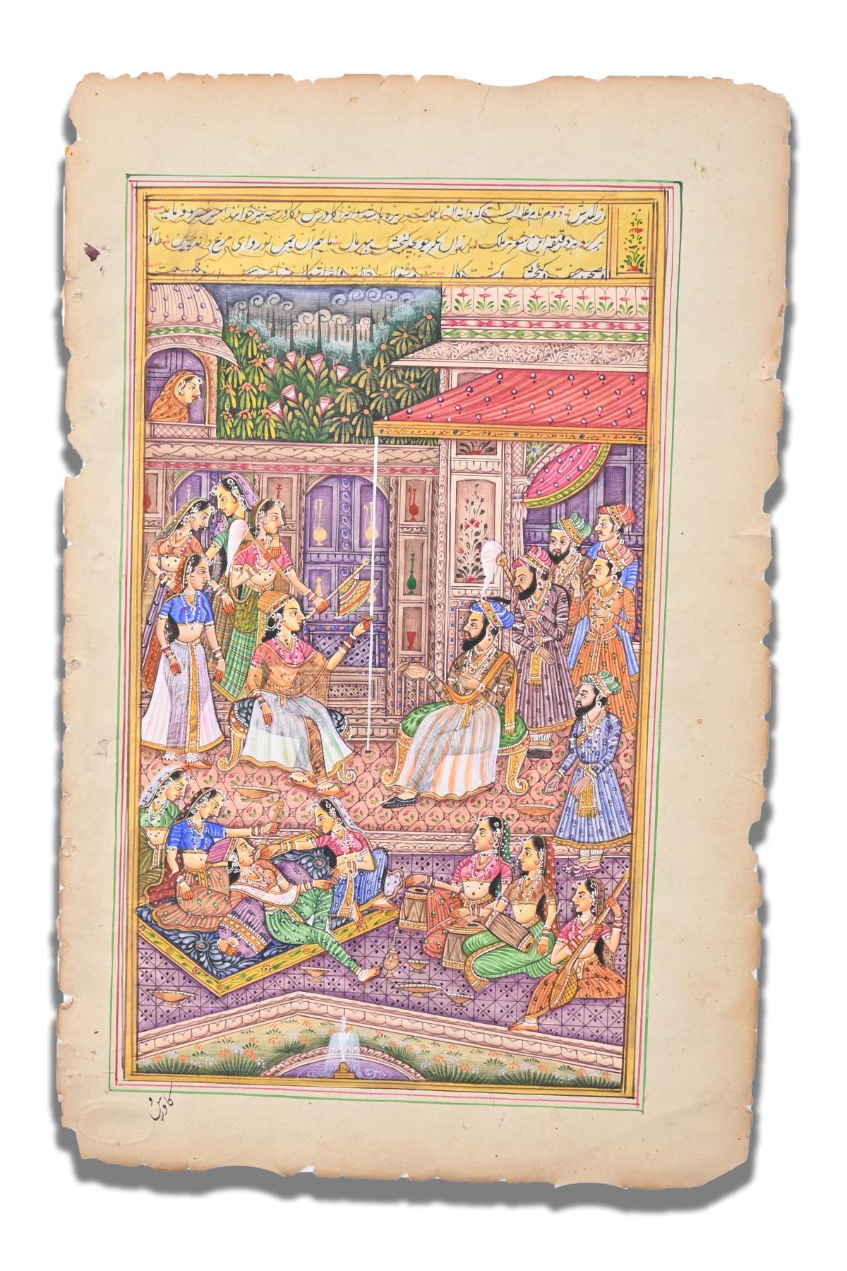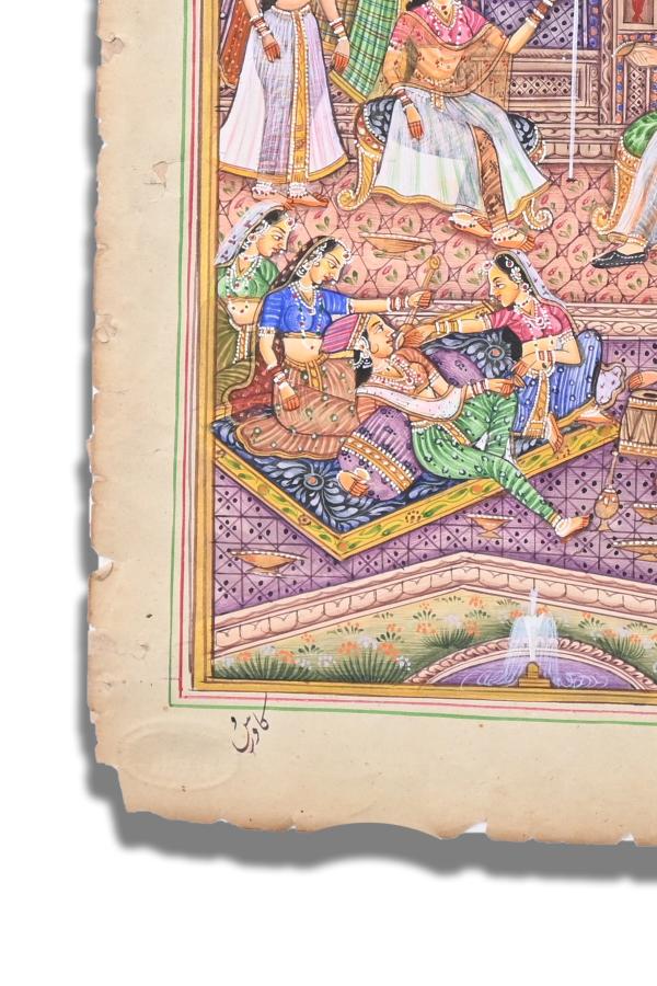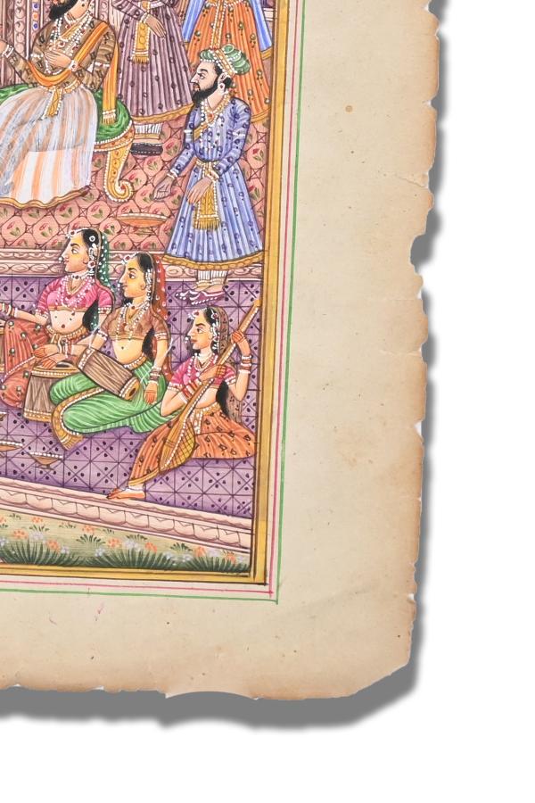 Mughal Emperor Enjoying Music Night Handmade Painting 13.6 x 9 In “PN13339”