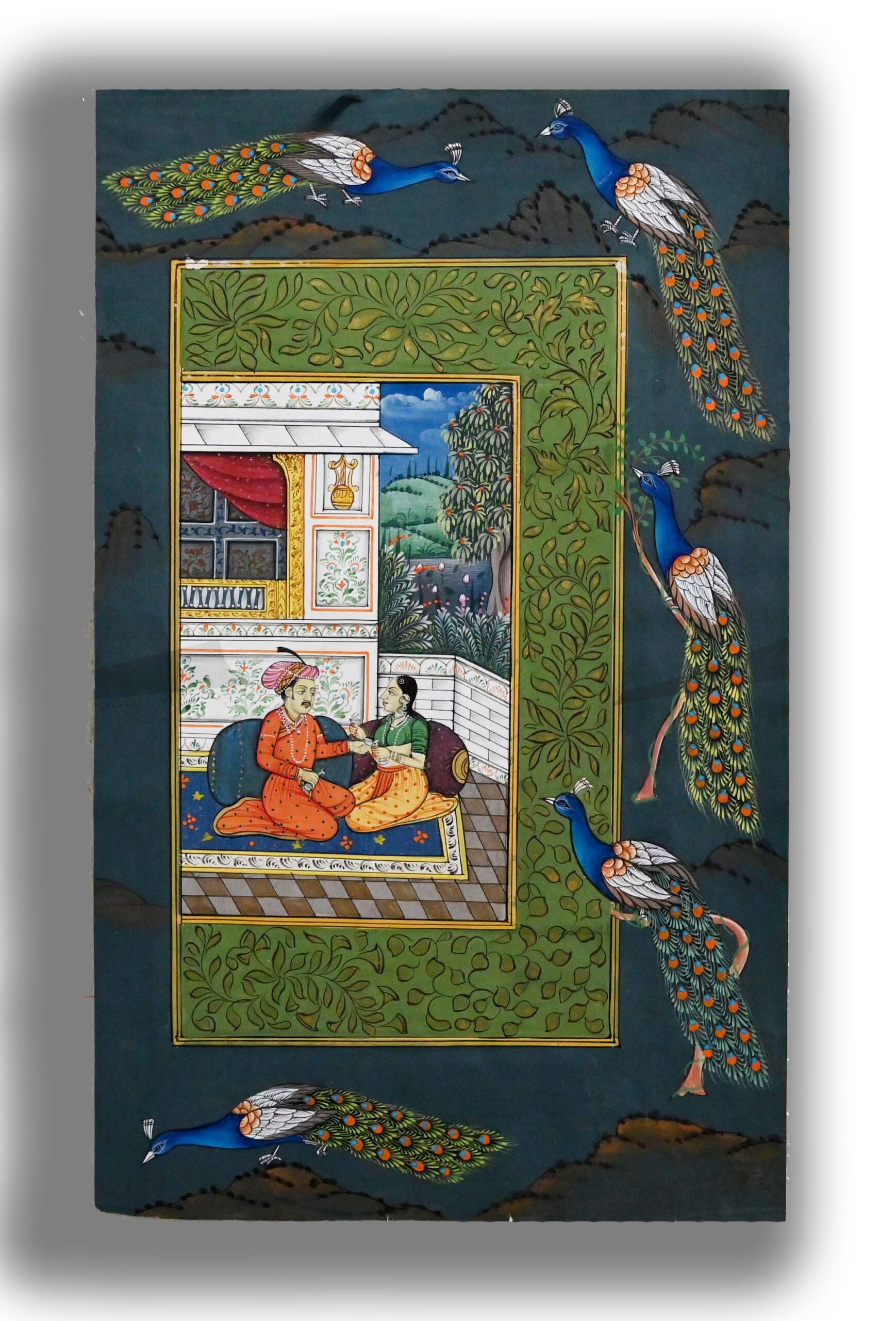 Mughal Emperor Harem Painting Handmade Miniature Artwork With Peacock Border