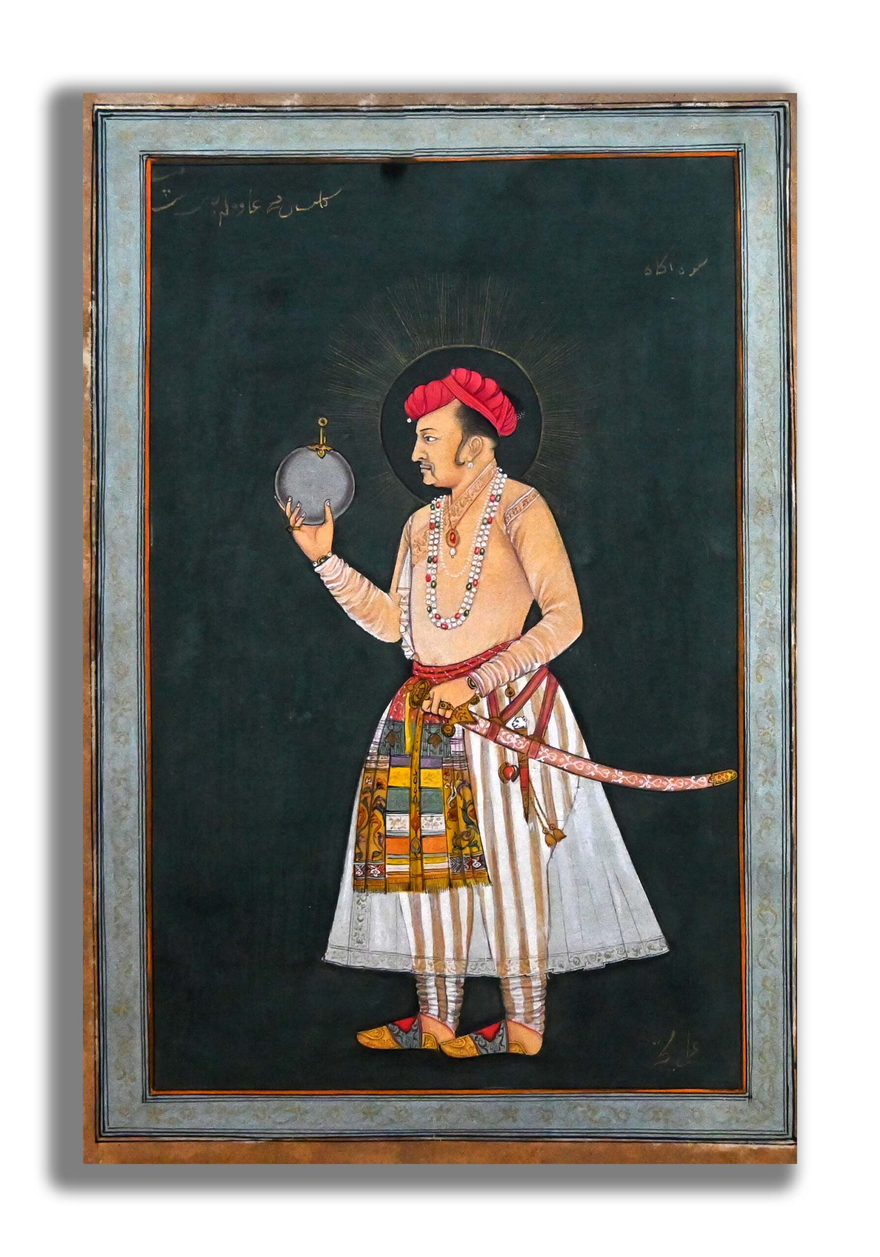 Mughal Emperor Jahangir Badshah Portrait Handmade Minatare Painting on old Paper