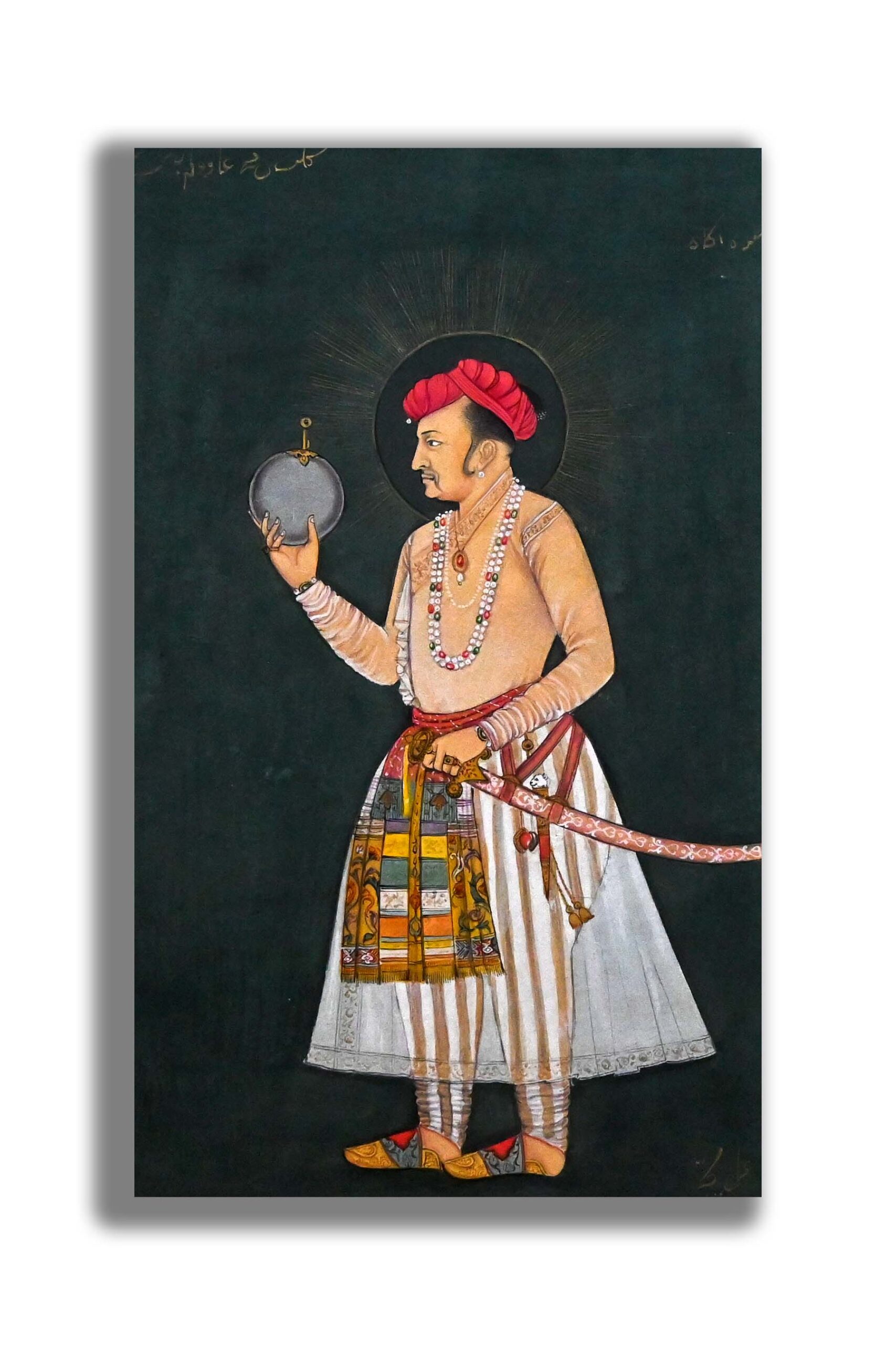 Buy this painting portraying the mighty Mughal king in vivid colors. A perfect addition to any corner of your living space, this painting will elevate the ambiance of your room in an instant.
