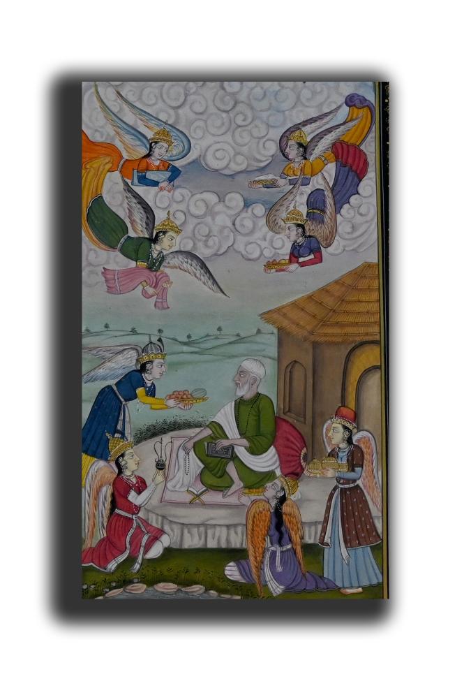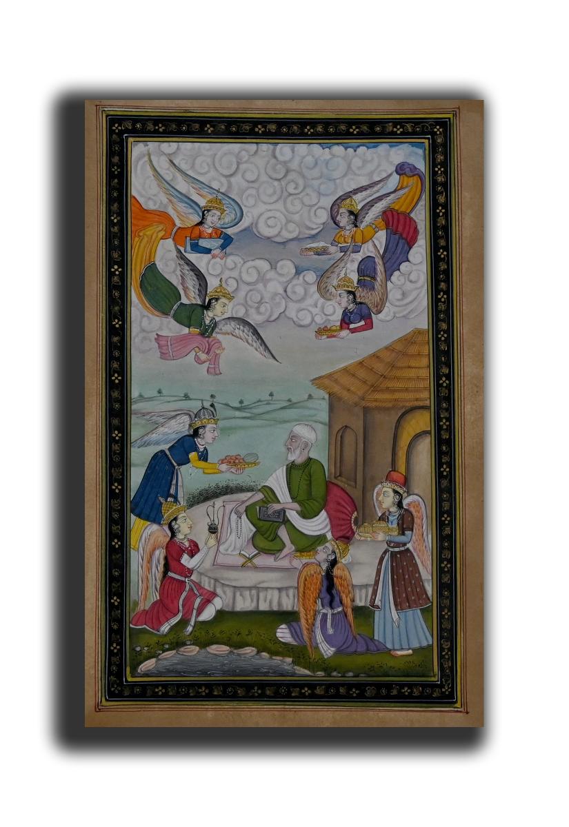 Mughal Priest Served Food by Angels Handmade Mughal-Persian Miniature Painting