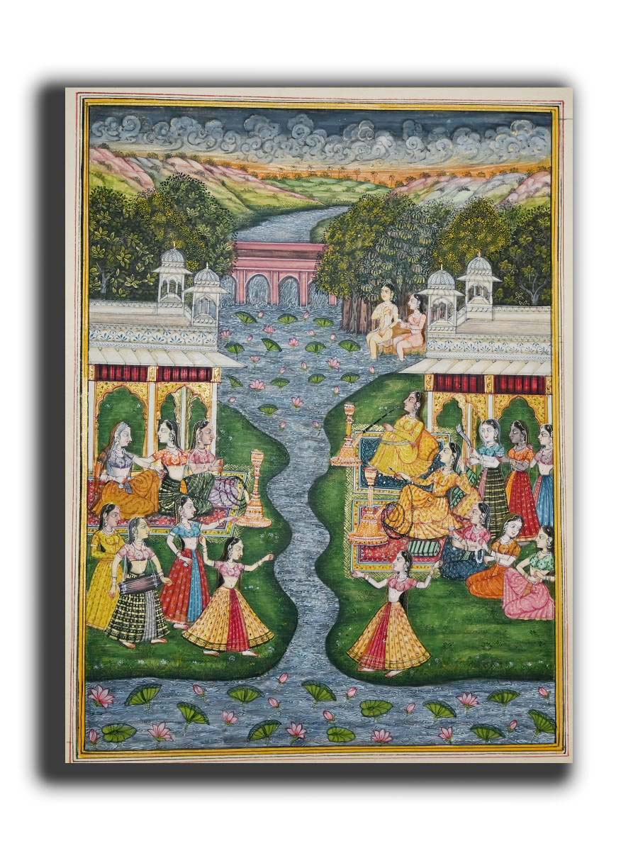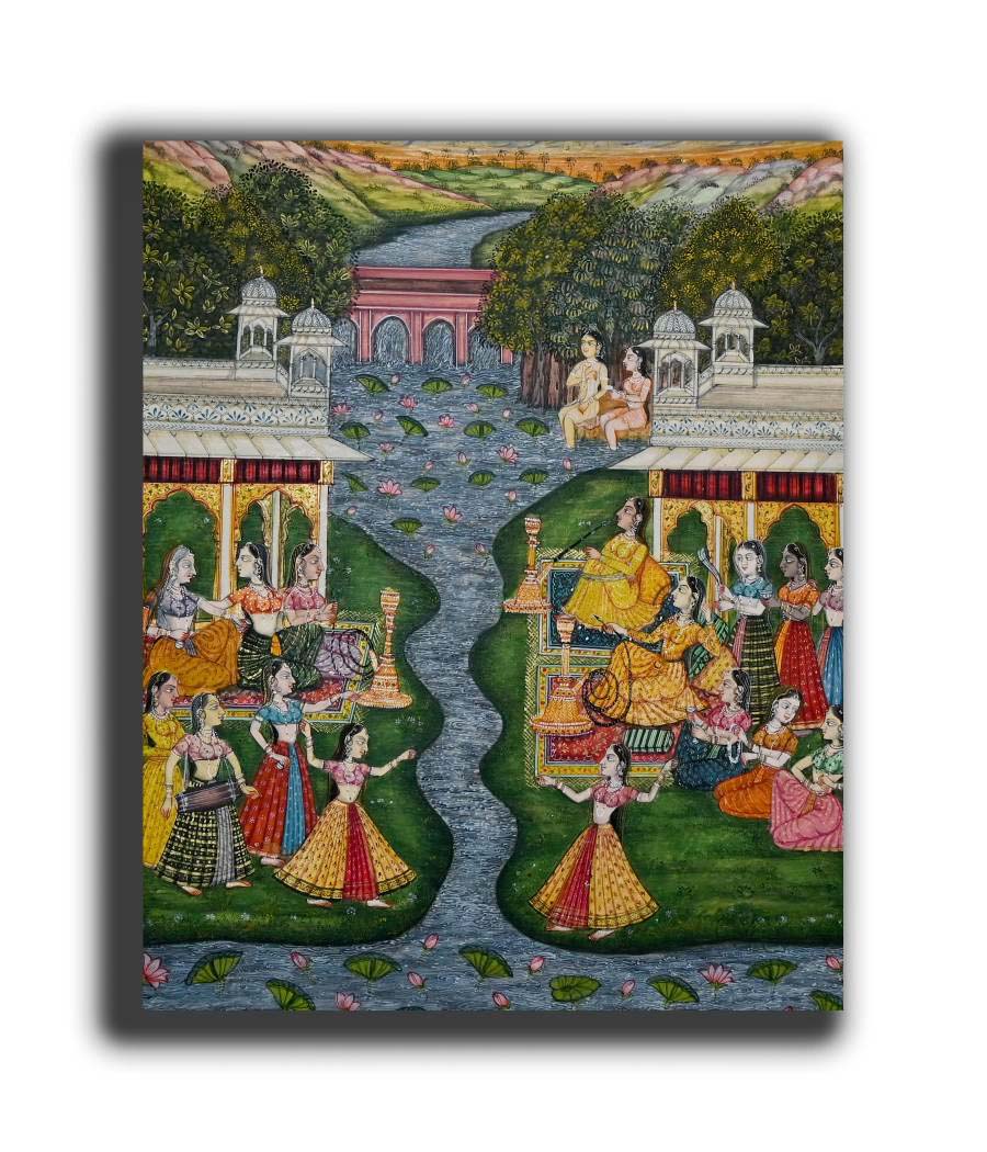 Mughal Queen Enjoying Night Handmade Miniature Painting 13.5 x 11 In “PN11246”