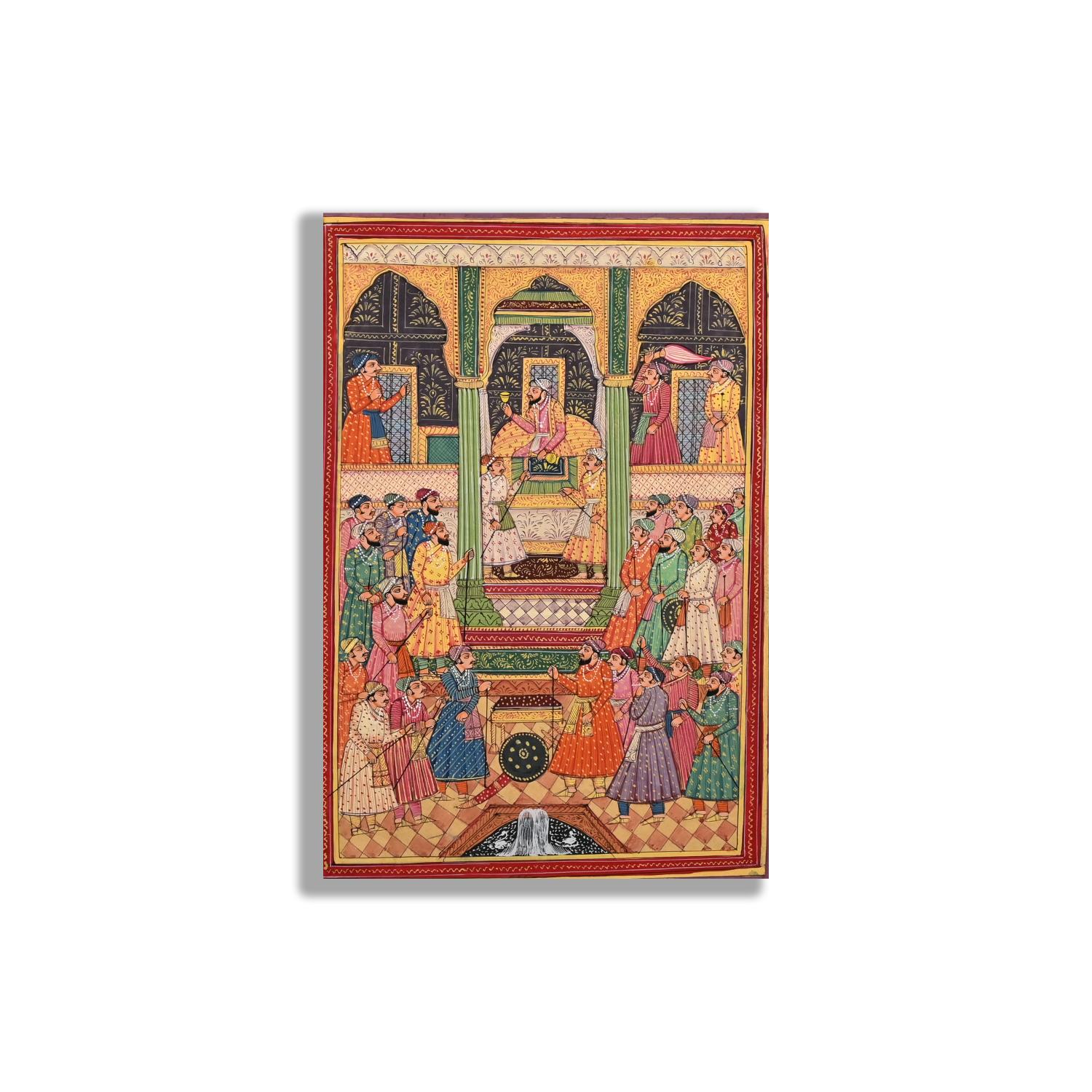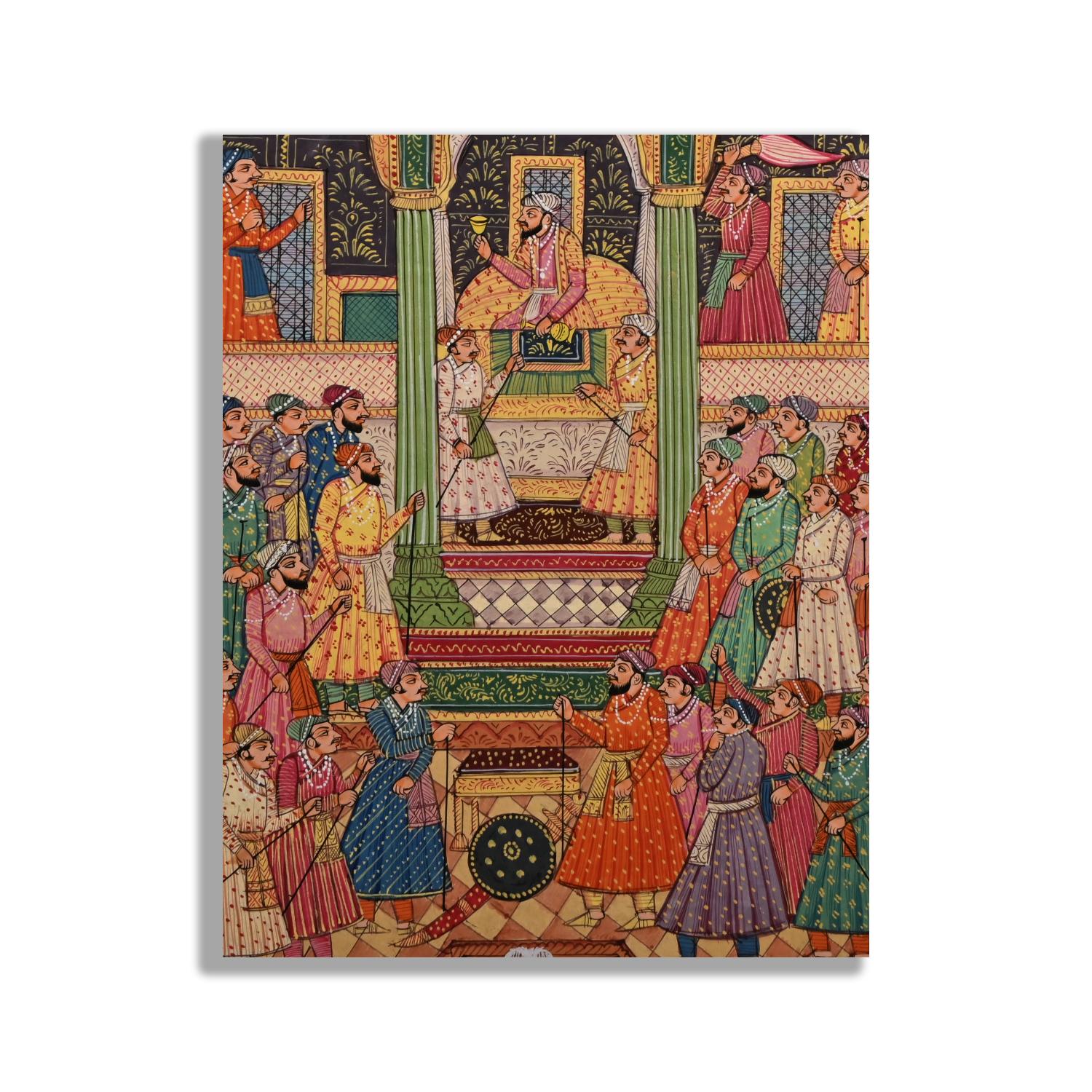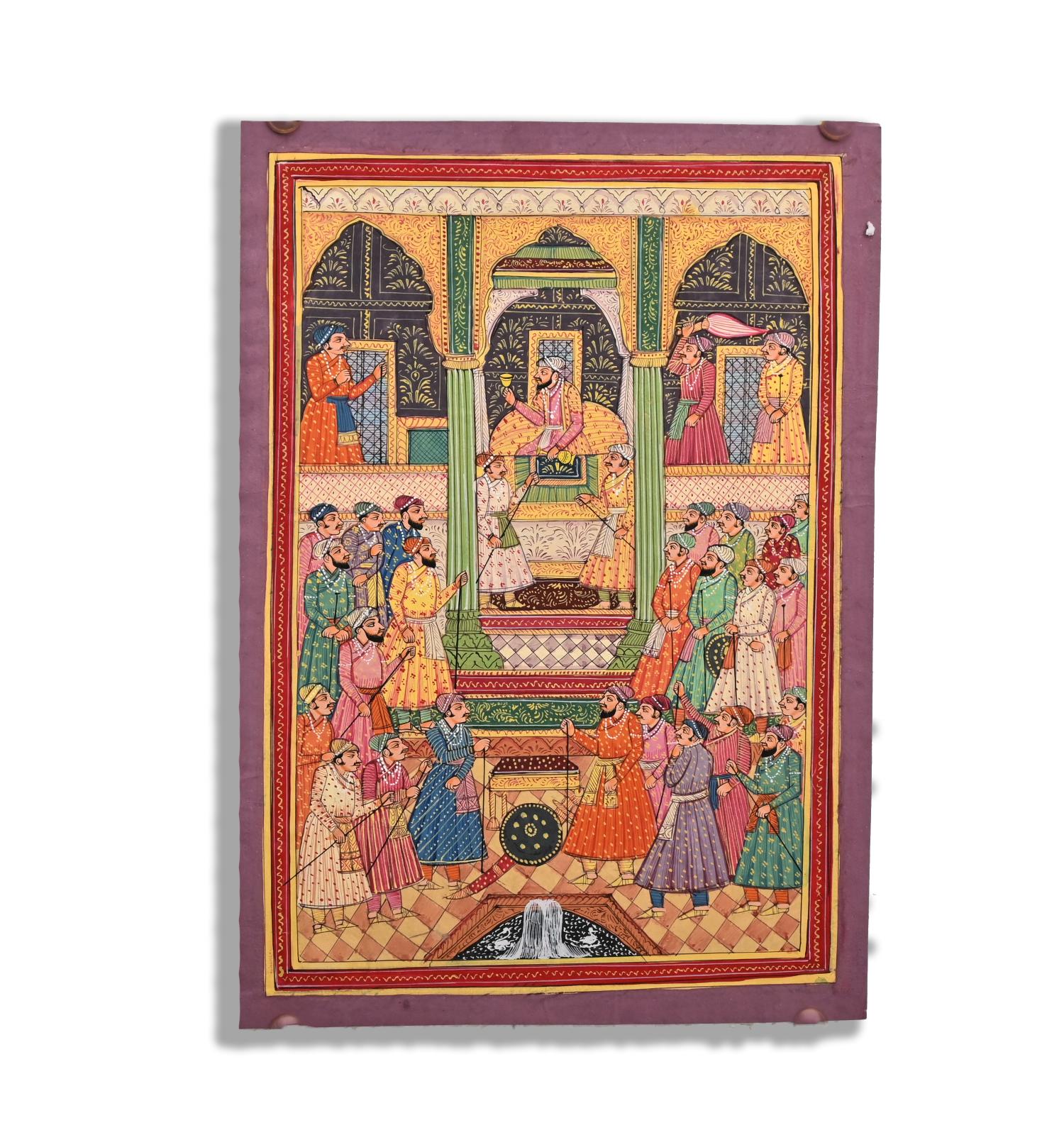 Old Mughal Badshah Court Scene Handmade Miniature Artwork On Old Paper