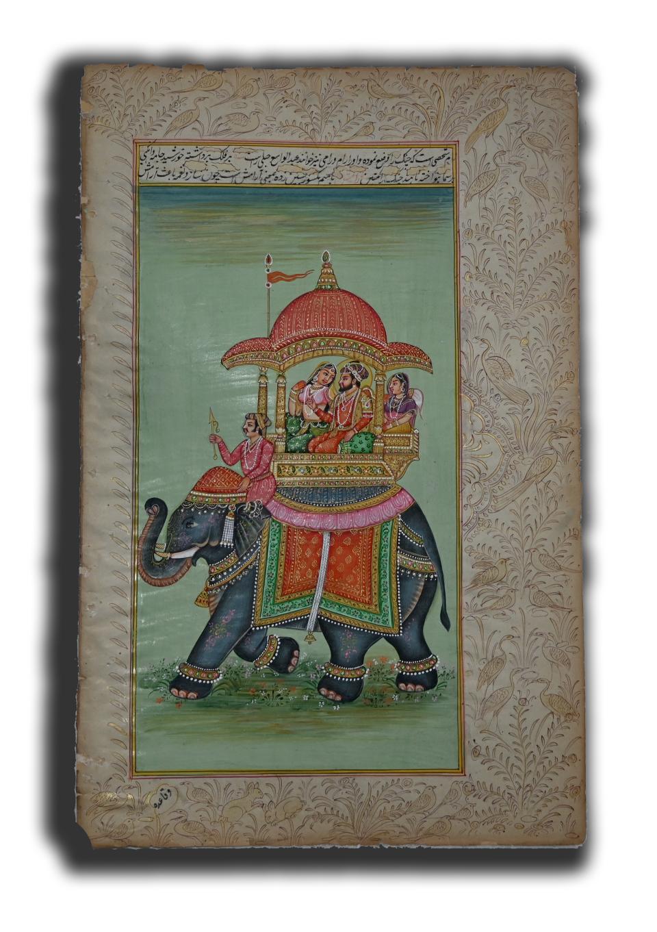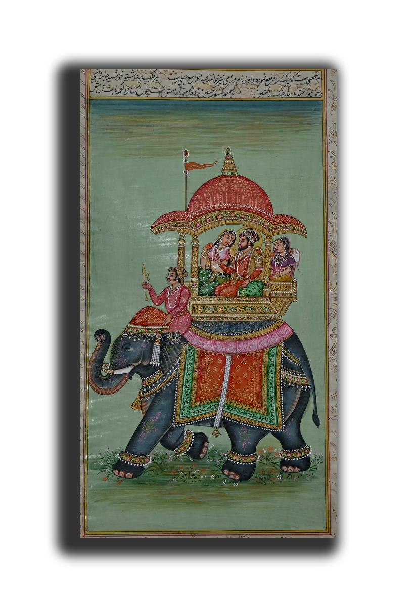 Mughal Badshah Riding Elephant with Begum & Damsels Pair Handmade Painting