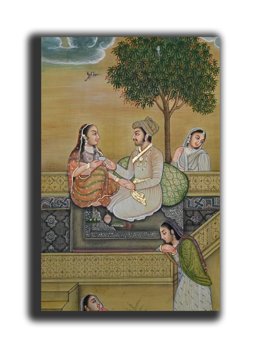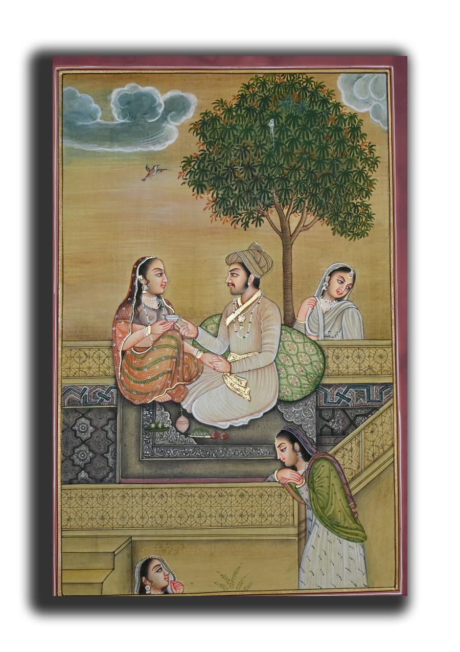 Ancient Mughal Badshah went on a Date with his Love Handmade Miniature Painting