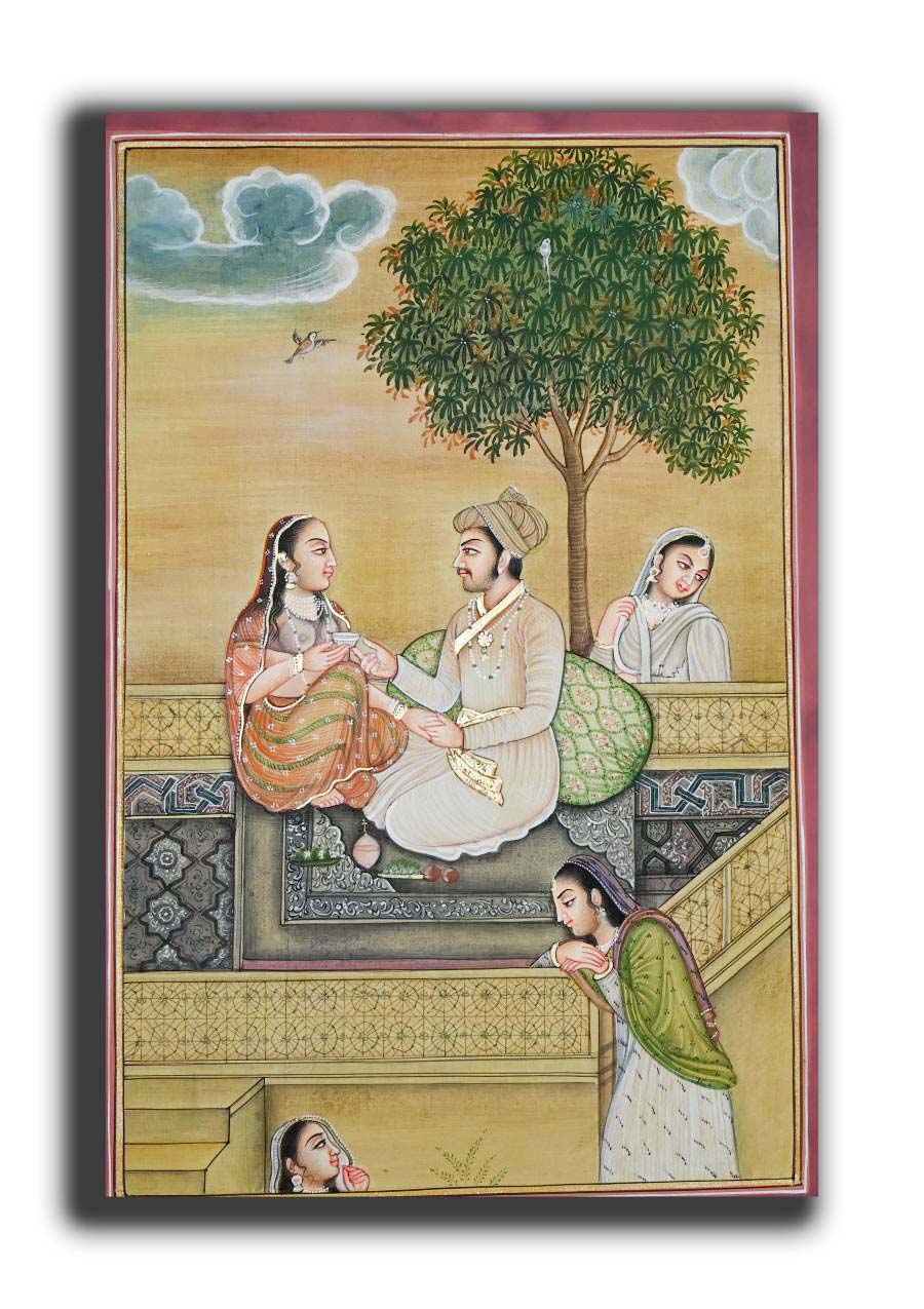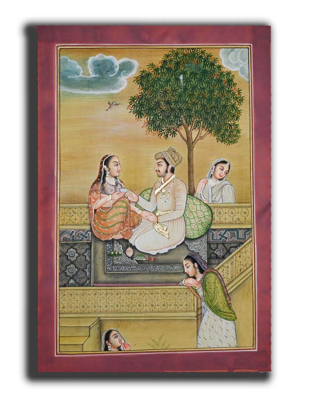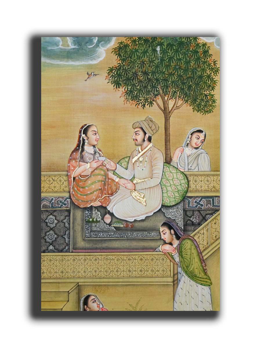 Ancient Mughal Badshah went on a Date with his Love Handmade Miniature Painting