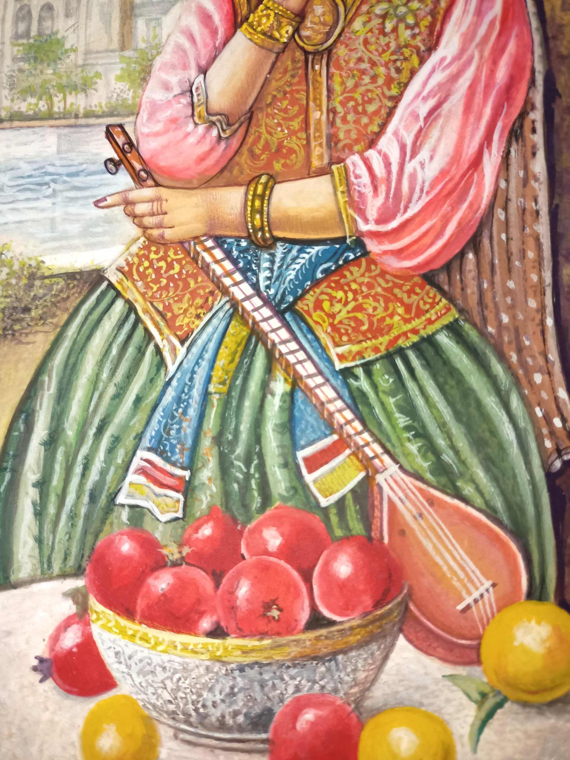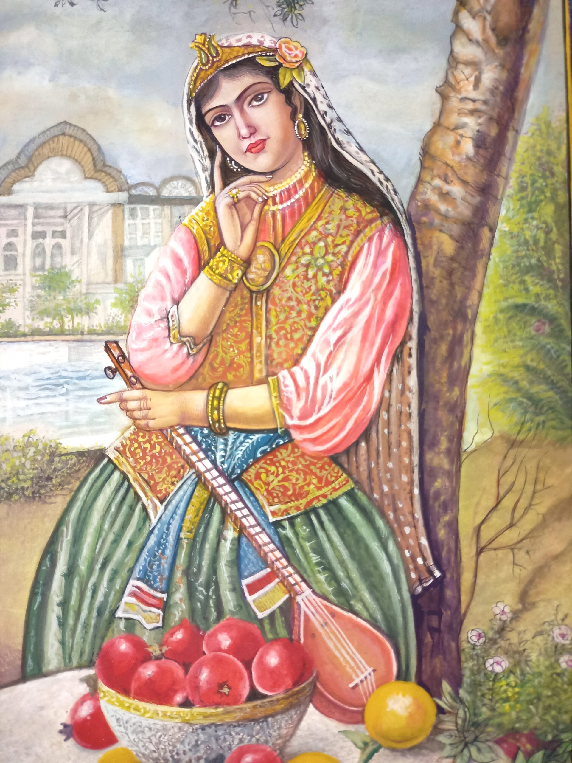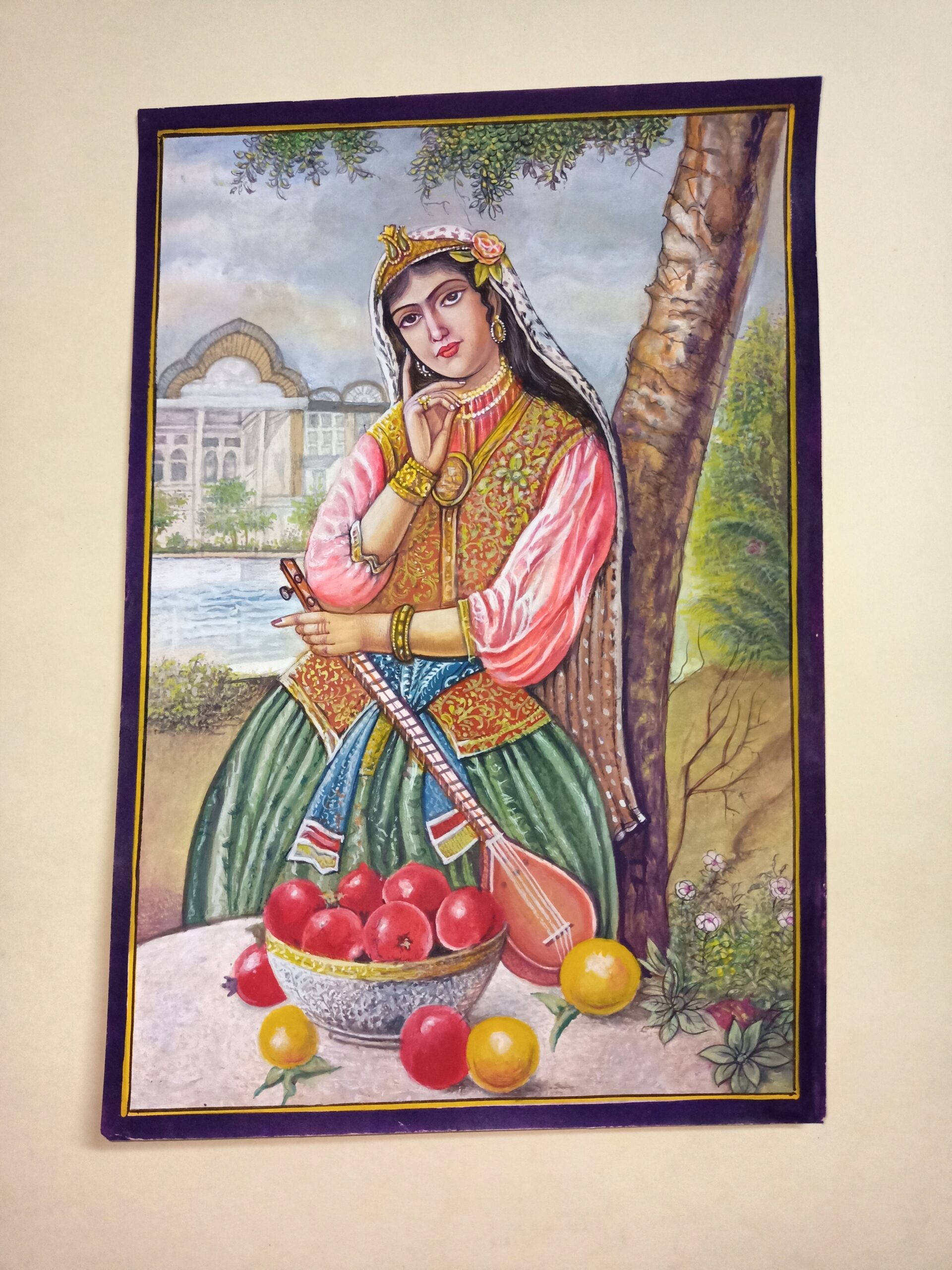 Ottoman Girl Portrait with Tar Handmade Miniature Painting on Paper