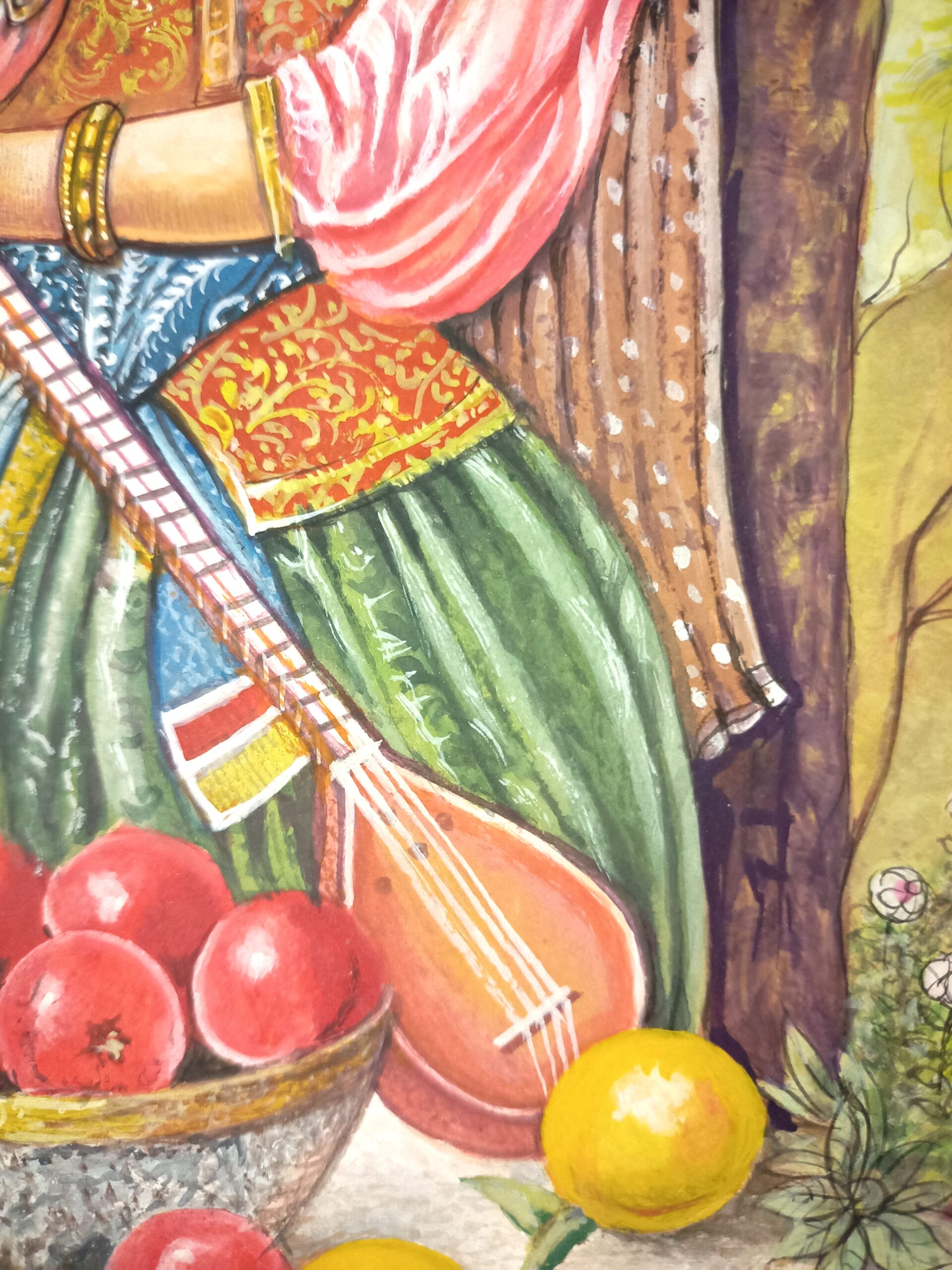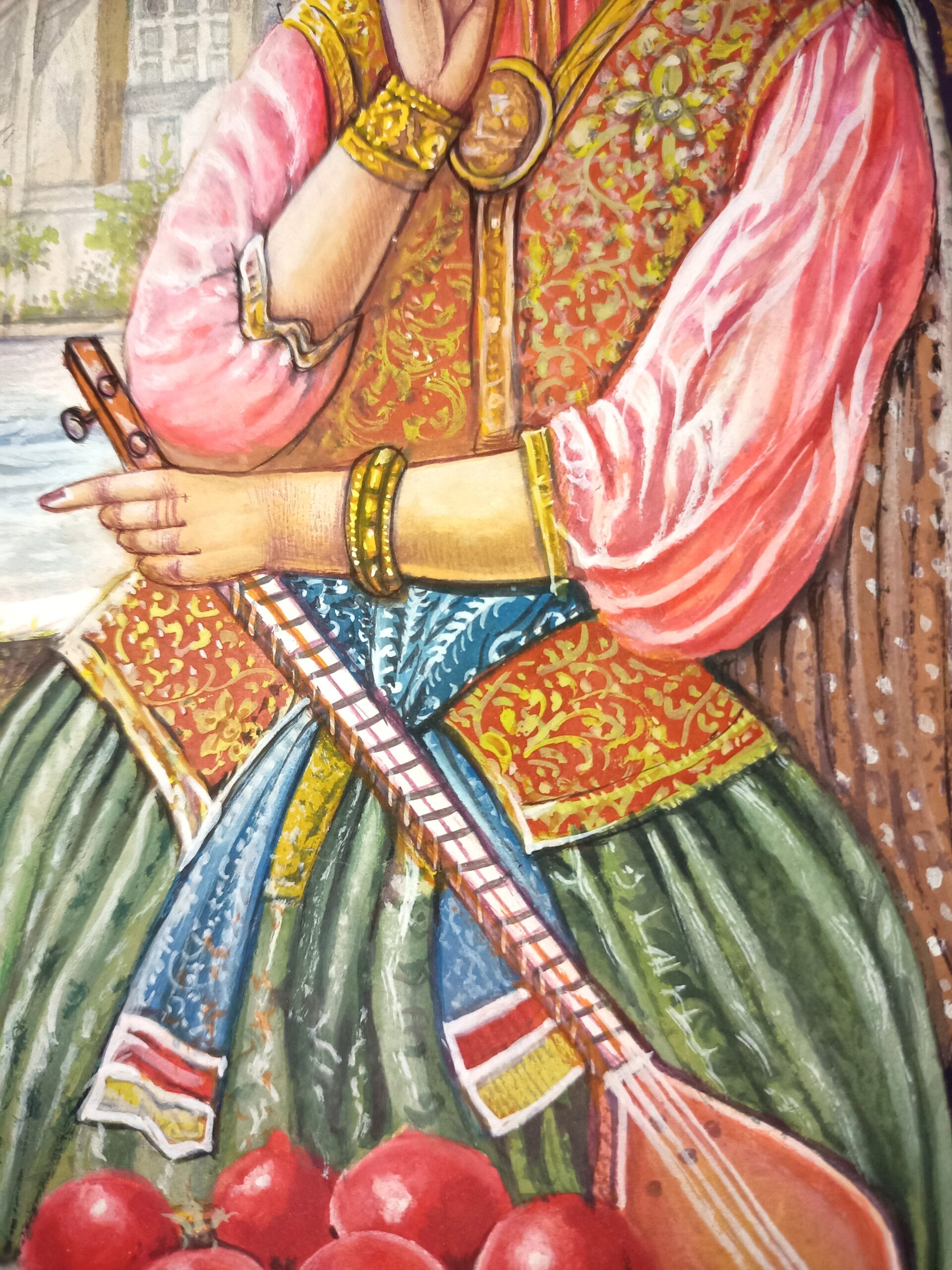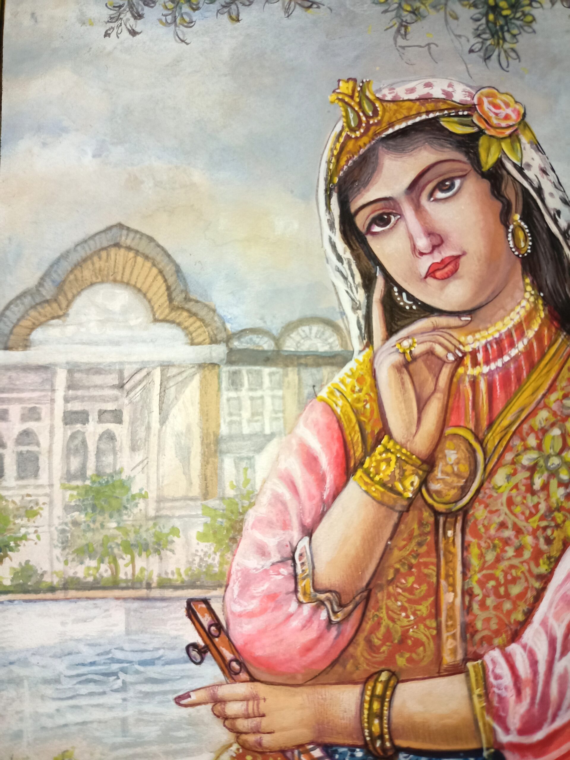 Ottoman Girl Portrait with Tar Handmade Miniature Painting on Paper