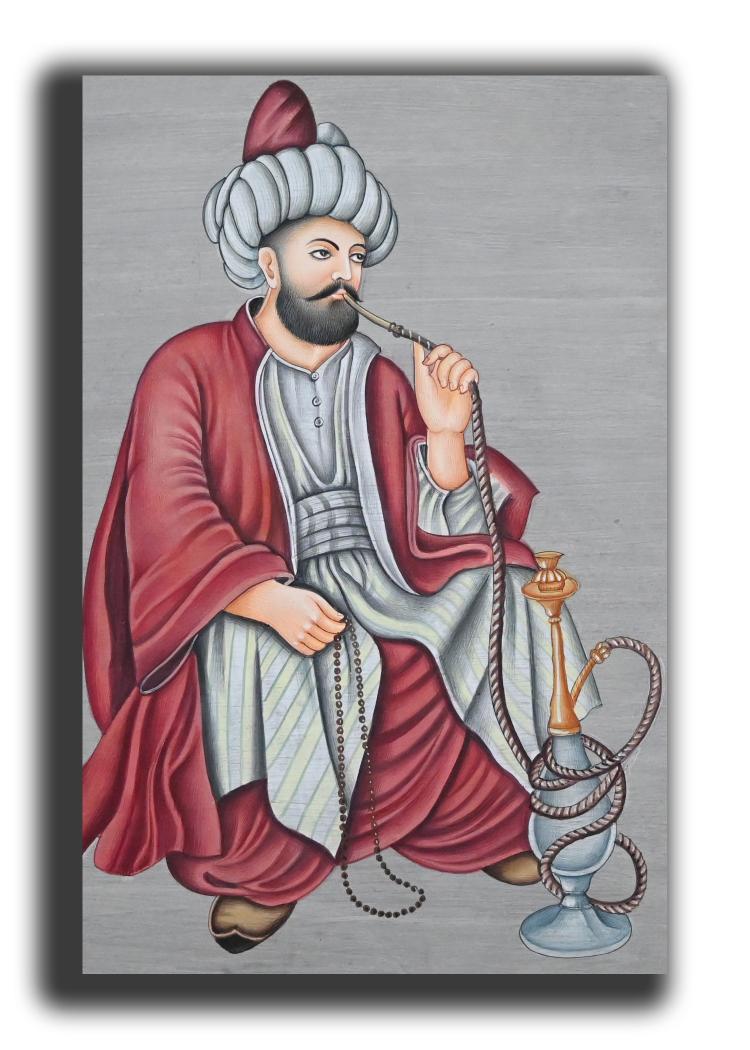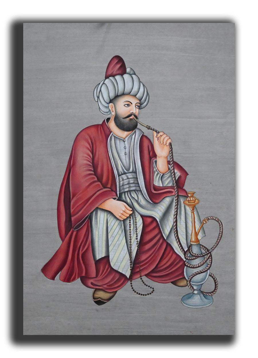 Ottoman Sultan Enjoying Smoke Pipe Handmade Miniature Painting