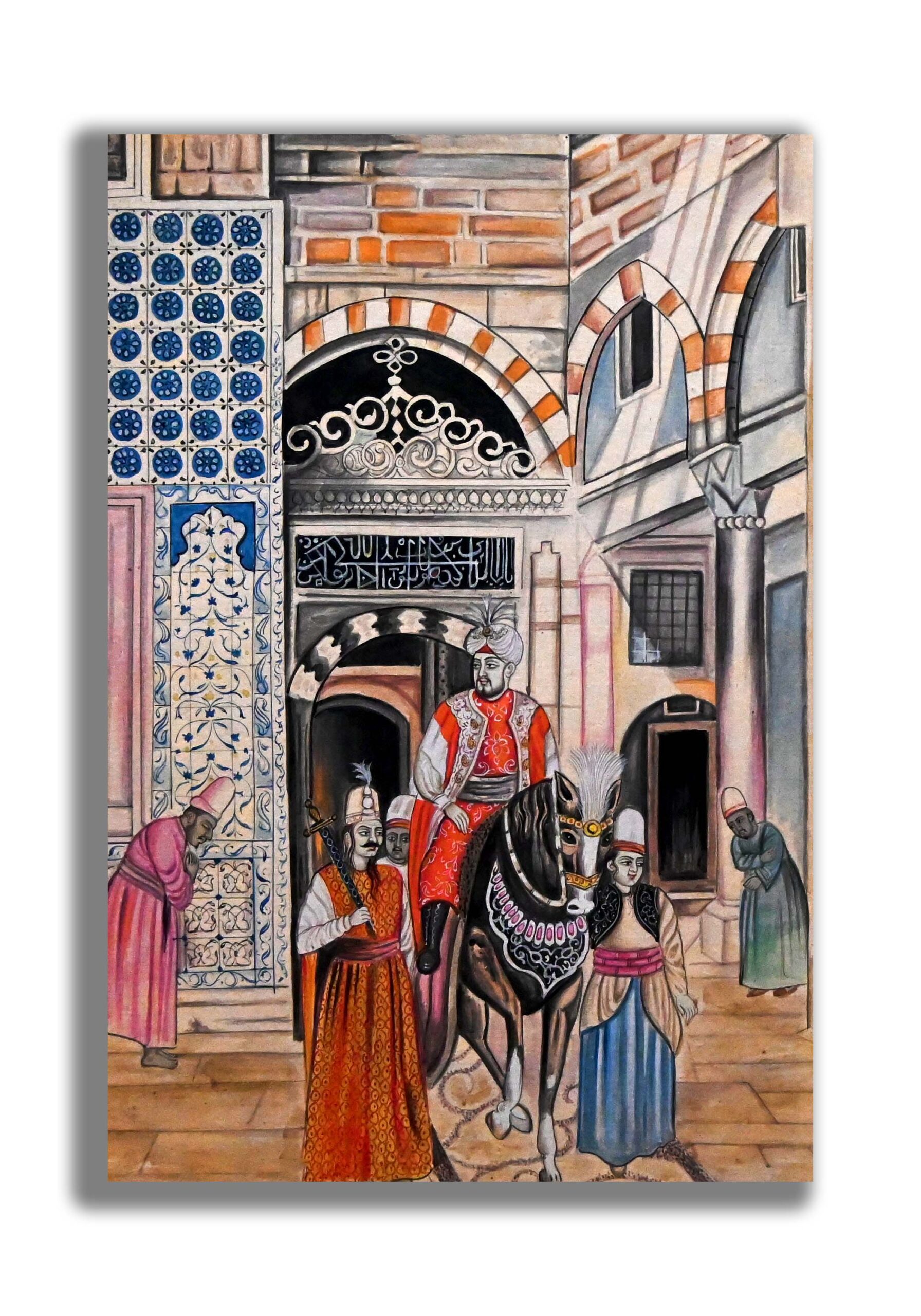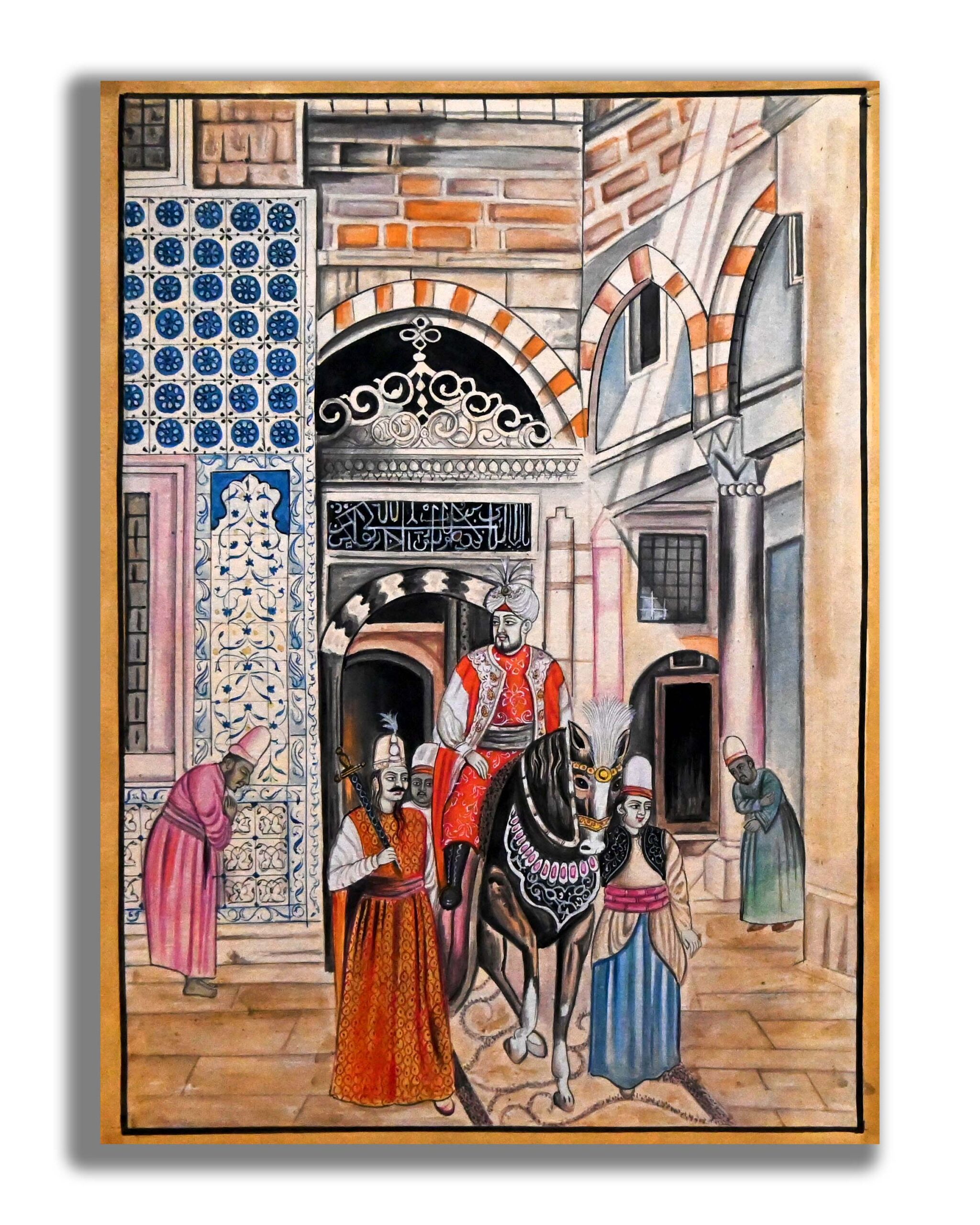 Ottoman Sultan Riding Horse with His Soldier & Damsels Handmade Painting