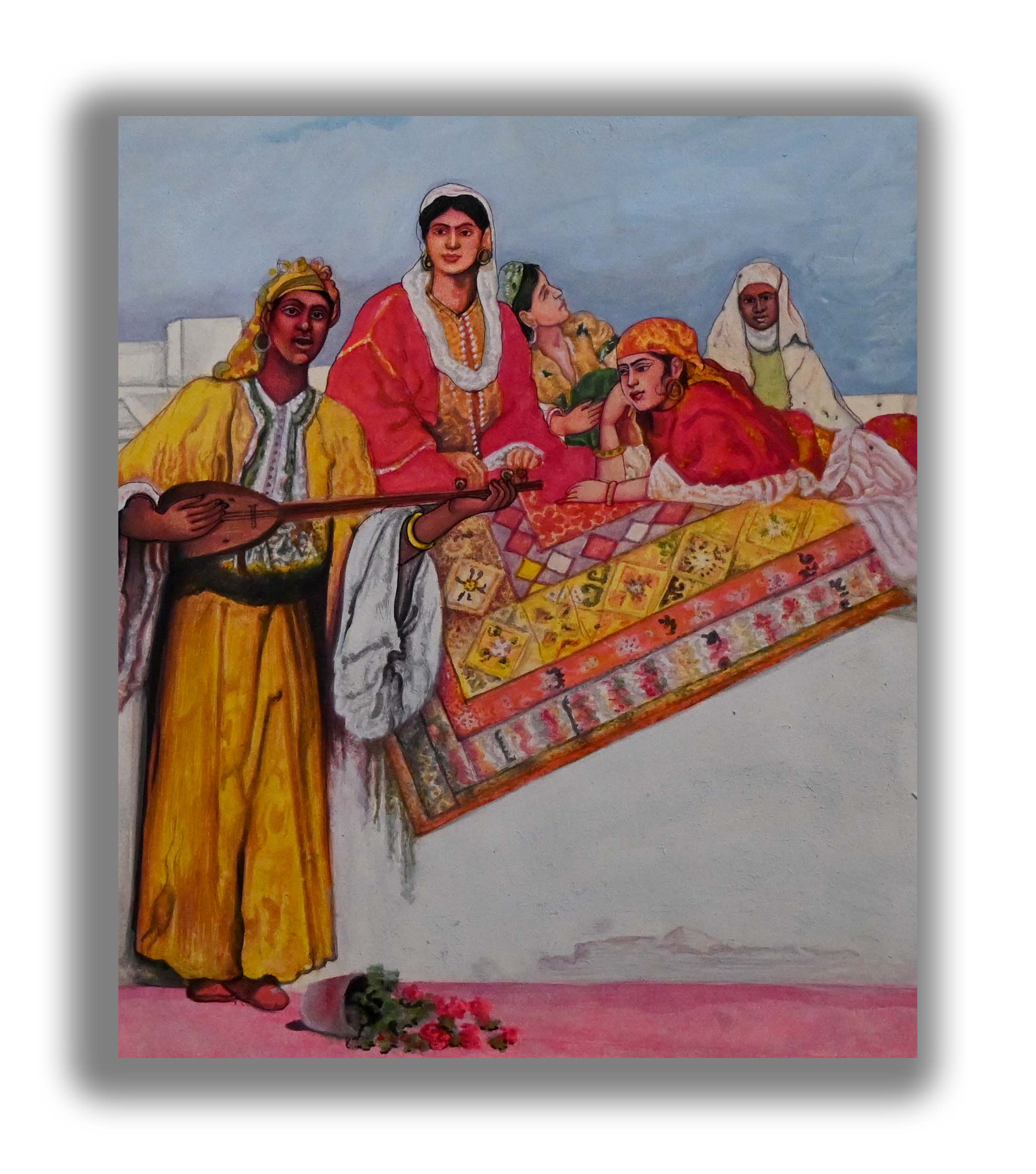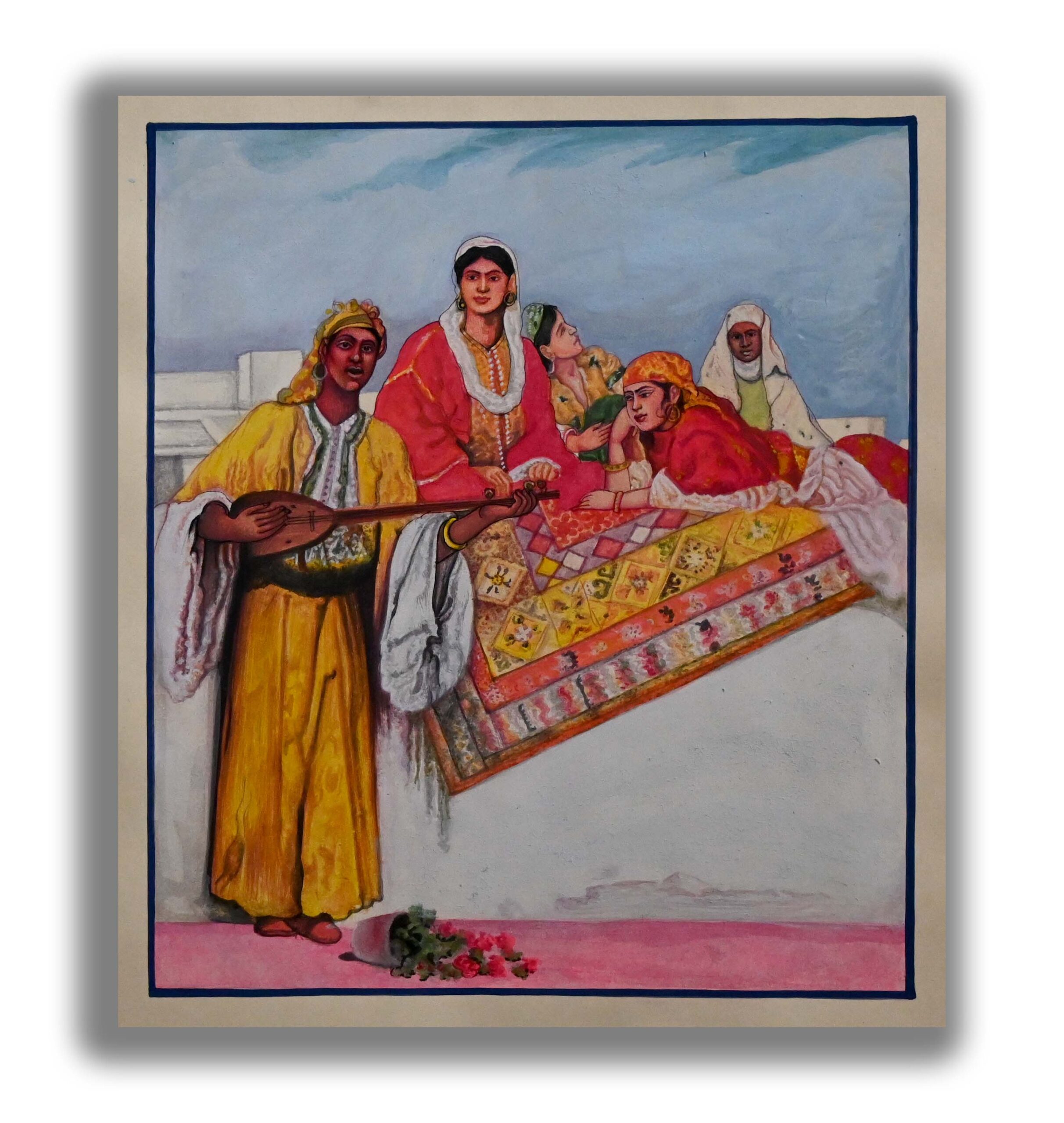 Ottoman women-men Musician Group Playing Tar Handmade Miniature Painting