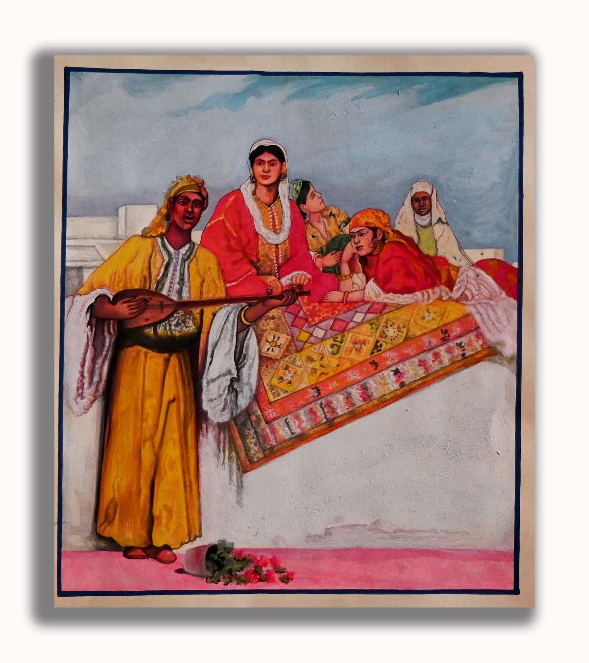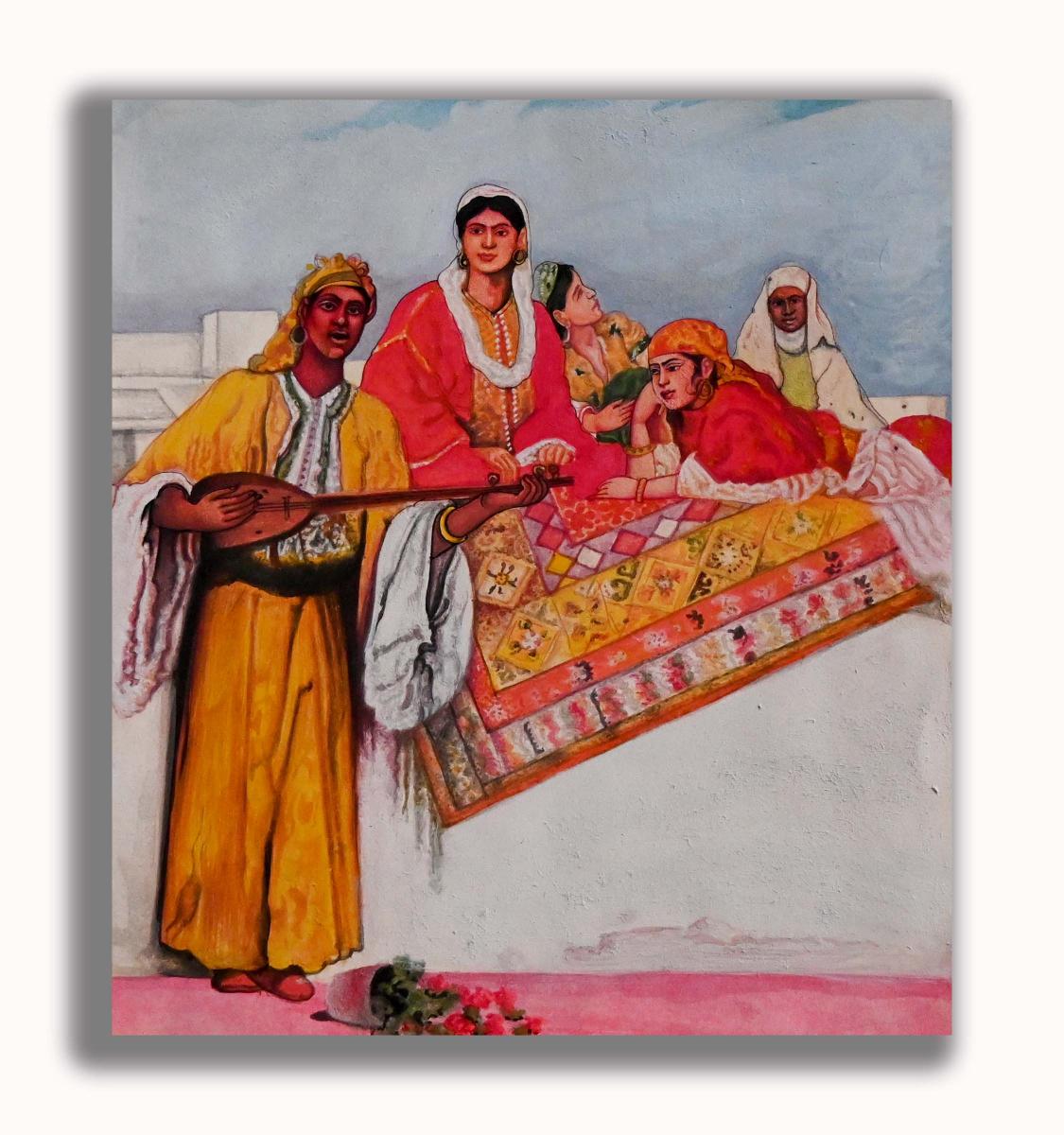 Ottoman women-men Musician Group Playing Tar Handmade Miniature Painting